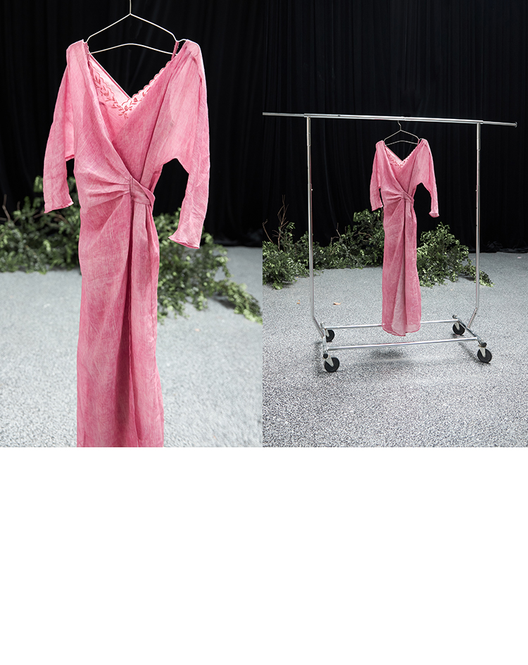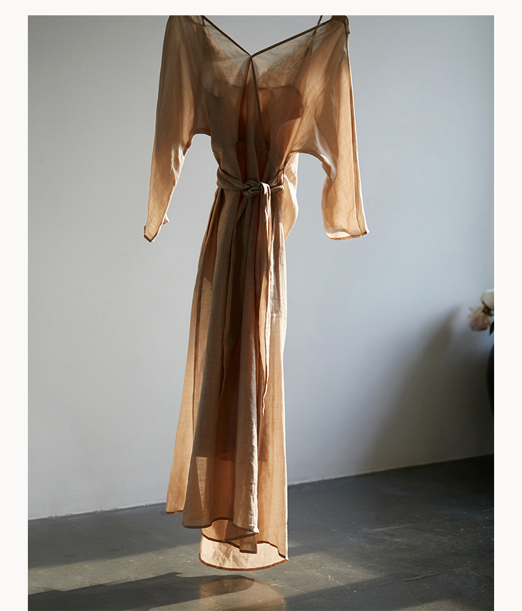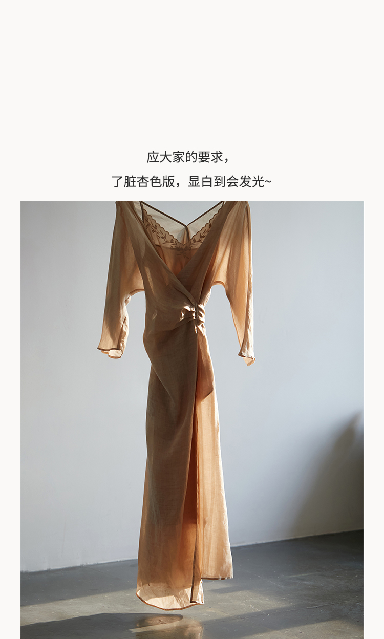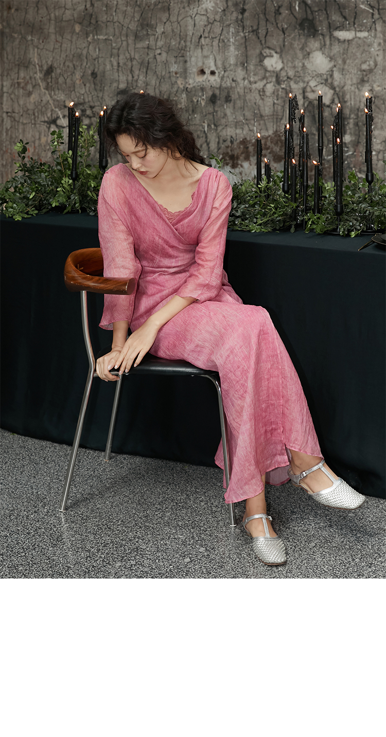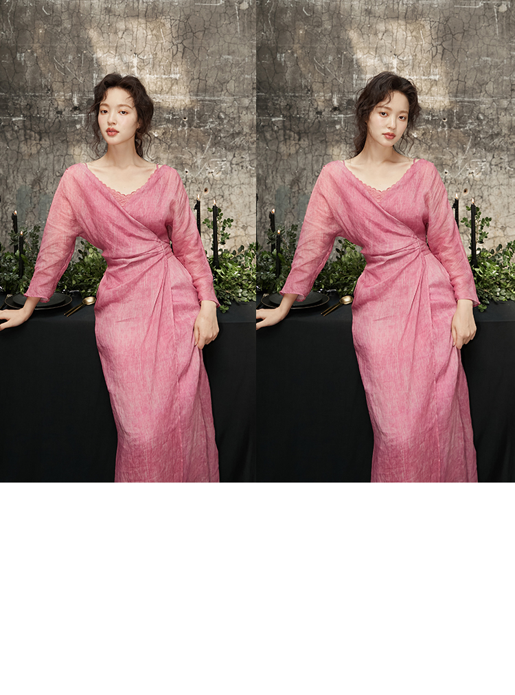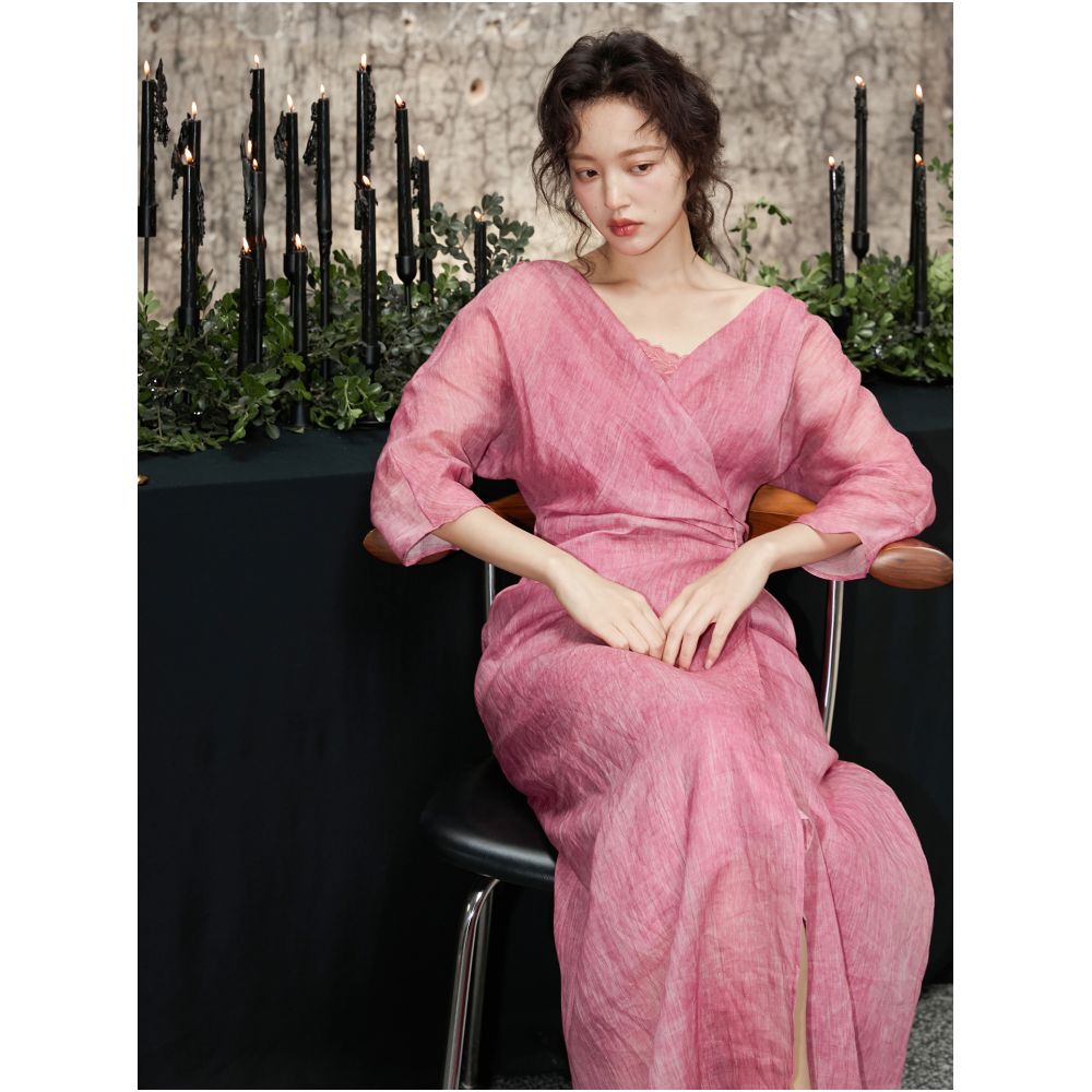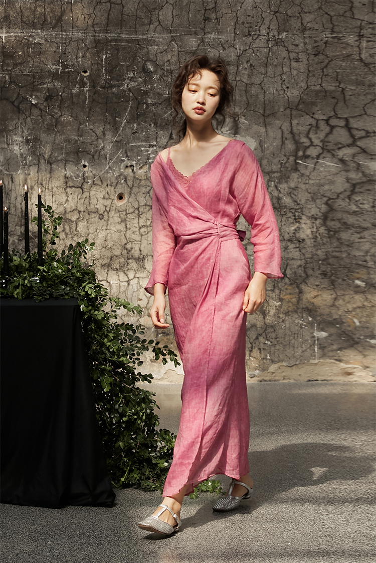 Asaya2156 : Wrap-style tie design dress with V neck collar