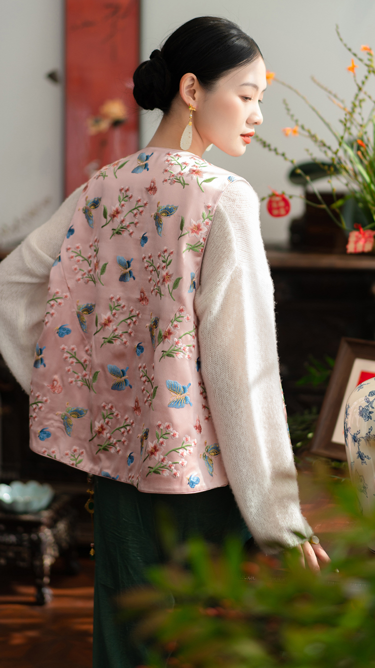 ASAYA4349 - Pink & White Butterfly Embroidered National Chinese Style Vest 🦋🌸💫