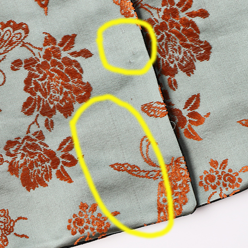 她是由传统的木机织的,所以像下面这样的跳丝是非常正常的