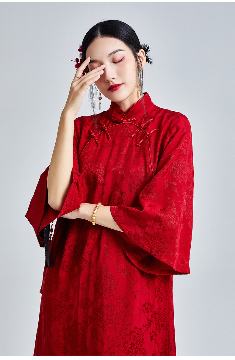 ASAYA2718 New Retro Lady Temperament Jacquard Disc Button Improved Cheongsam Wedding Dress