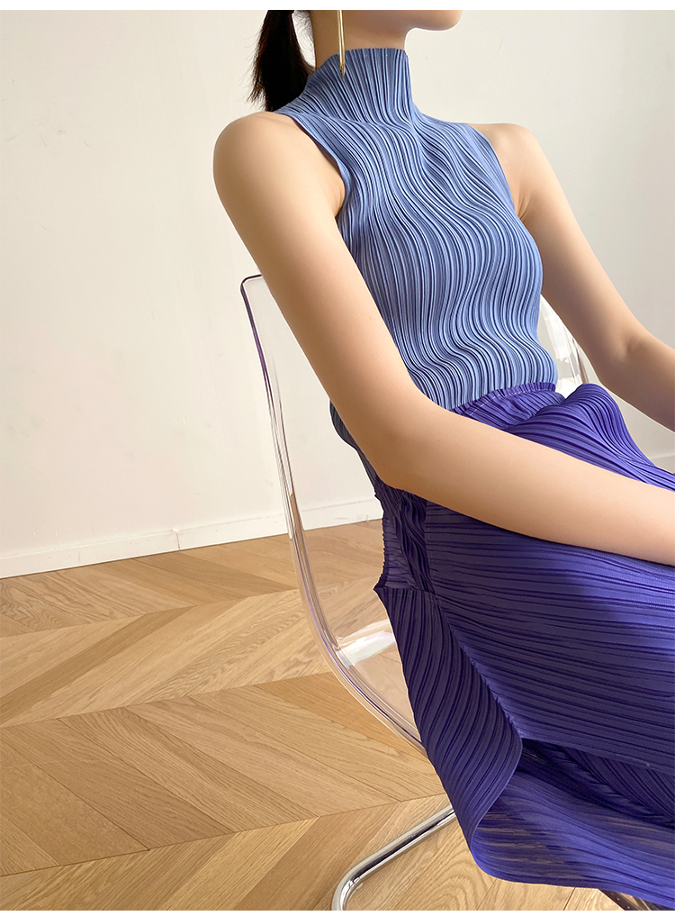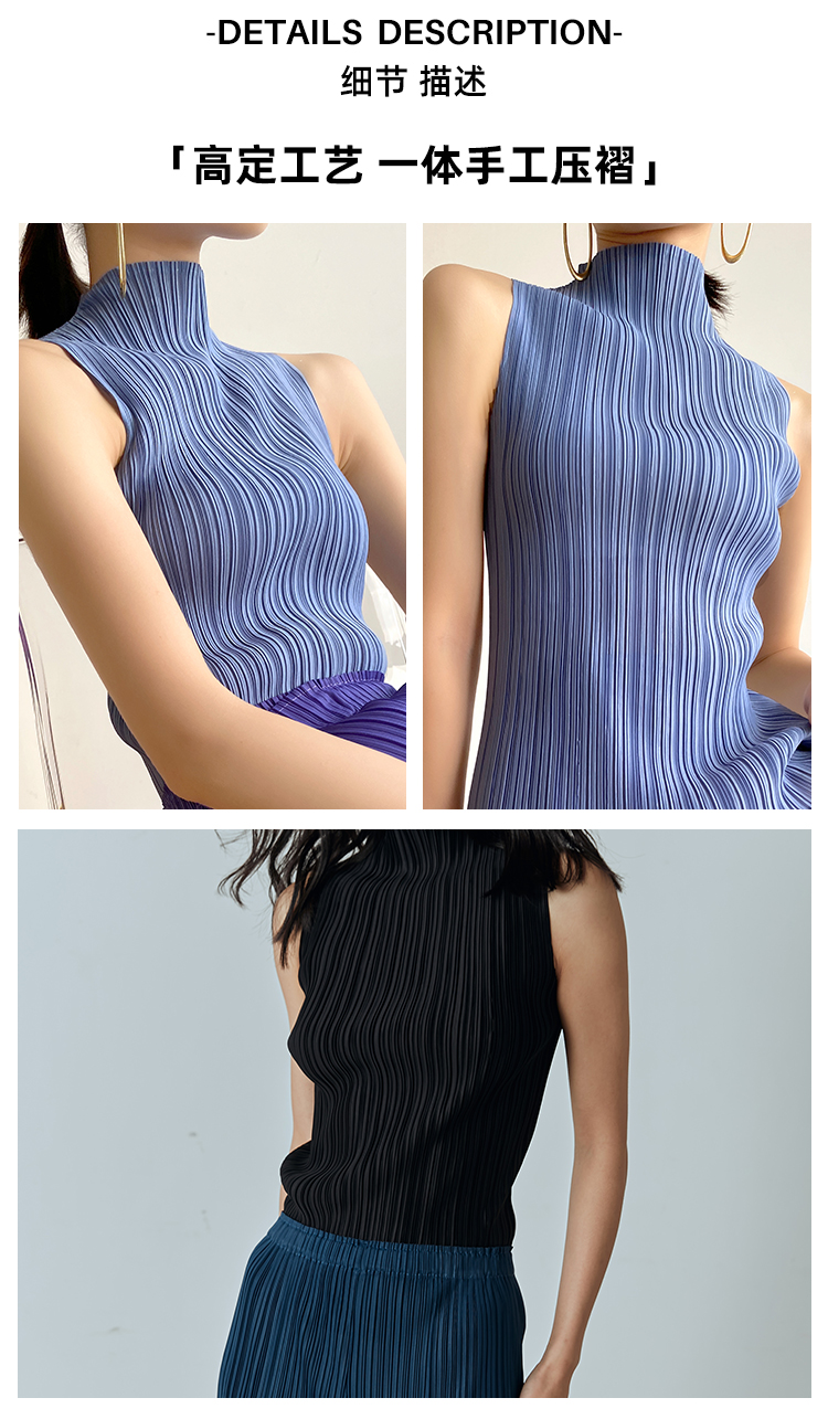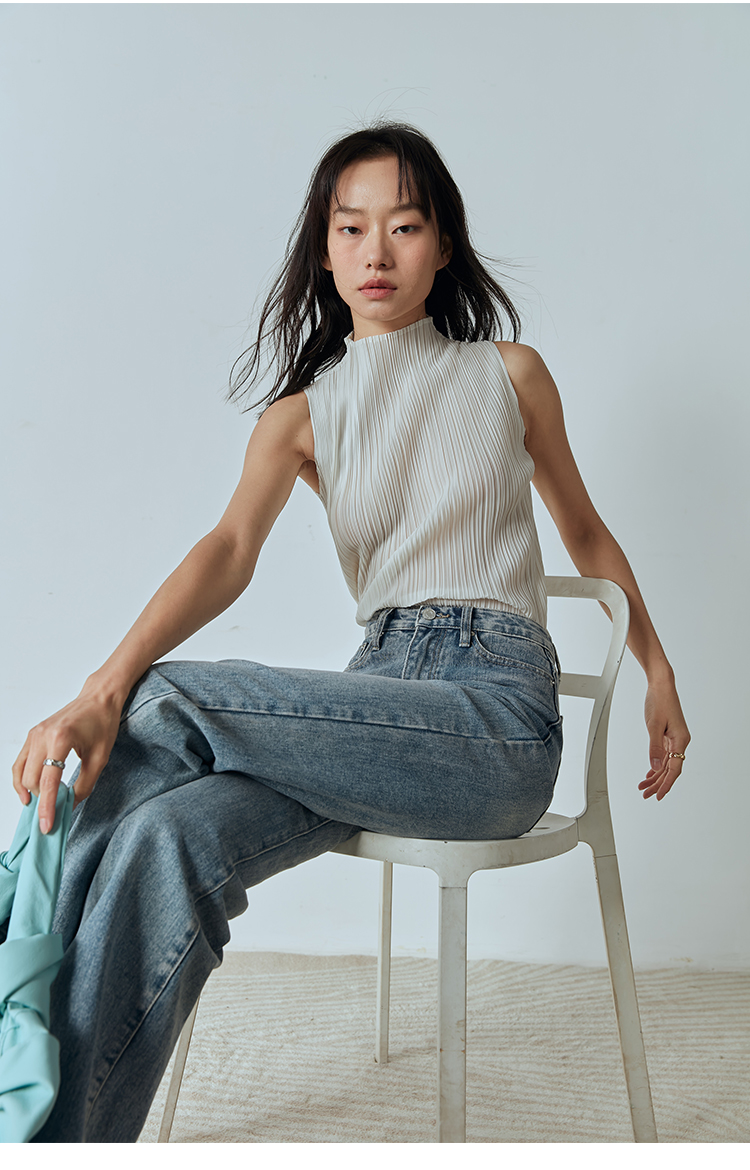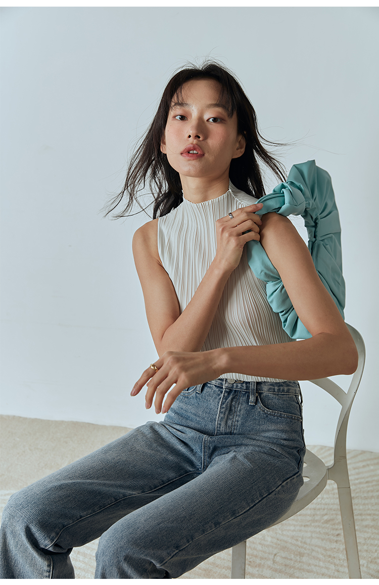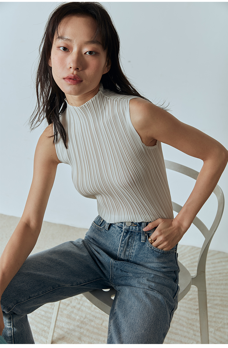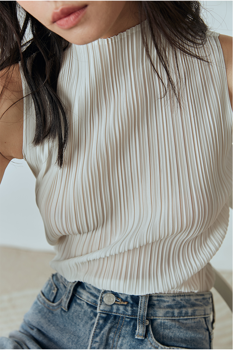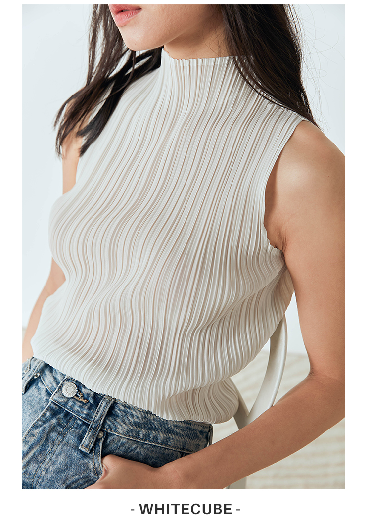 ASAYA2392 Half turtleneck pleated sleeveless top