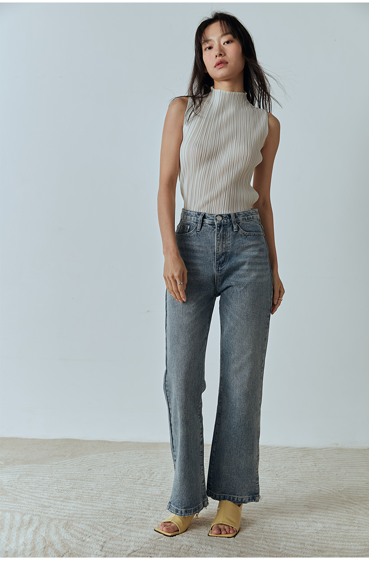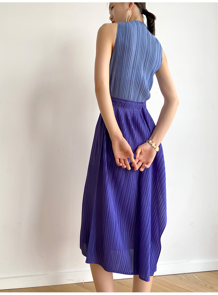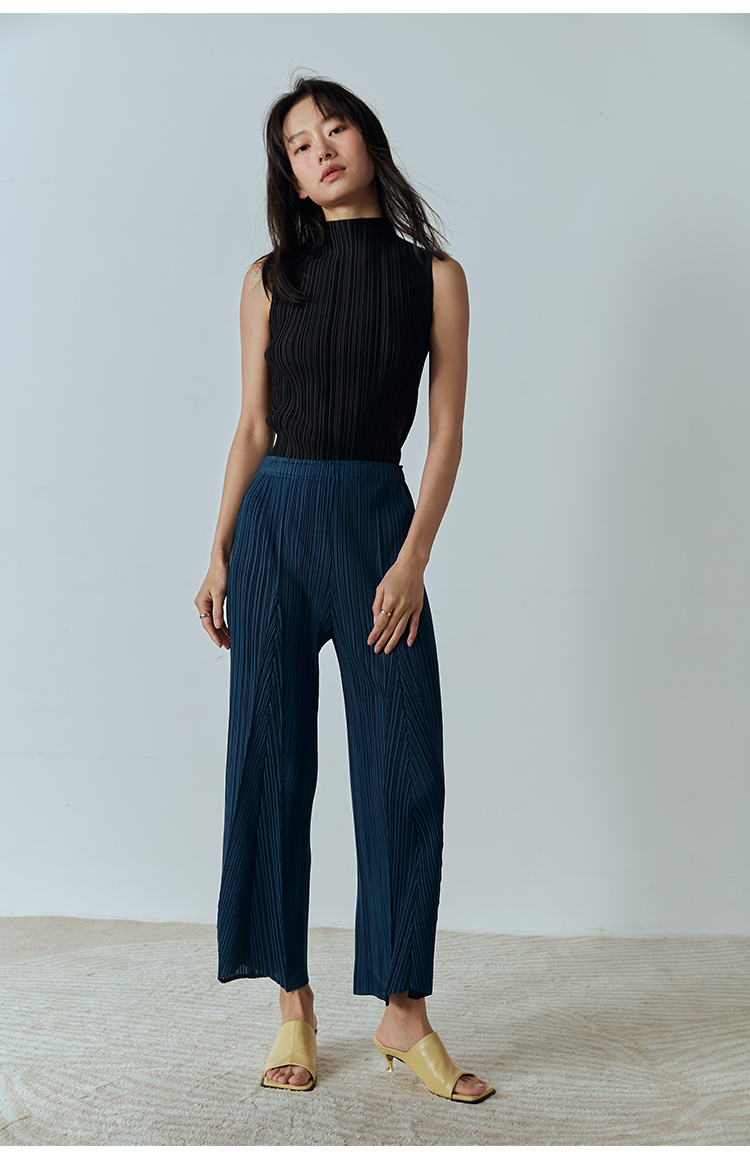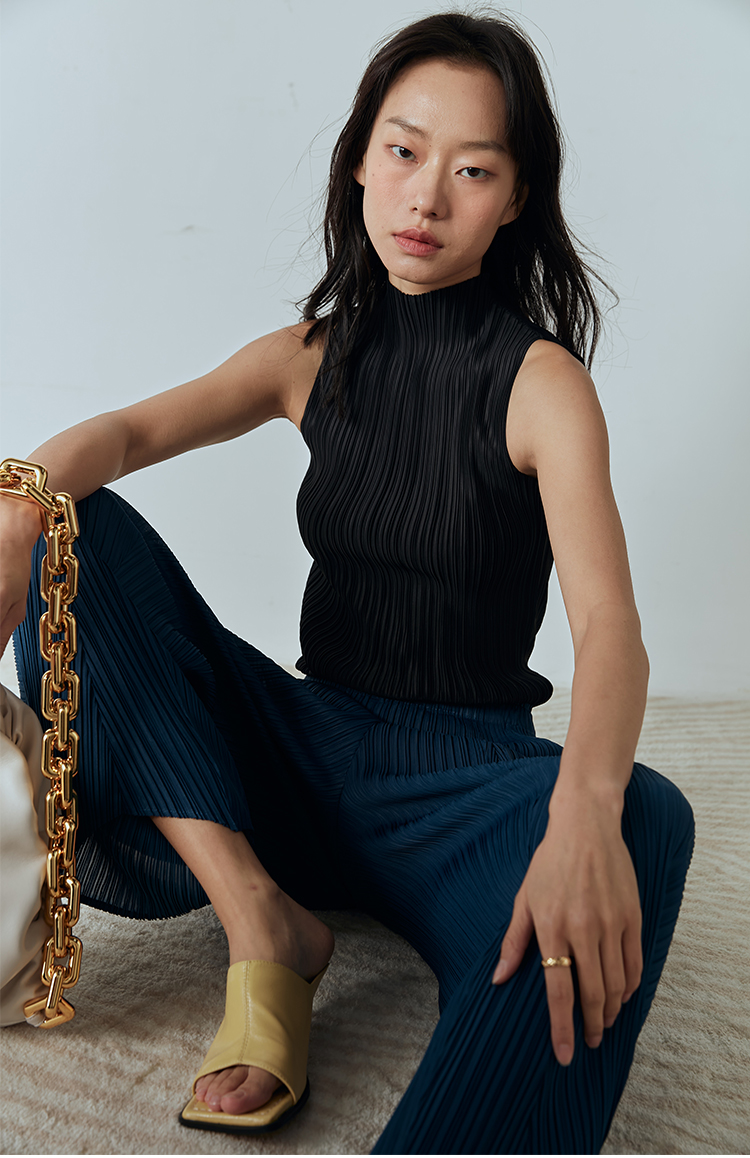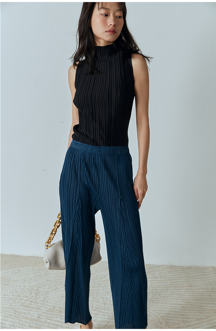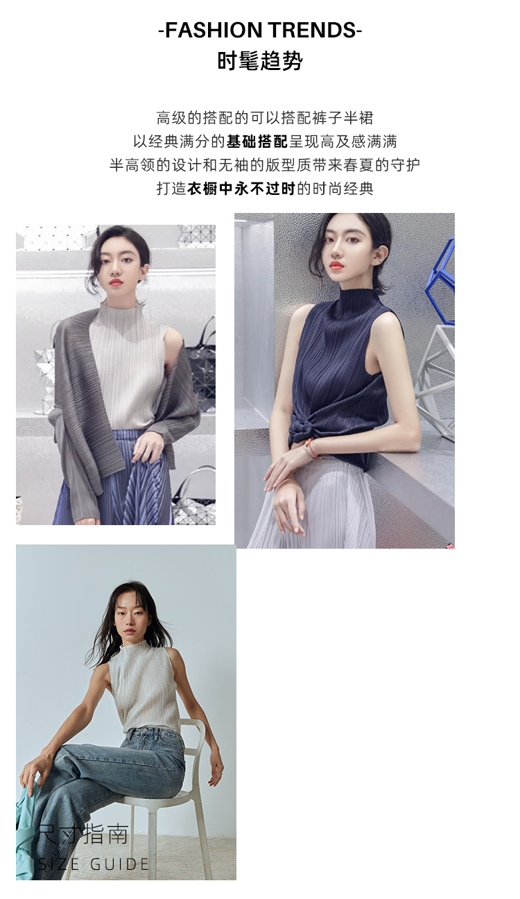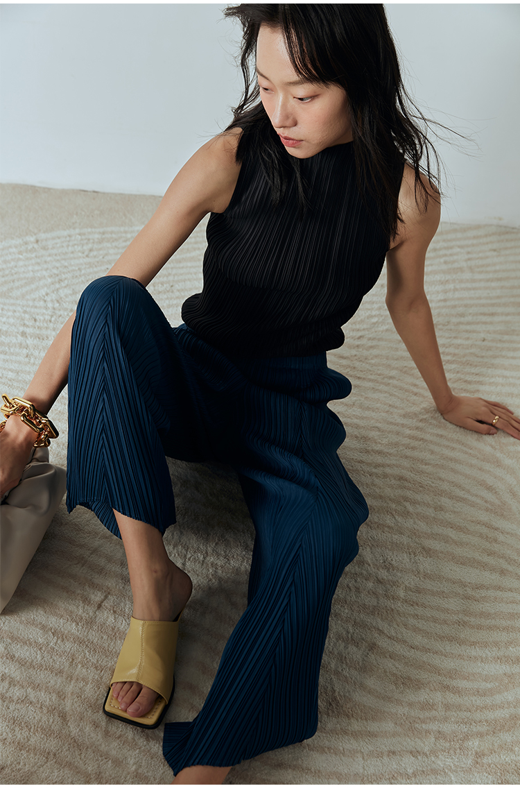 ASAYA2392 Half turtleneck pleated sleeveless top