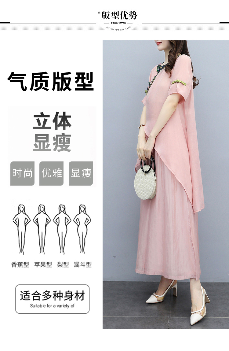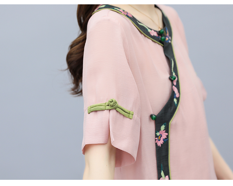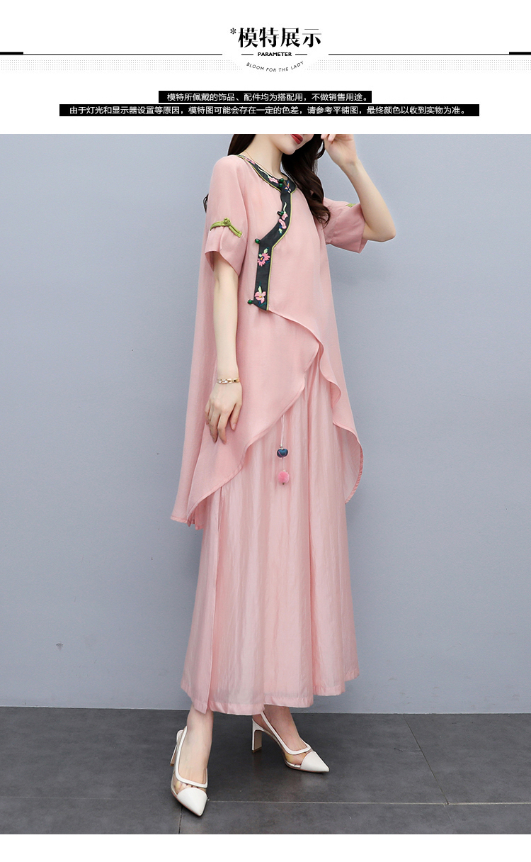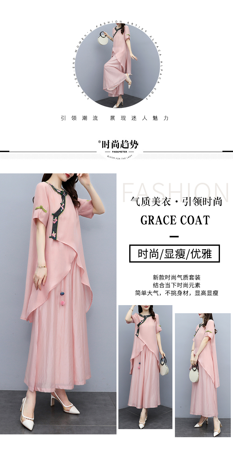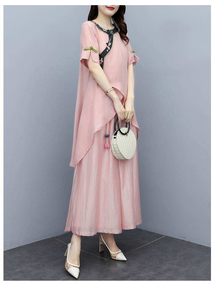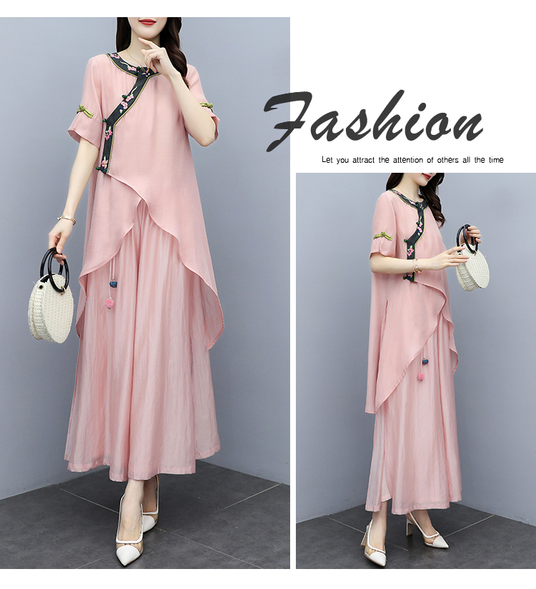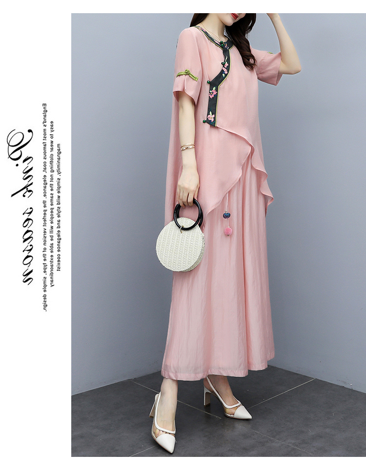 Asaya337 - New Women s Clothing Pink Embroidered New Chinese Mother s Clothing Two Piece Set Wide Leg Pants Set Fashion Set