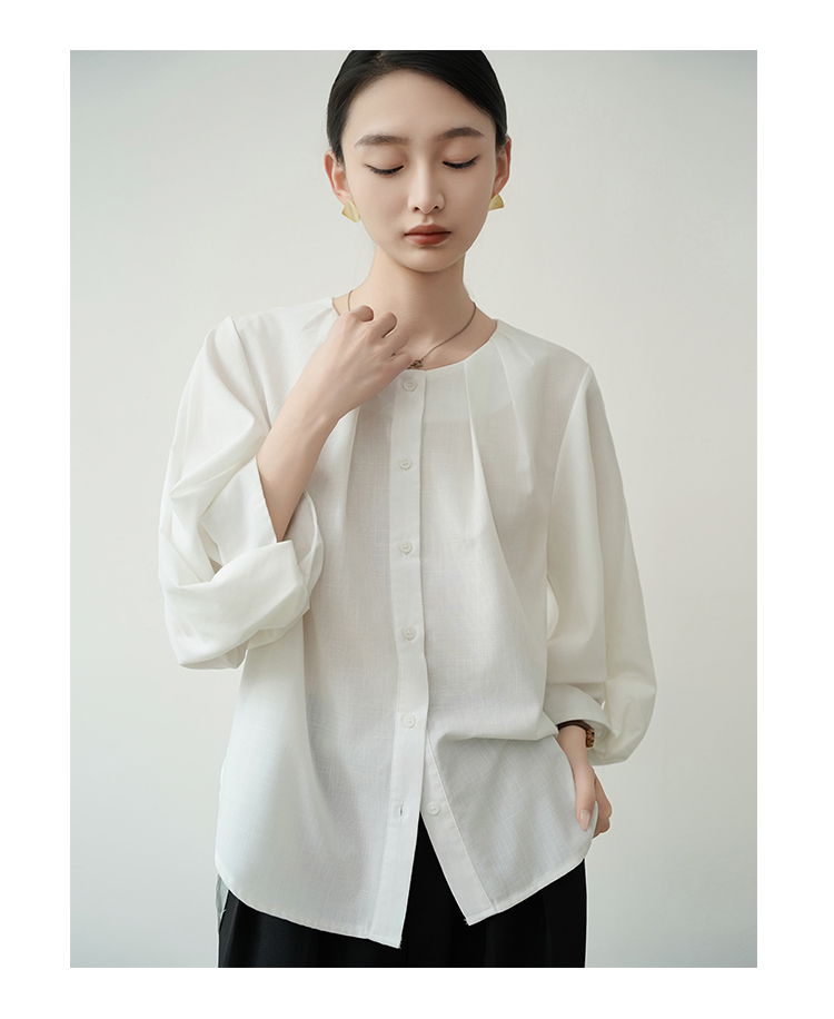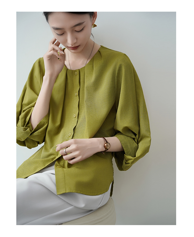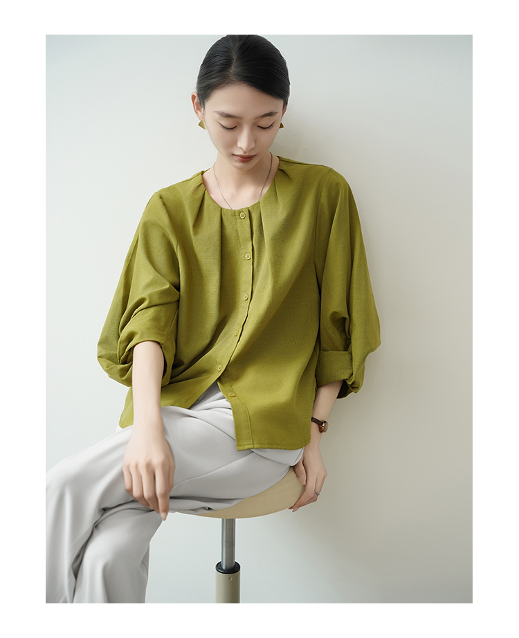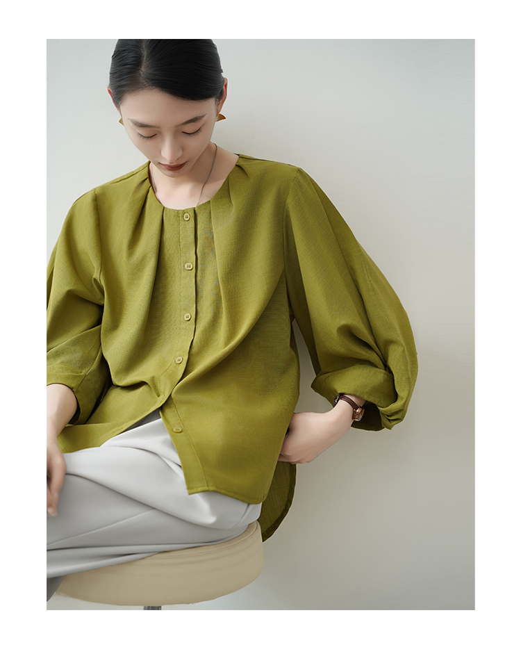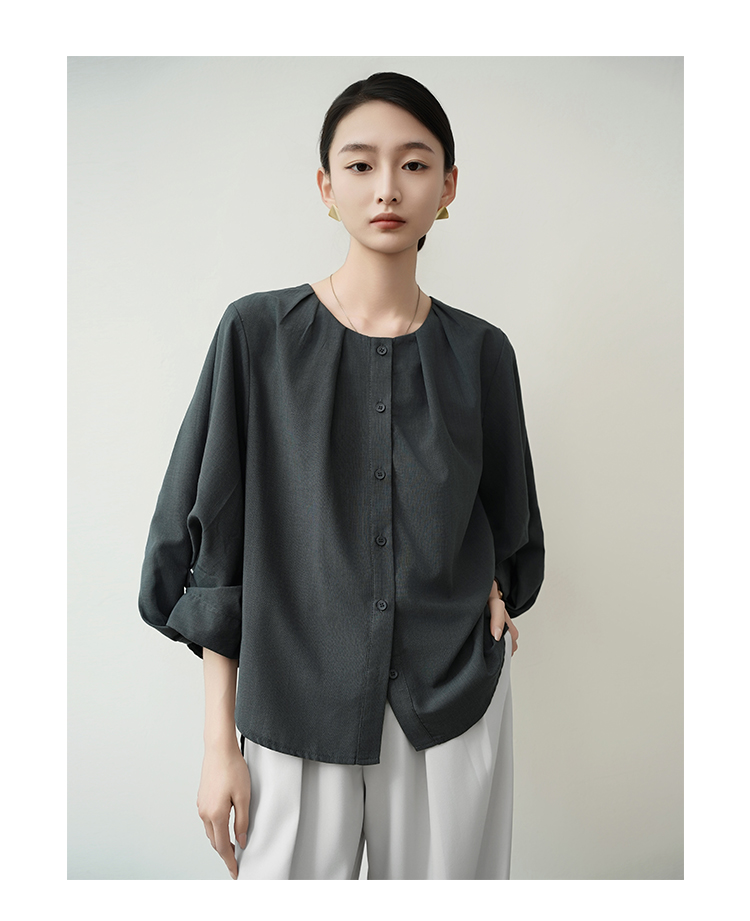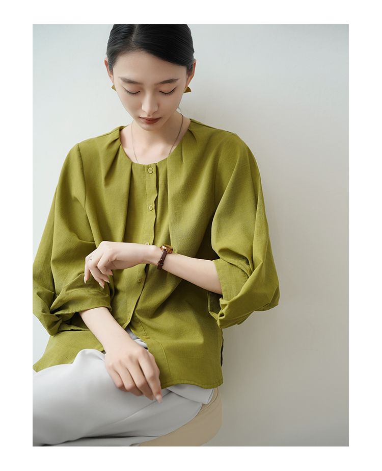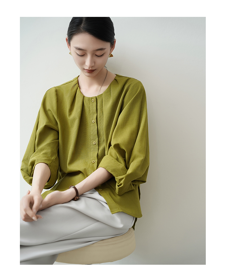 ASAYA3012 Lightweight and breathable retro round neck cotton and linen shirt