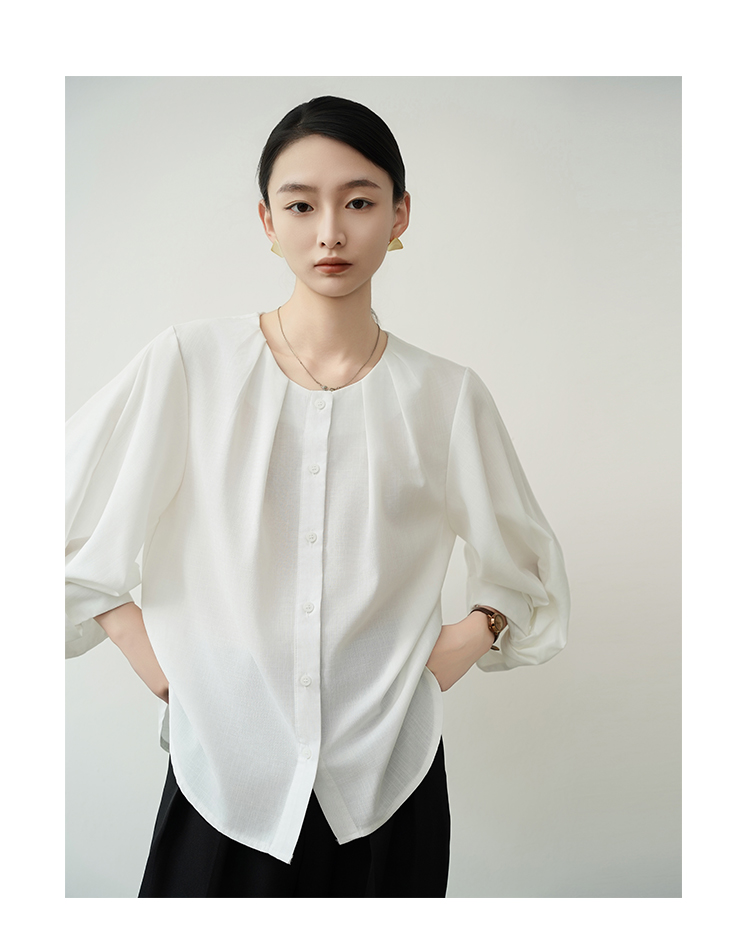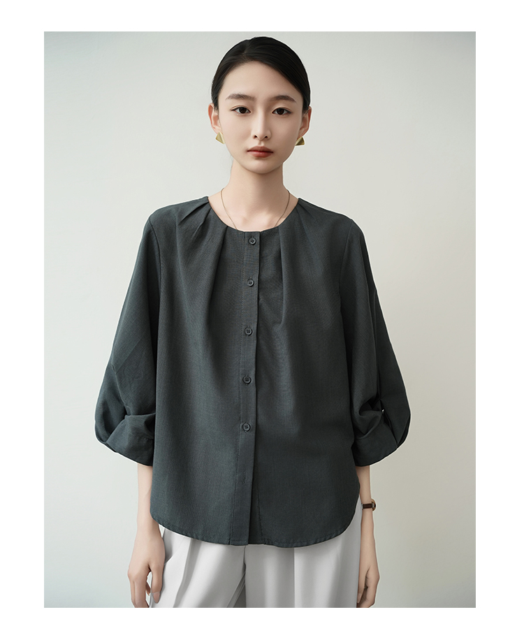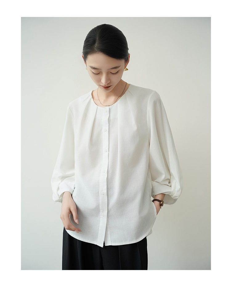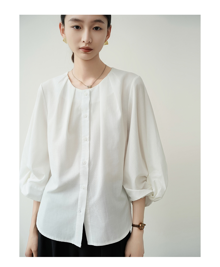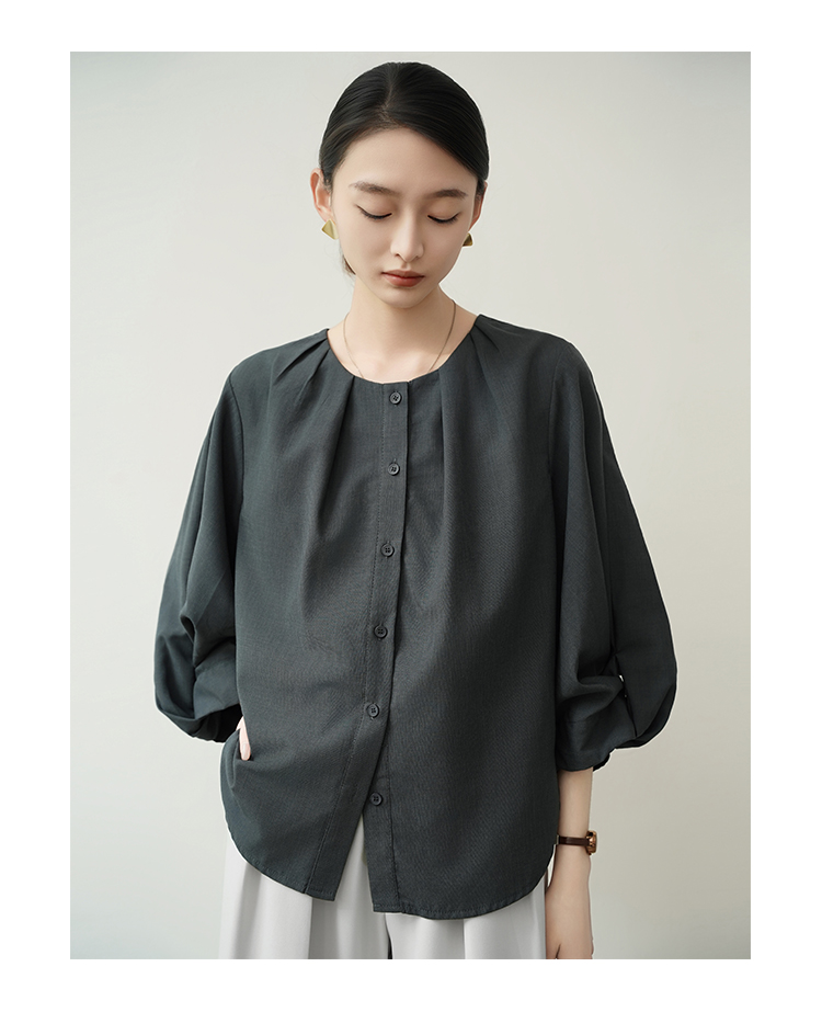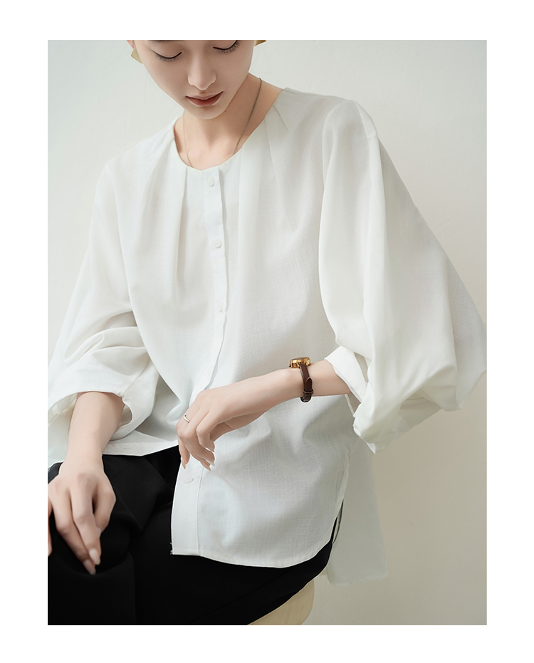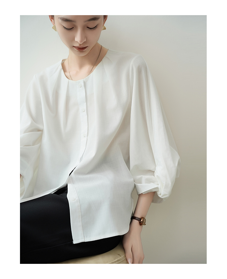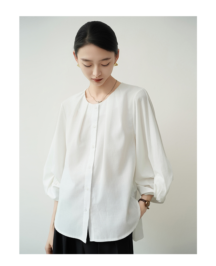 ASAYA3012 Lightweight and breathable retro round neck cotton and linen shirt