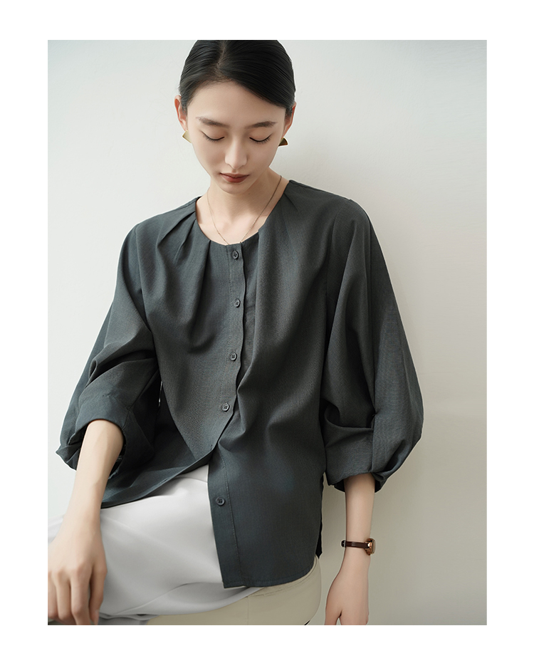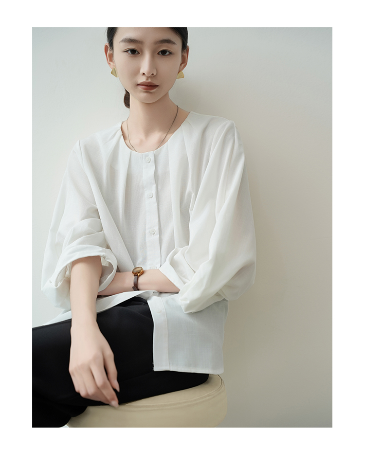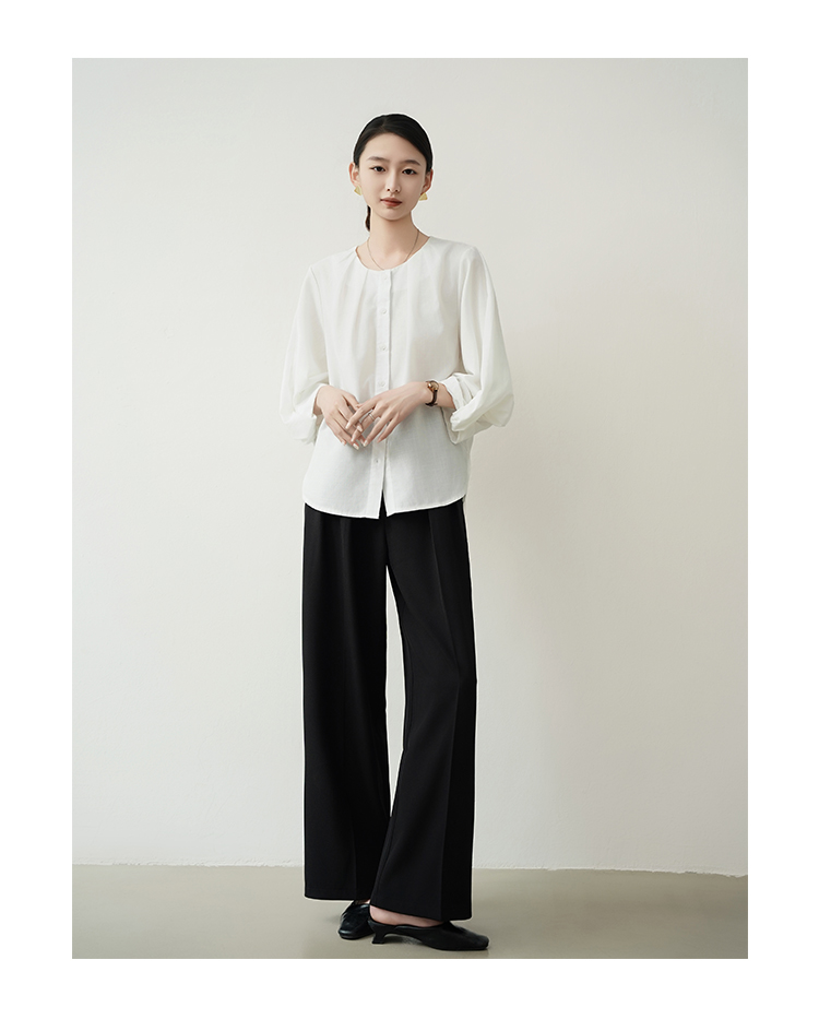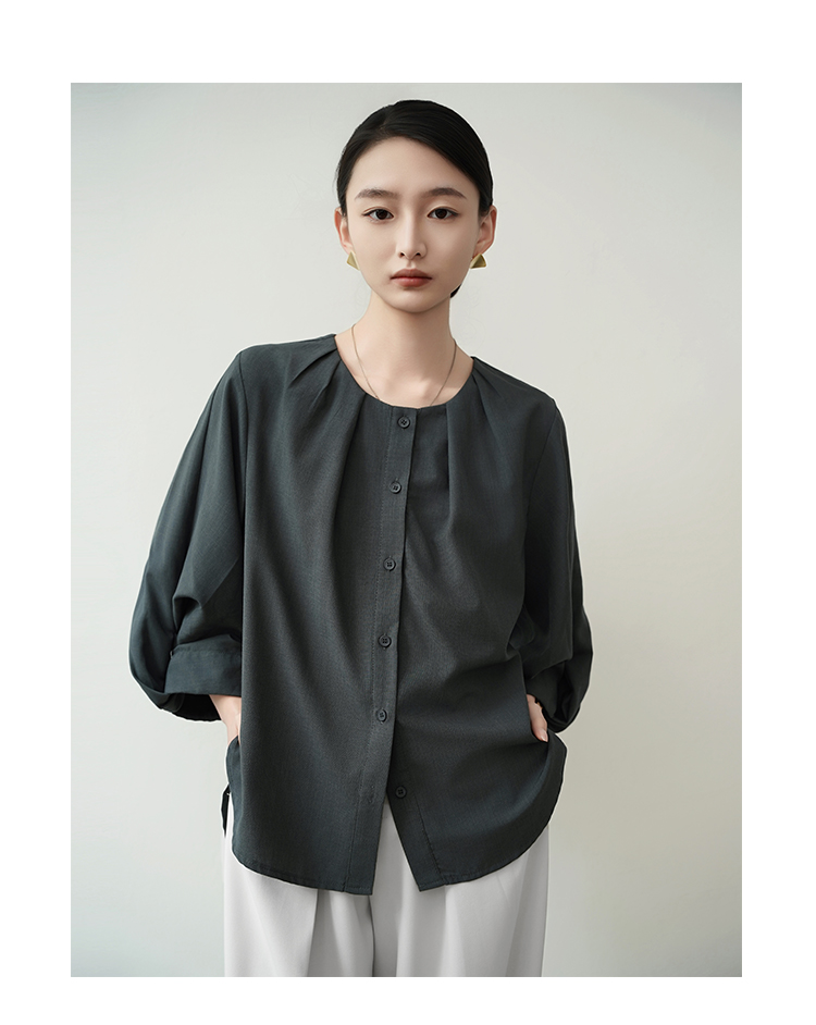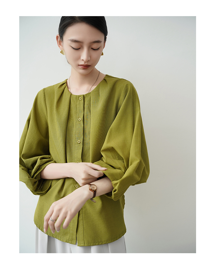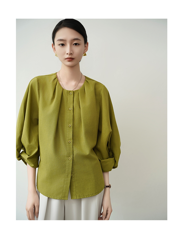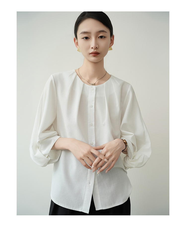 ASAYA3012 Lightweight and breathable retro round neck cotton and linen shirt