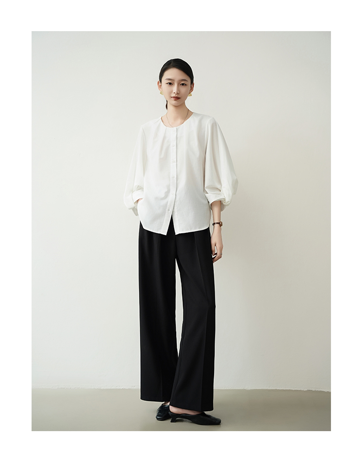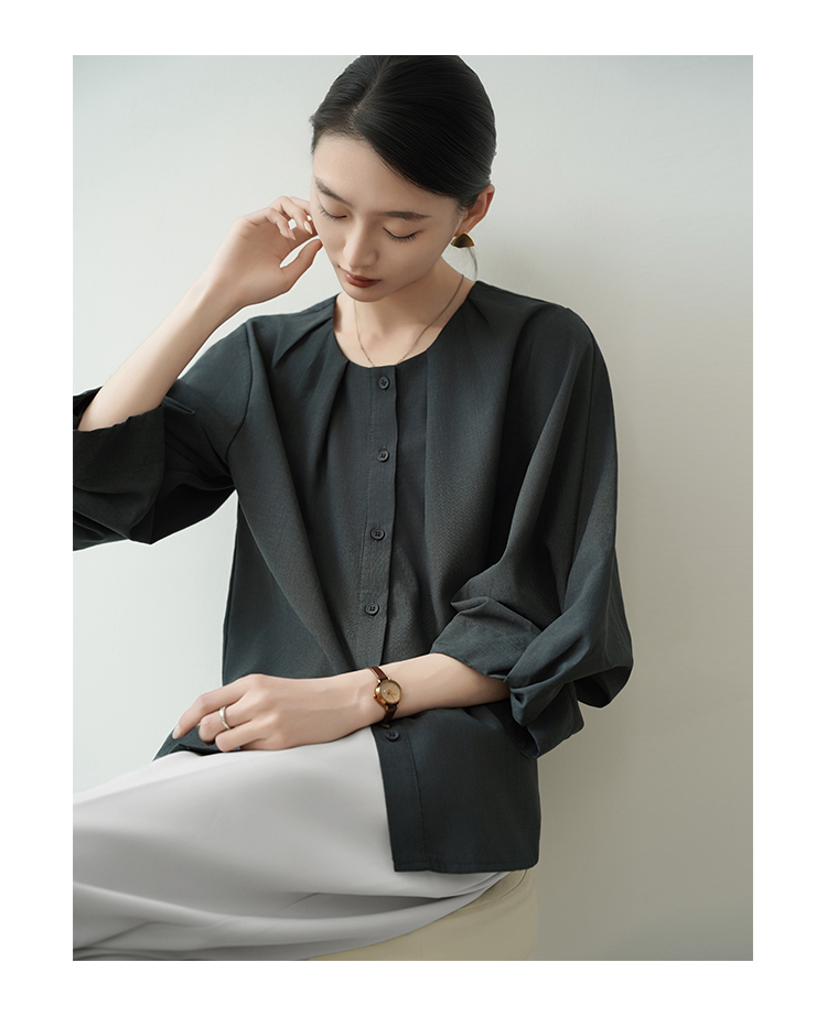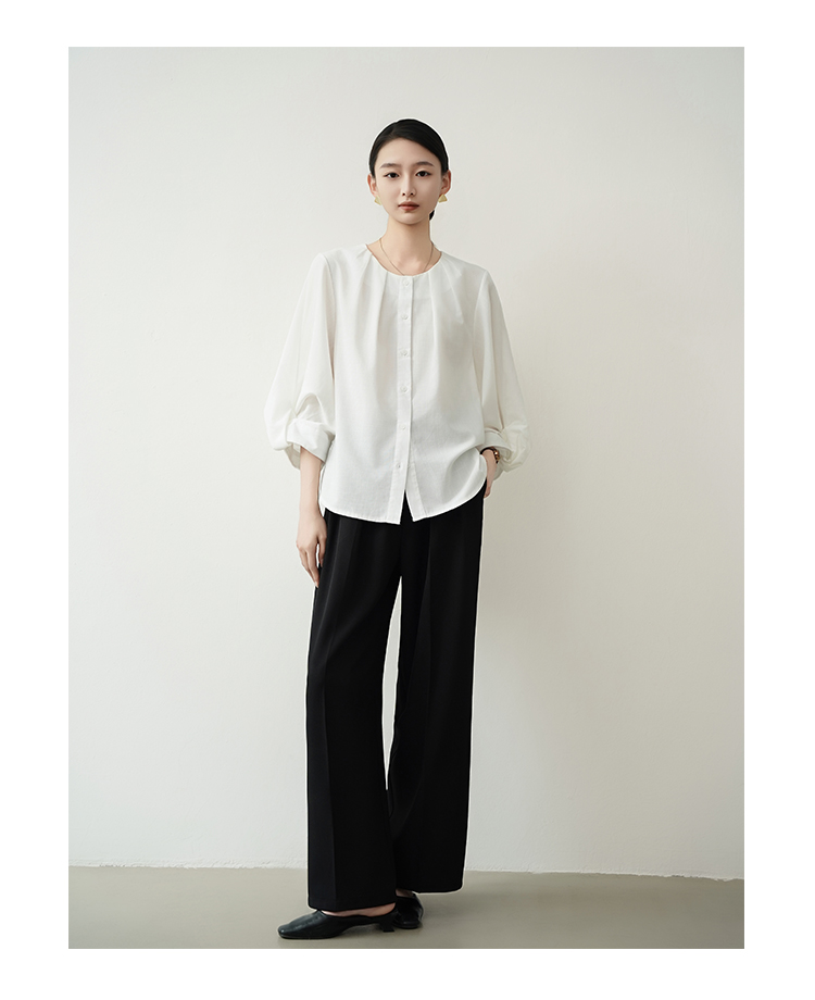 | color classification | Mist white, green, dusk gray, avocado green, mist white, three quarter sleeve shirt+premium gray split half skirt, mist white, seven quarter sleeve shirt+classic black high waisted half skirt, mist white, seven quarter sleeve shirt+premium gray A-line half skirt, mist white, seven quarter sleeve shirt+classic black straight leg trousers, mist white, seven quarter sleeve shirt+classic black wide leg trousers |