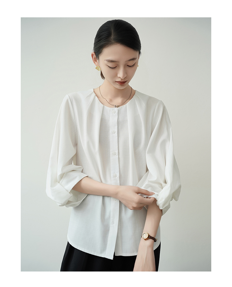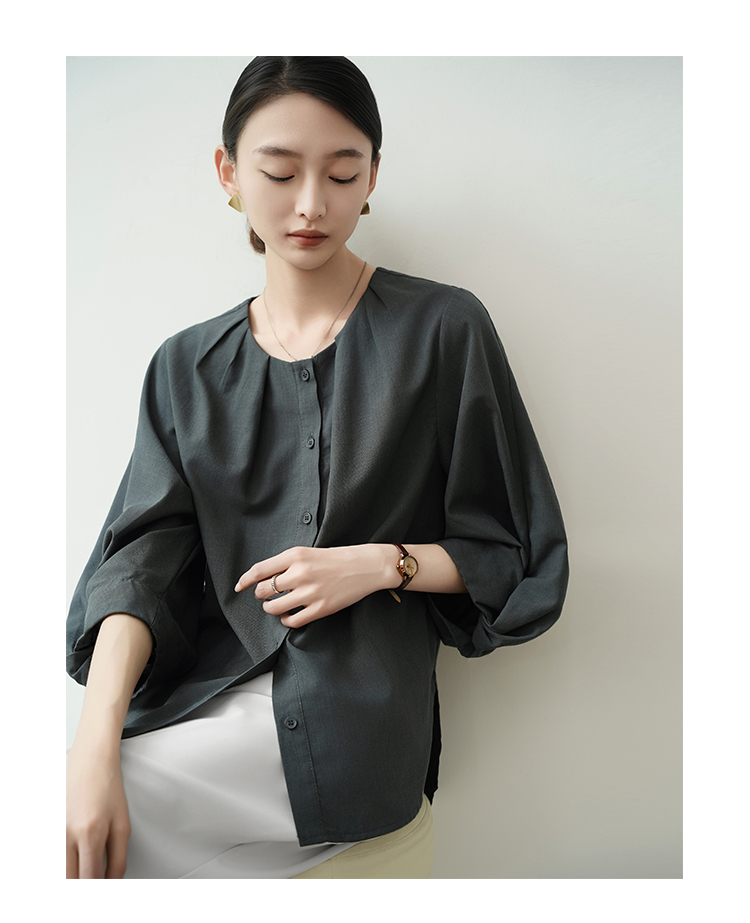 7分灯笼袖的设计精巧 随秋风轻起飘摇
