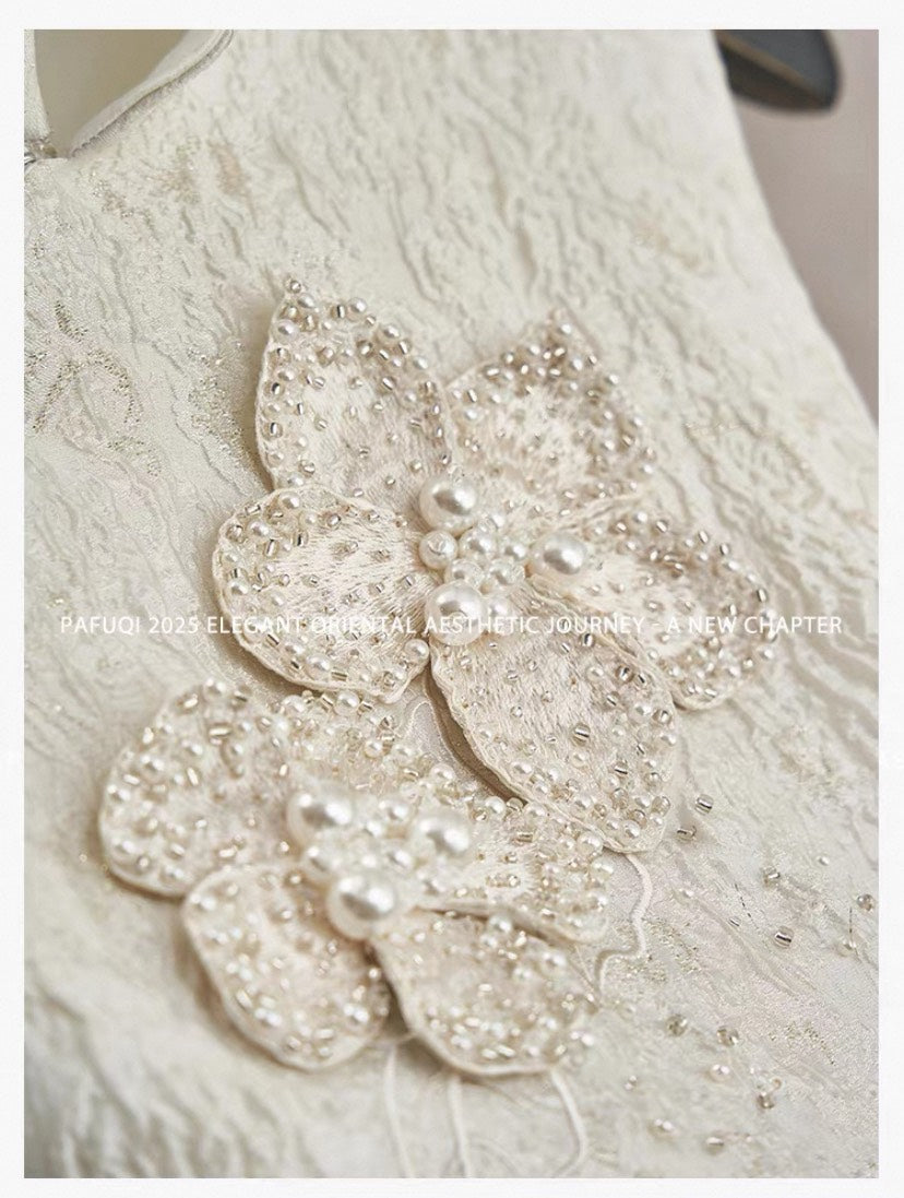 ASAYA4902 – Pearl Bloom Jacquard Vest & Satin Skirt Set ✨🌸