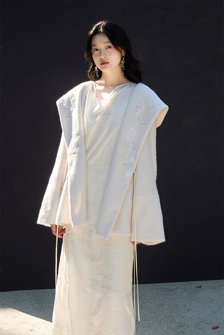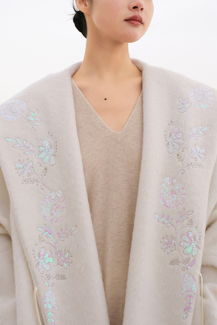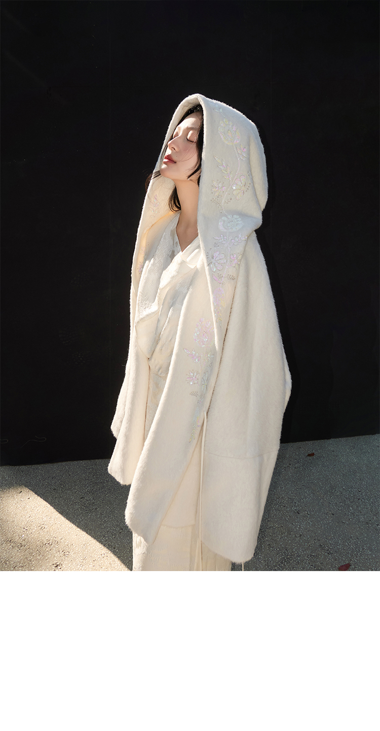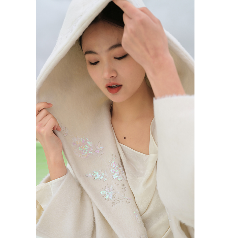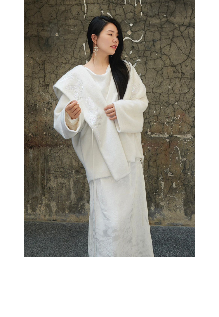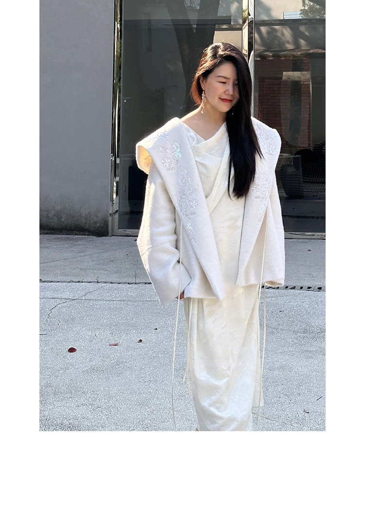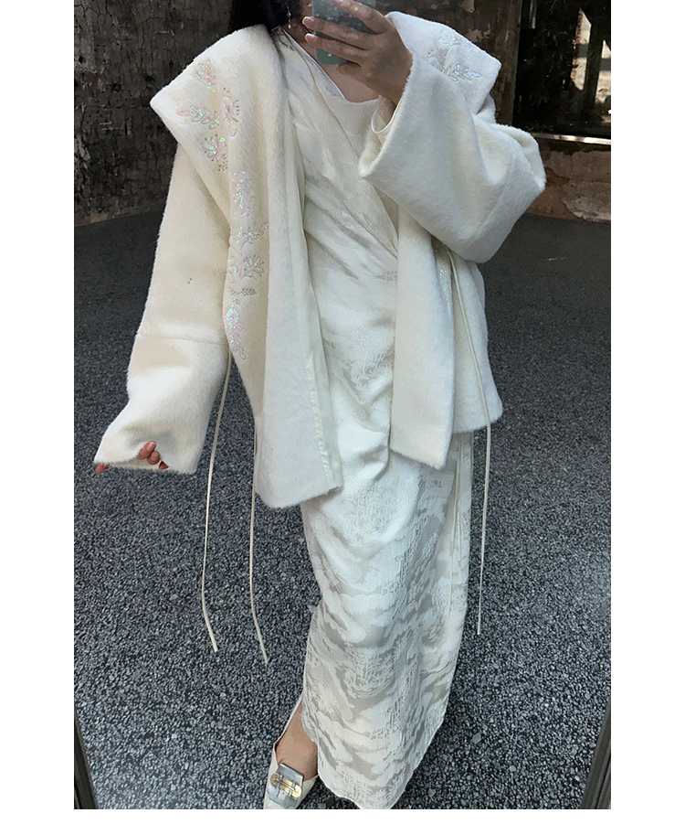 ASAYA2530 Alpaca wool | Heavy sequin embroidery | Creamy white short cape jacket
