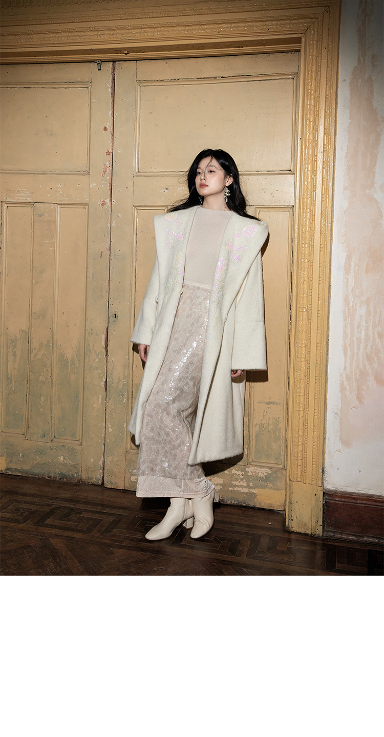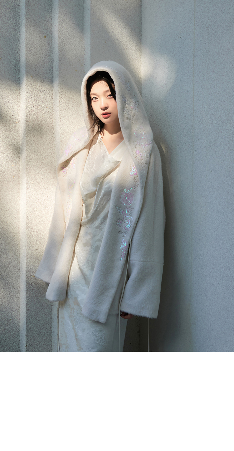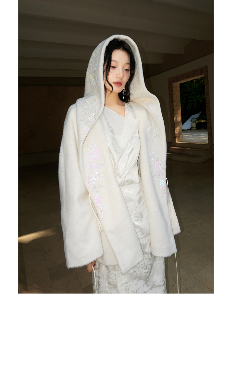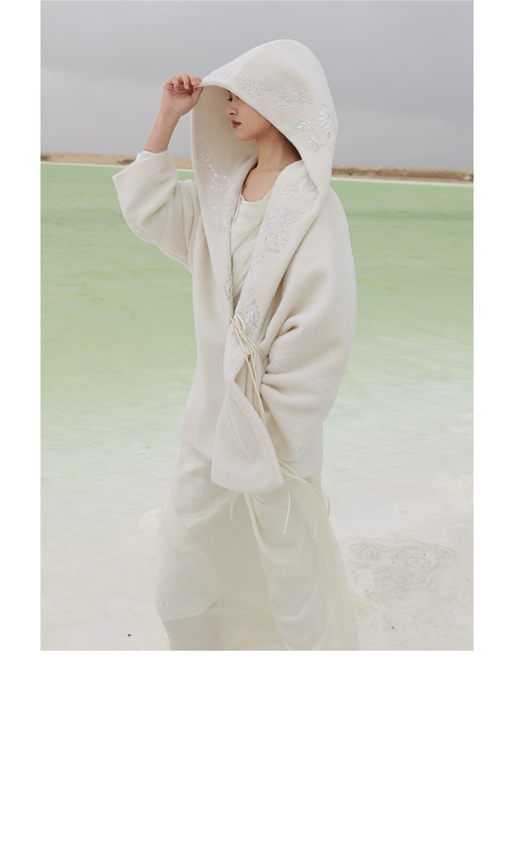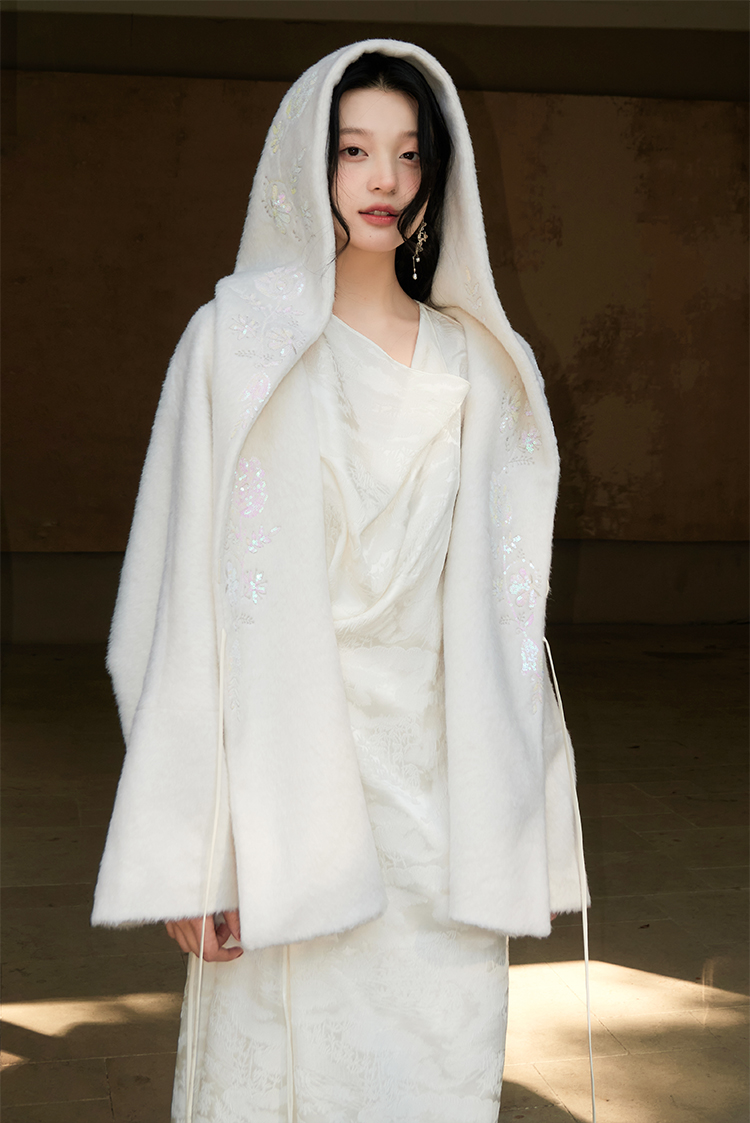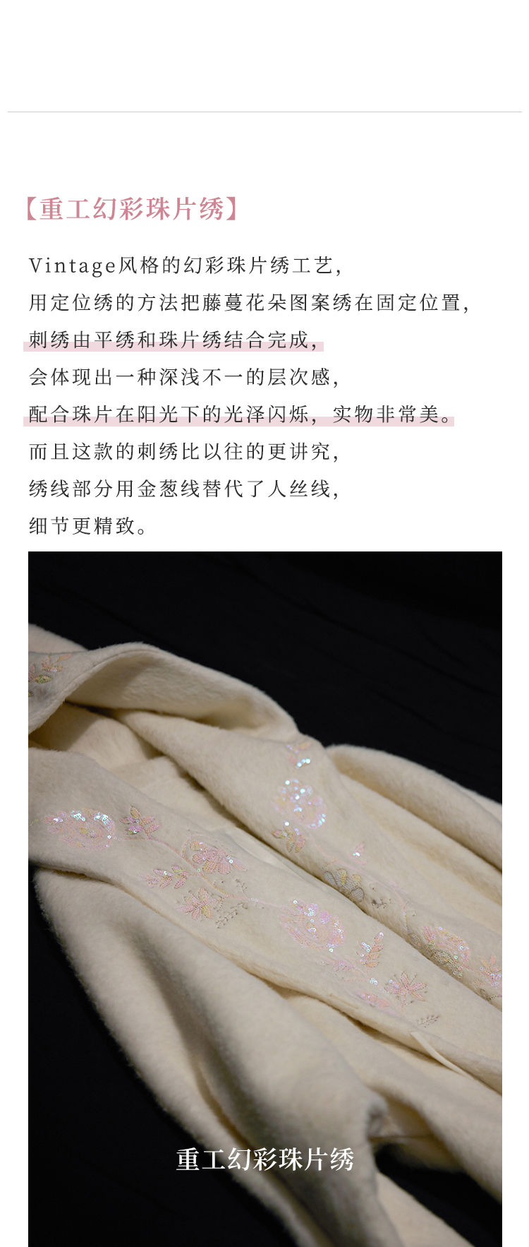 ASAYA2530 Alpaca wool | Heavy sequin embroidery | Creamy white short cape jacket
