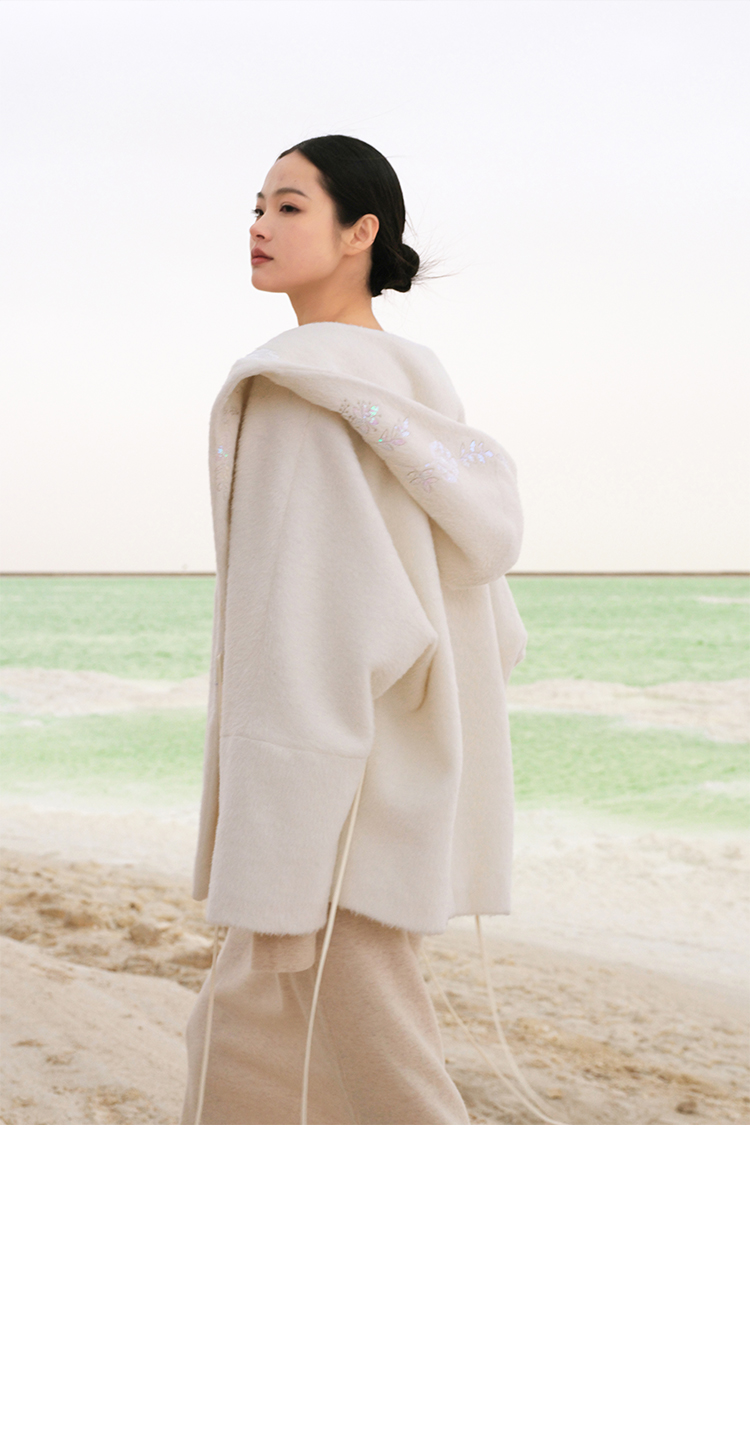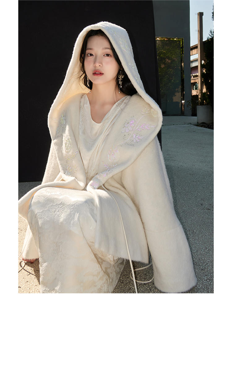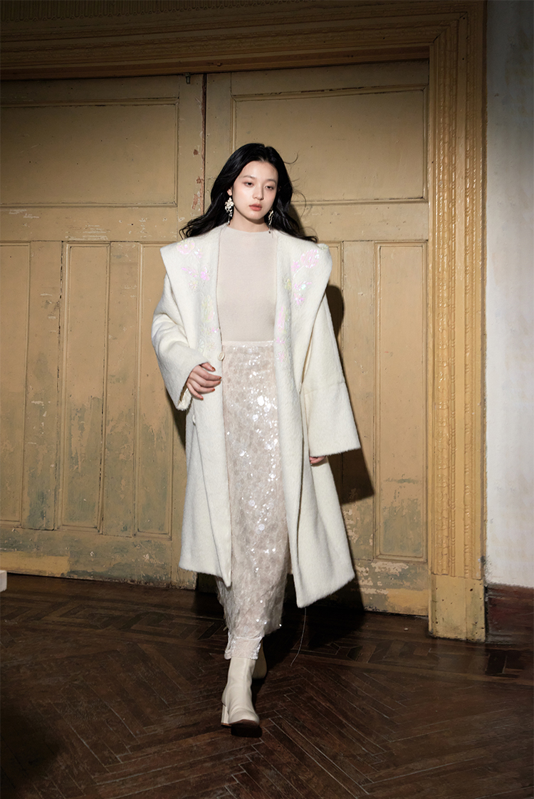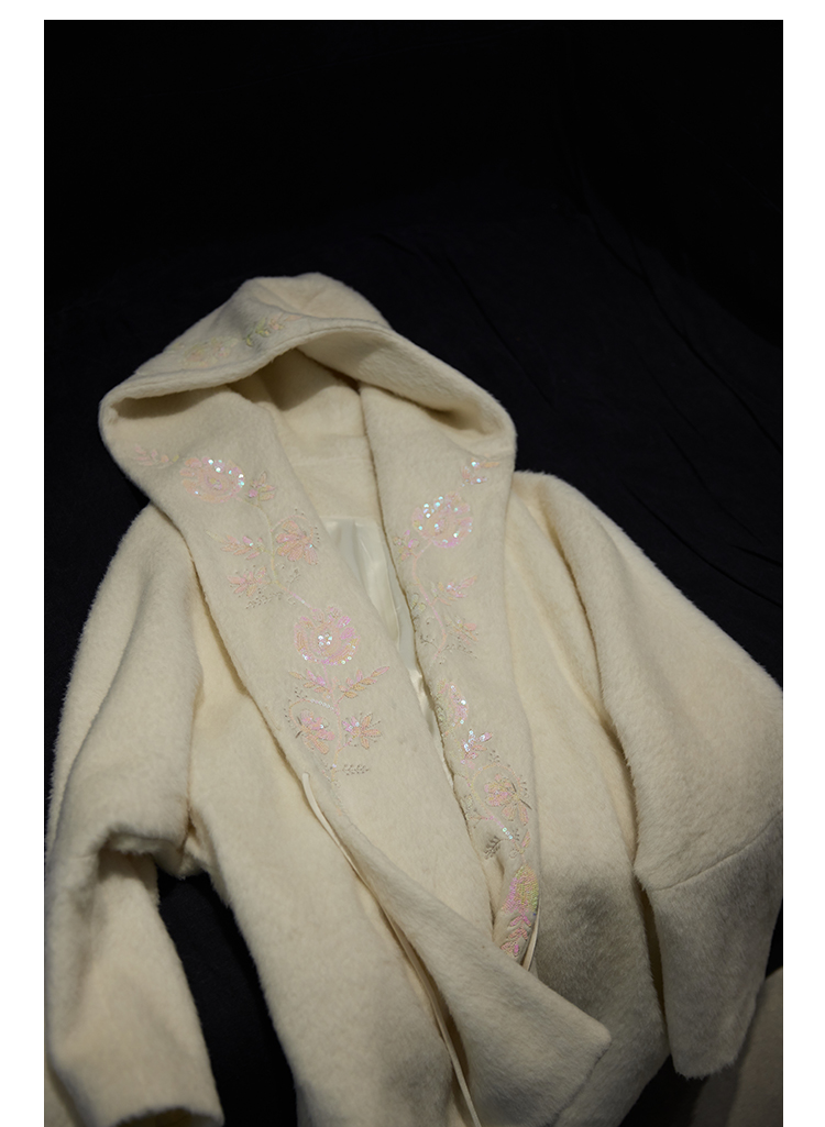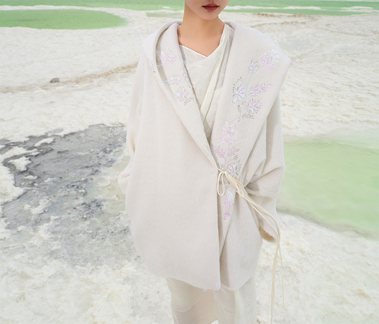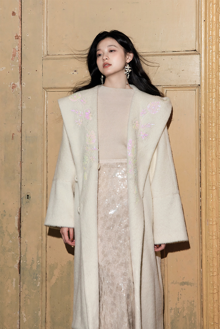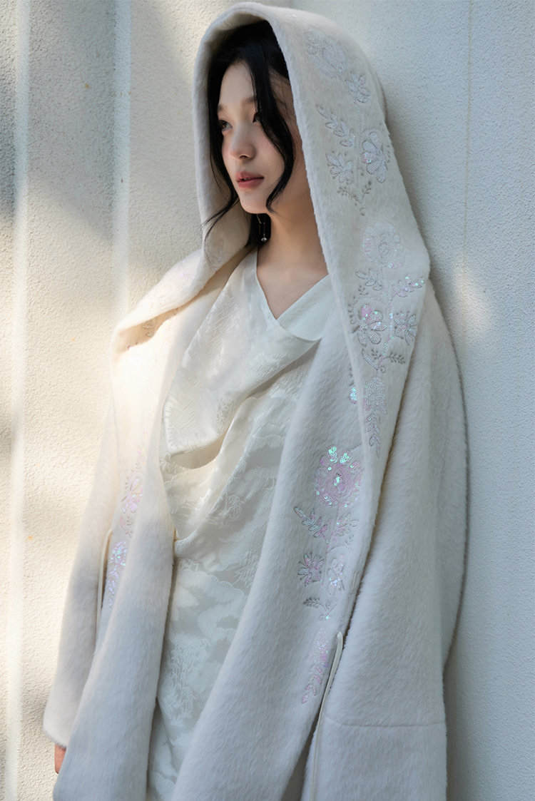 ASAYA2530 Alpaca wool | Heavy sequin embroidery | Creamy white short cape jacket