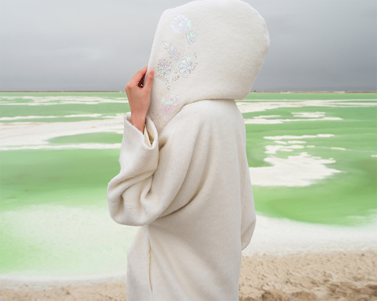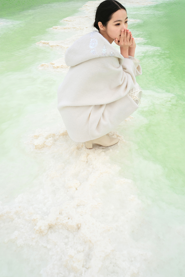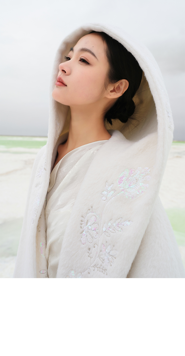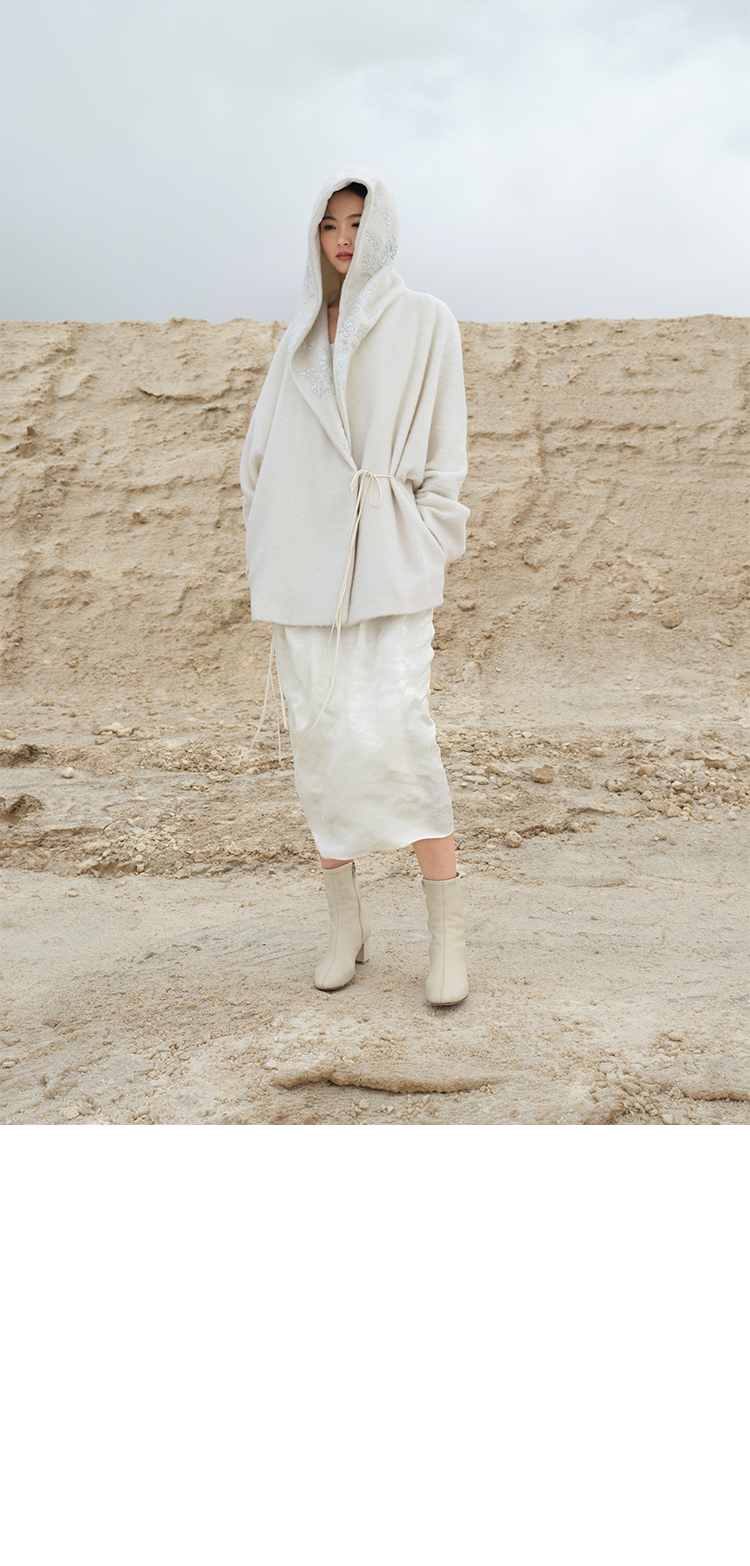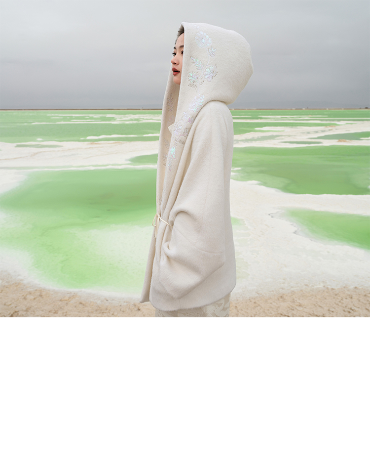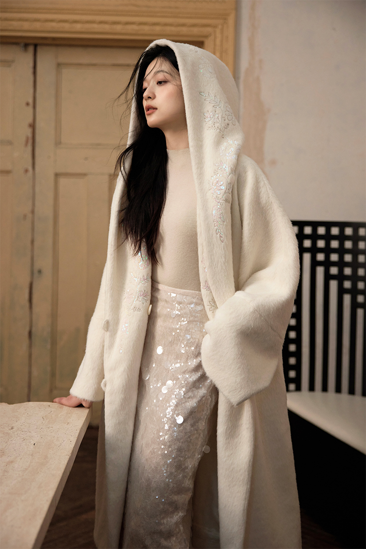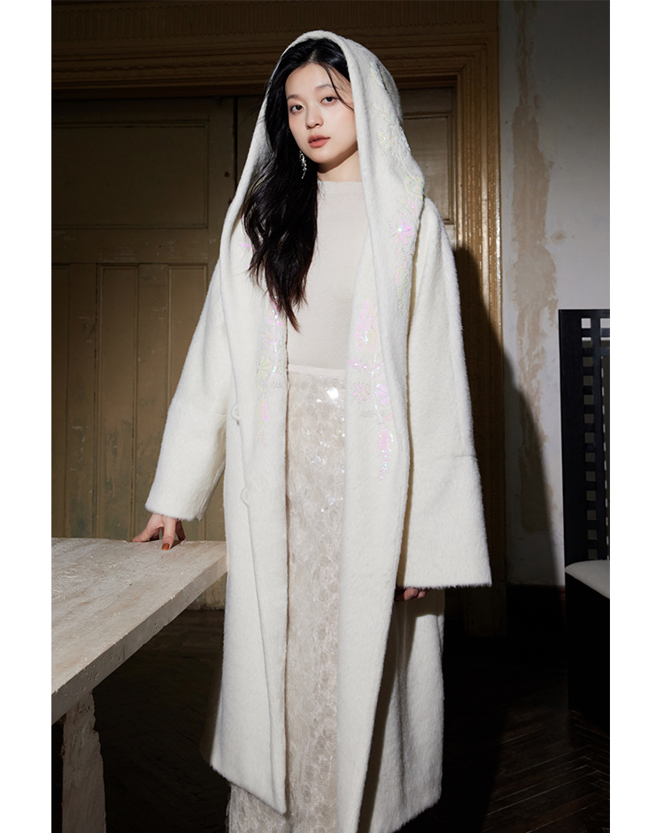 ASAYA2530 Alpaca wool | Heavy sequin embroidery | Creamy white short cape jacket