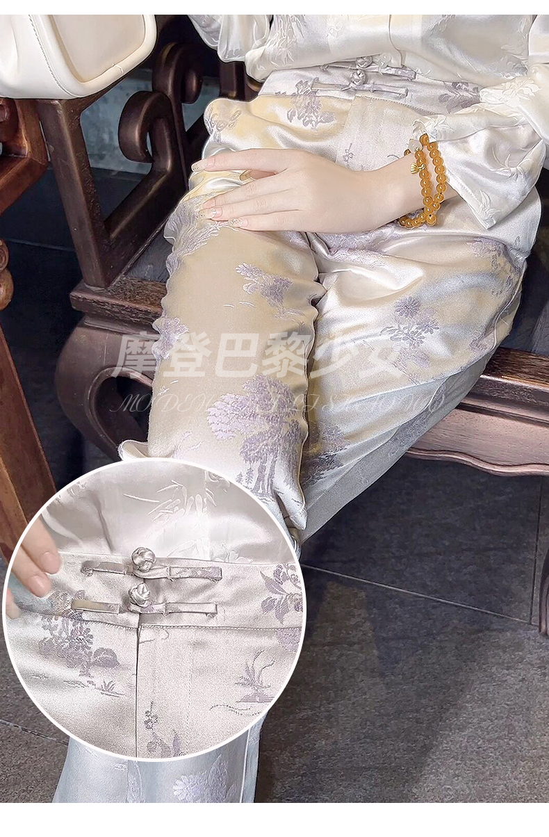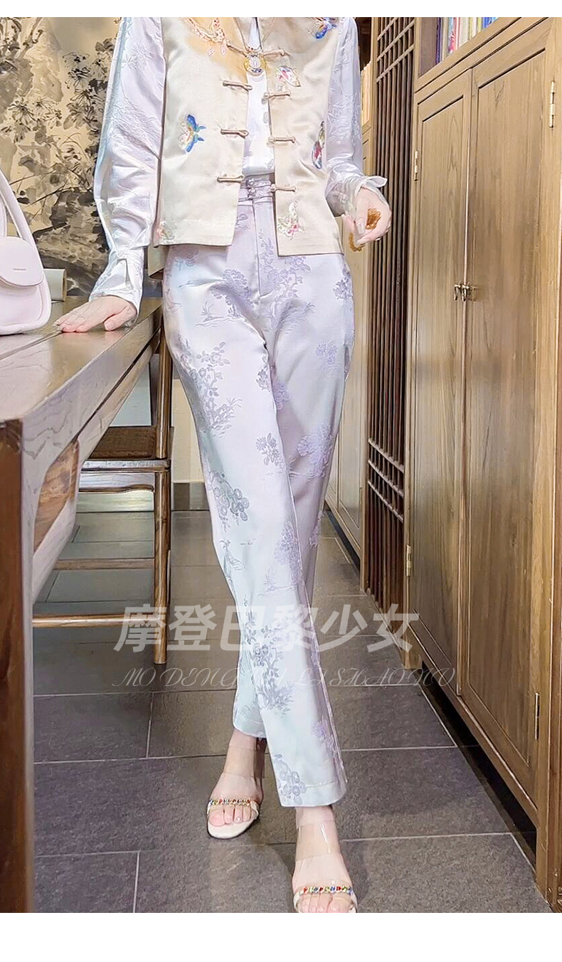 ASAYA2742 Ancient plant-dyed white retro small-leg pants