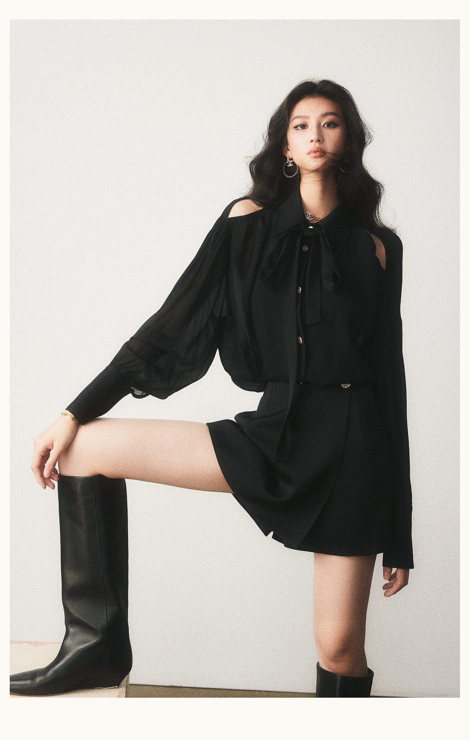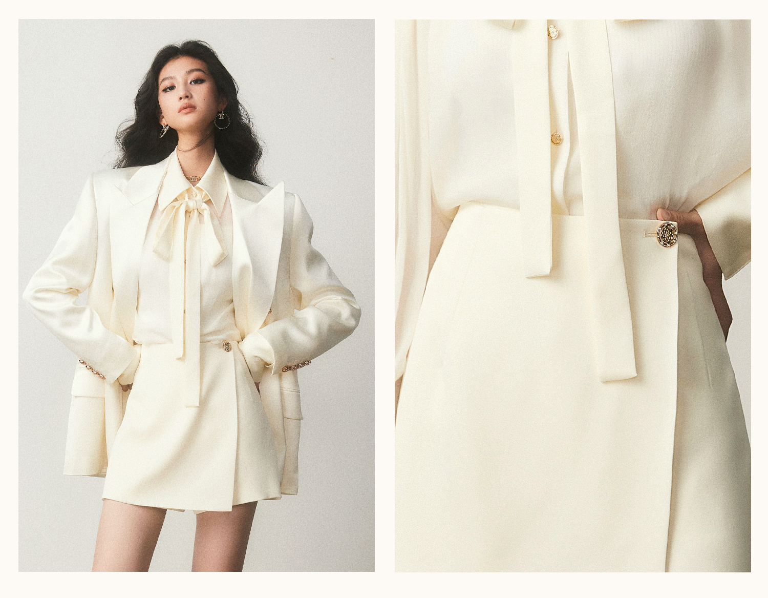 ASAYA2383 NAIA acetate diamond button overlapping three-dimensional skirt