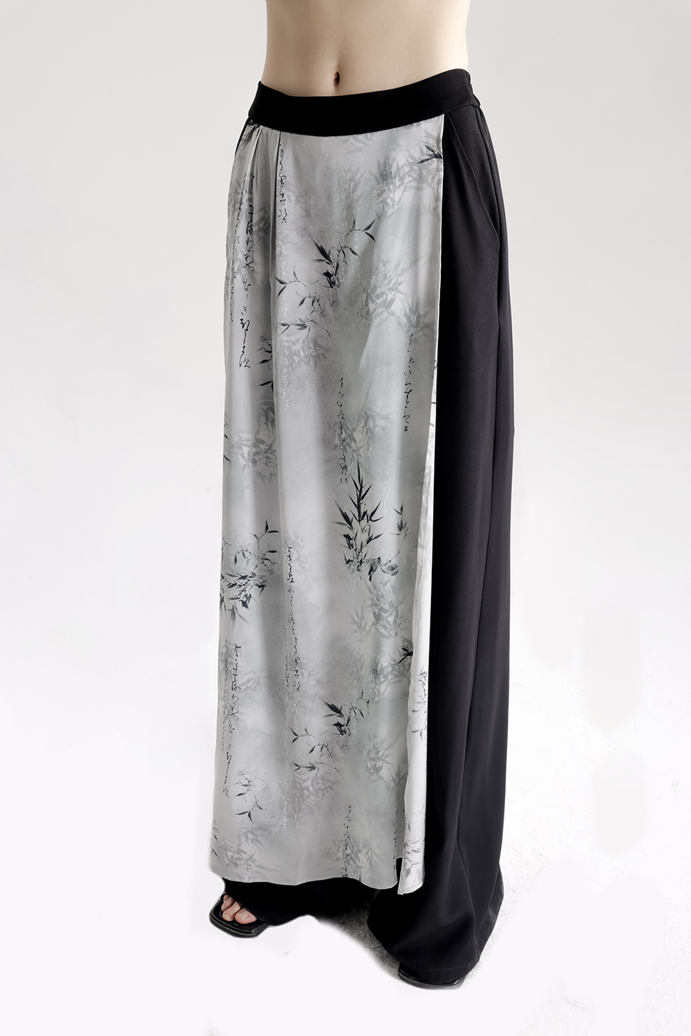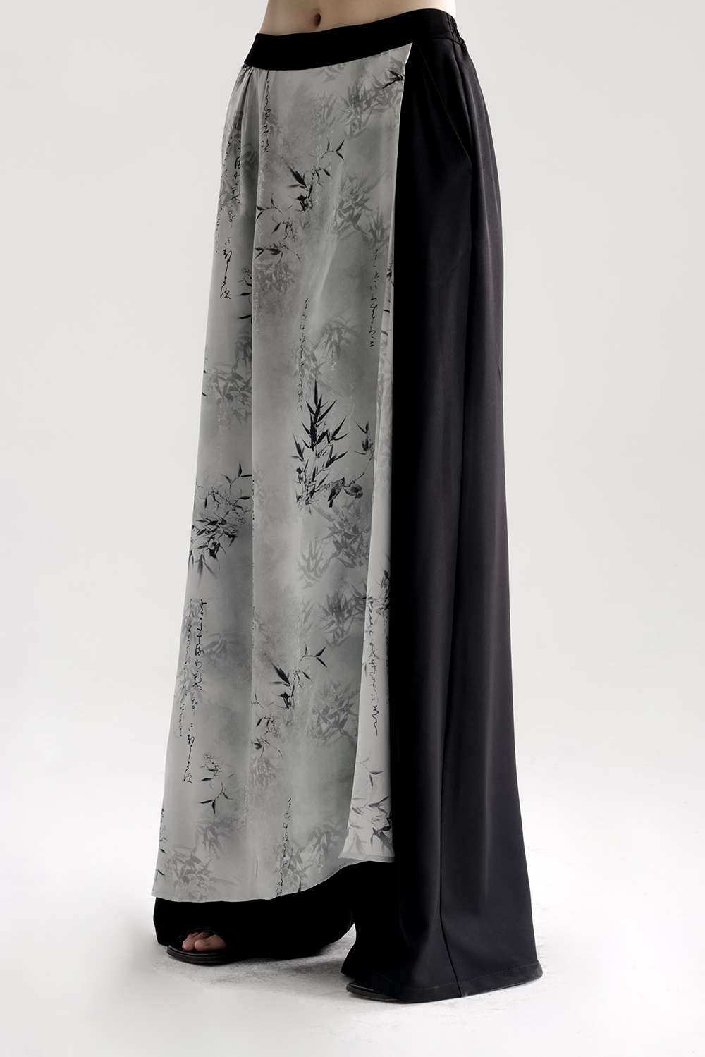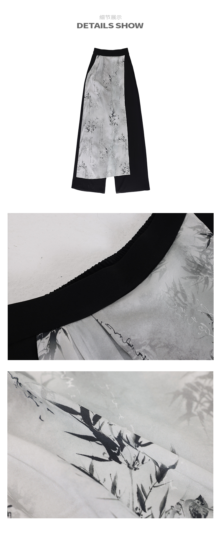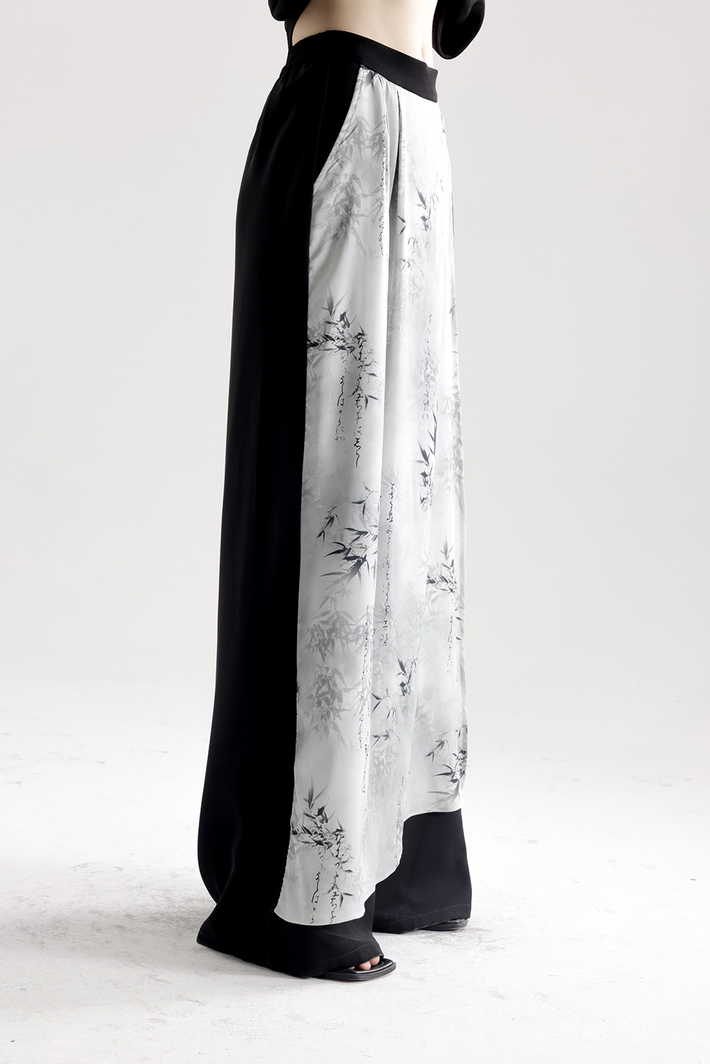 ASAYA3400 APOZi collection Simulated Time series New Chinese style ink painting straight loose wide-leg pants for women
