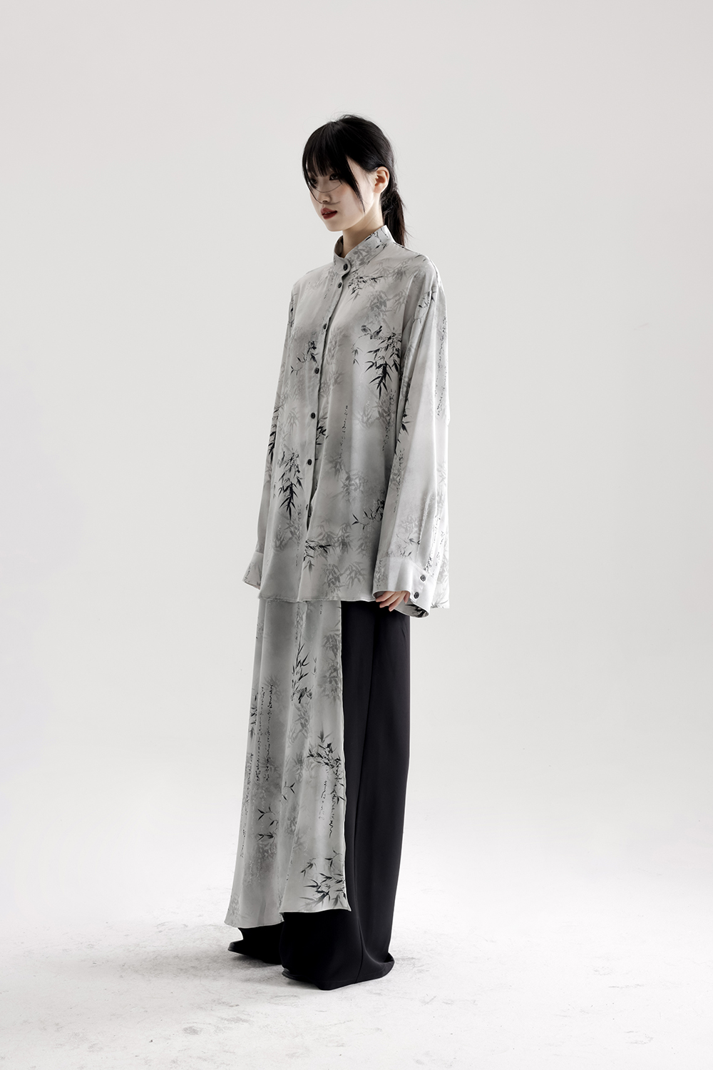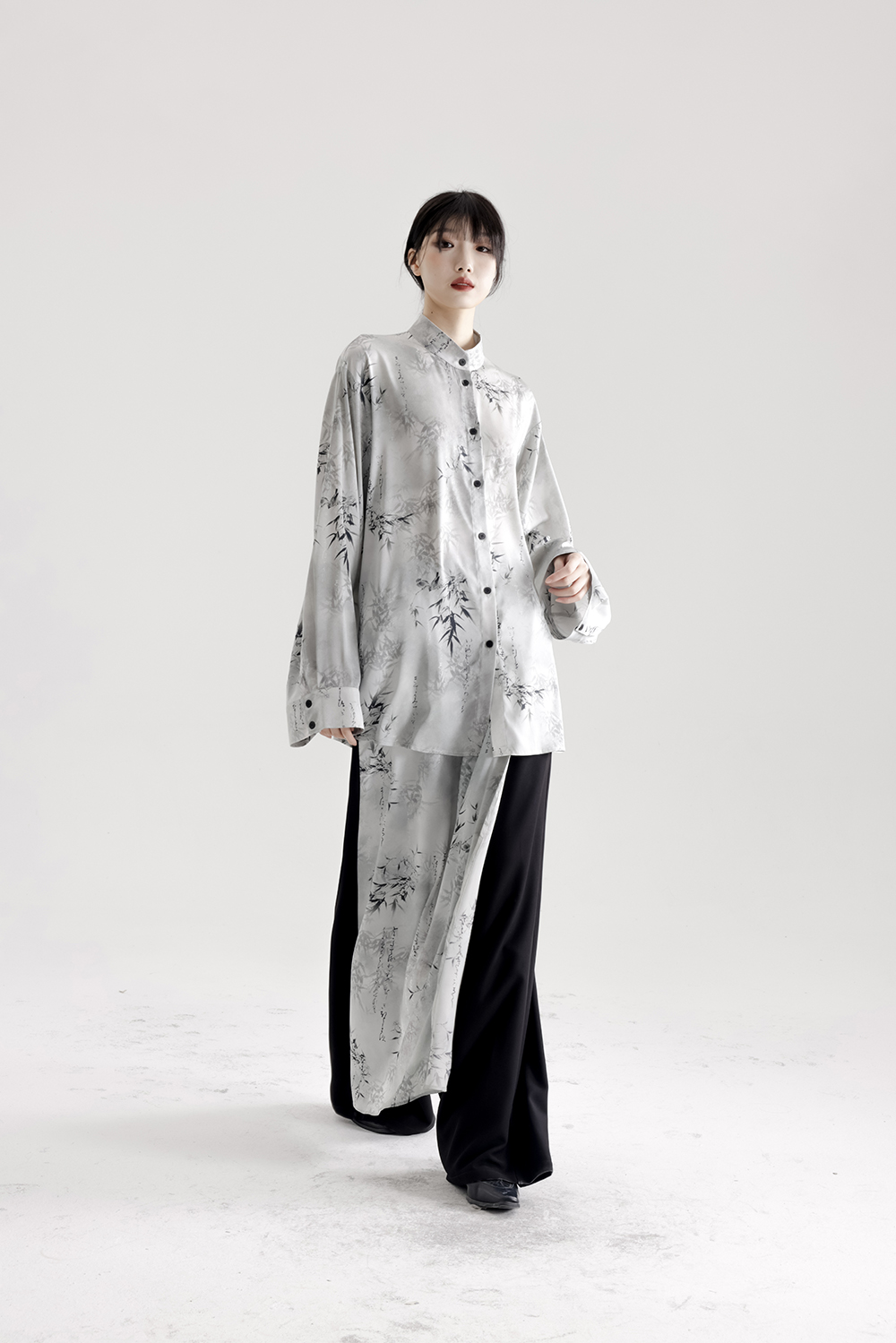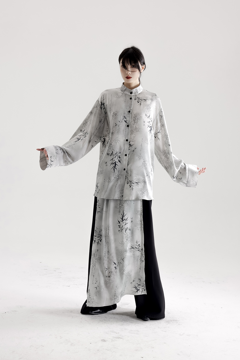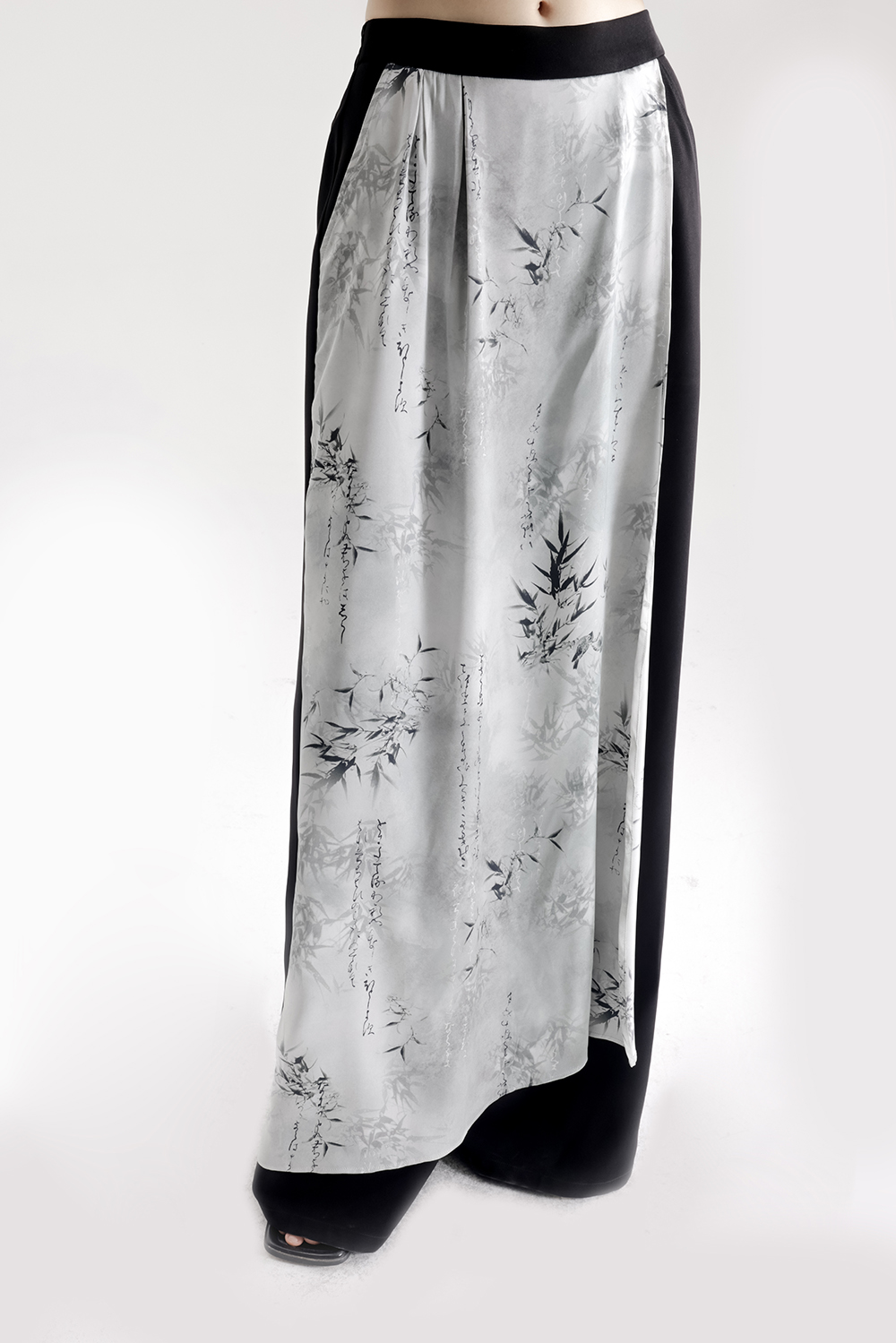 ASAYA3400 APOZi collection Simulated Time series New Chinese style ink painting straight loose wide-leg pants for women