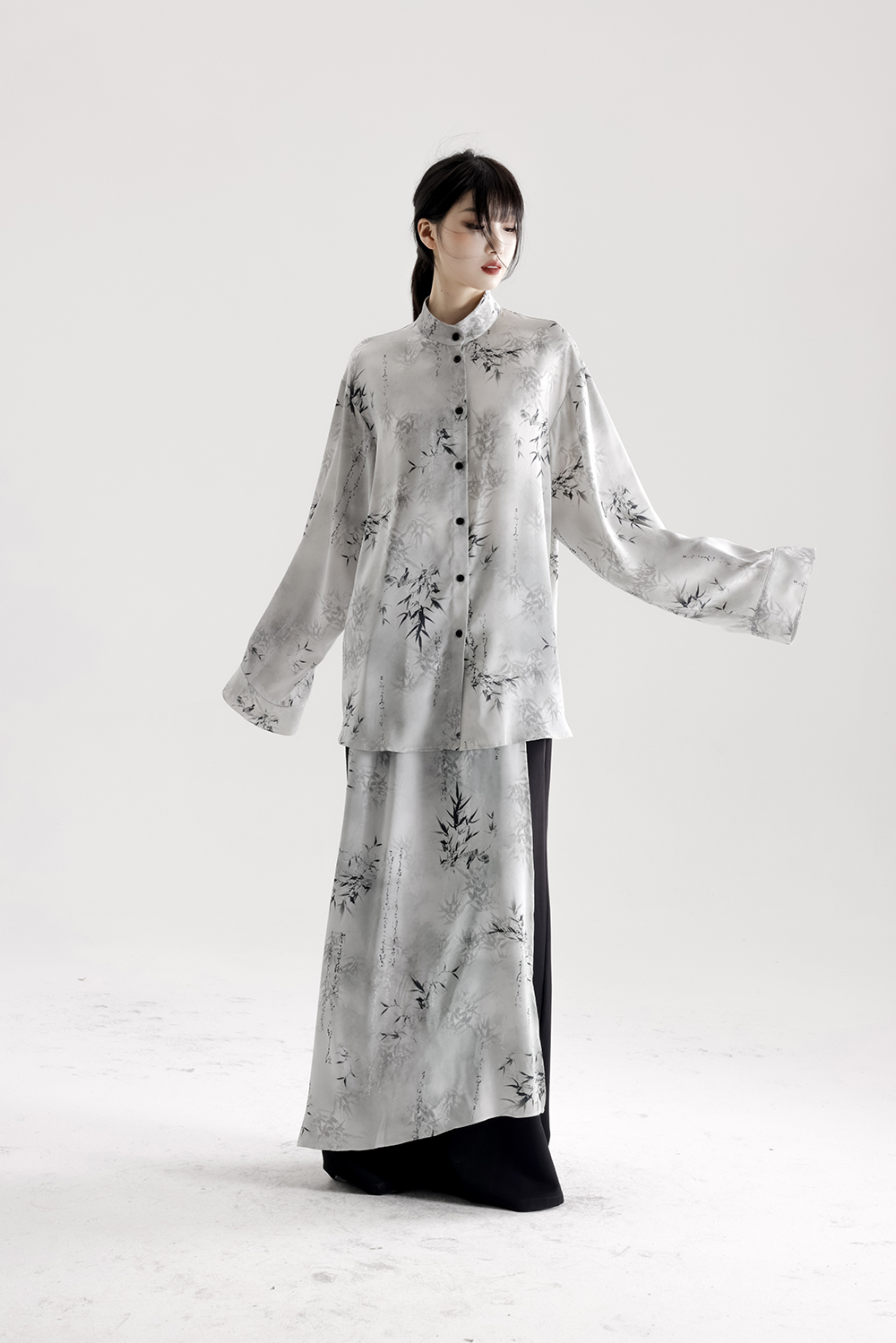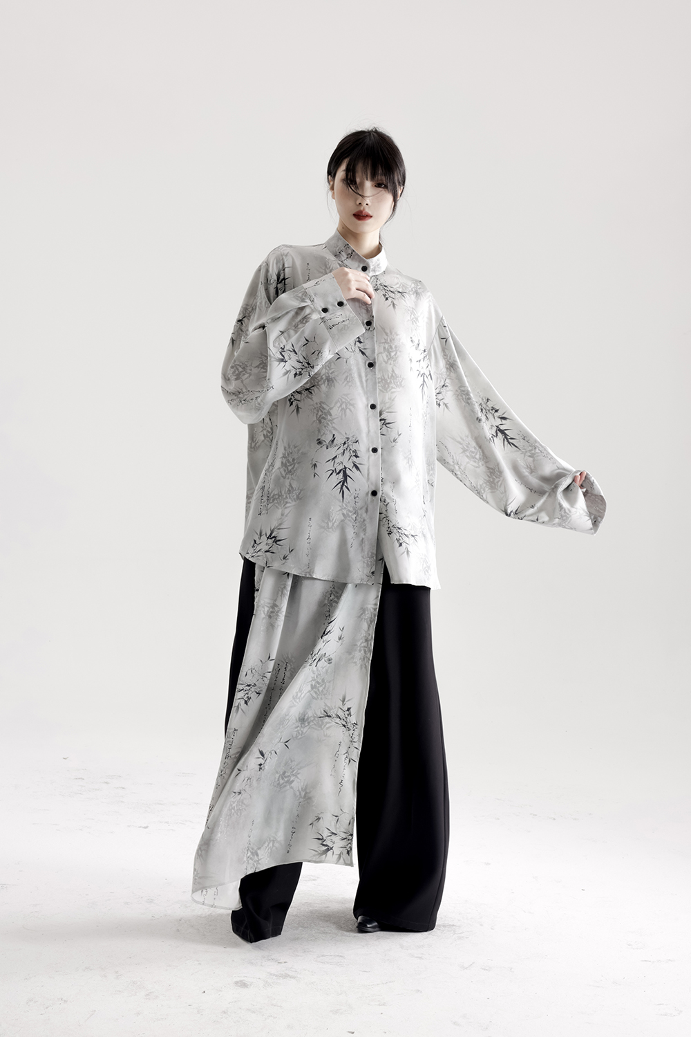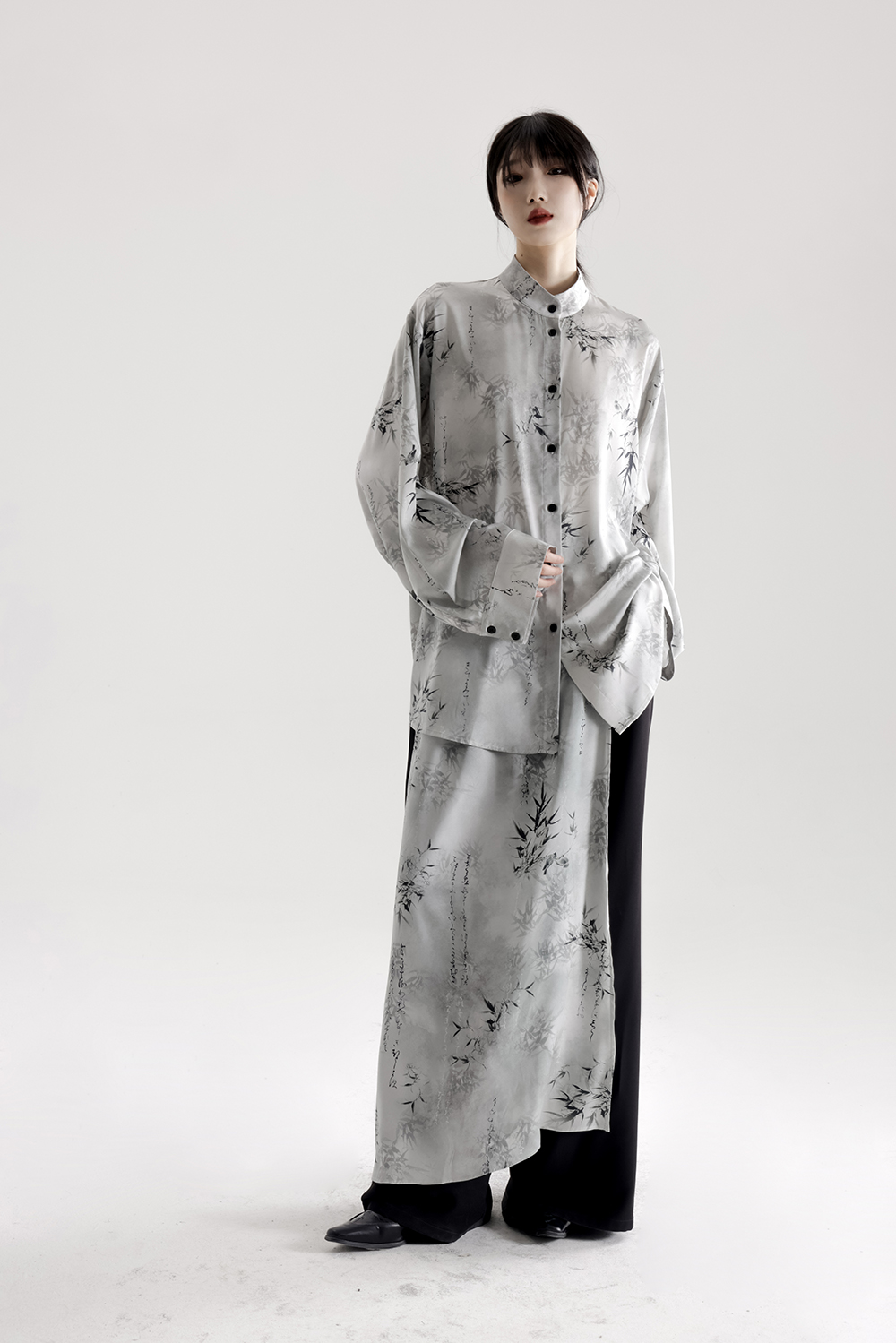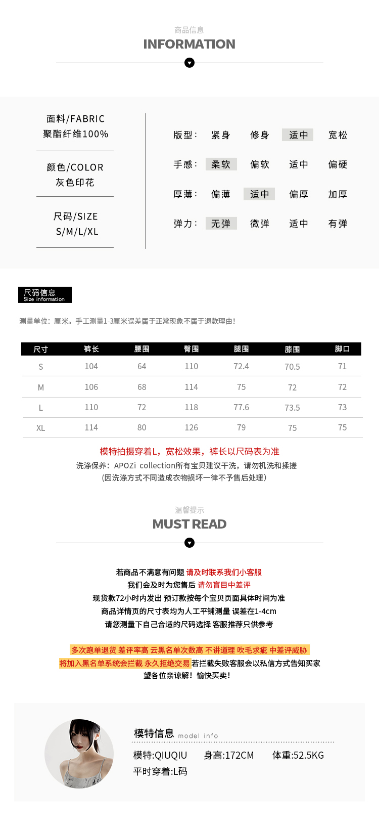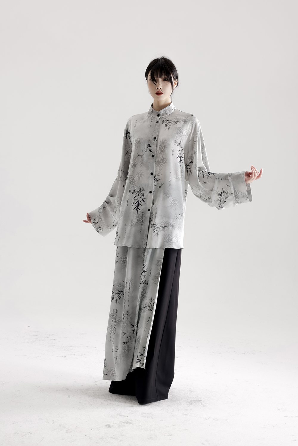 ASAYA3400 APOZi collection Simulated Time series New Chinese style ink painting straight loose wide-leg pants for women