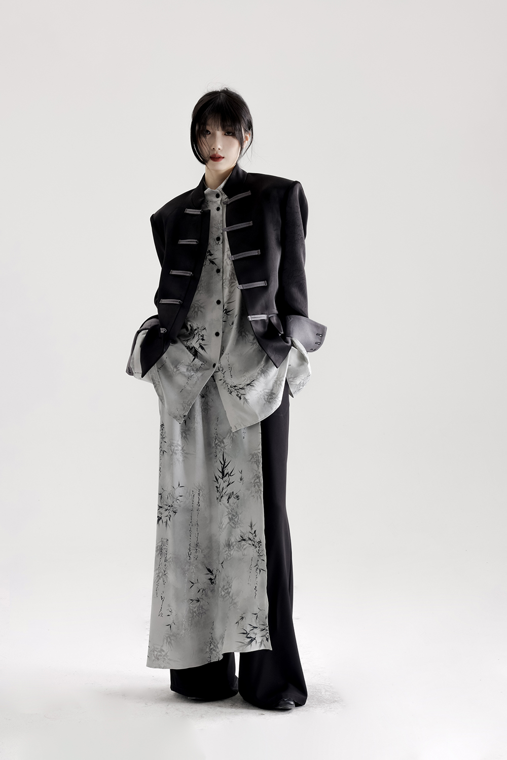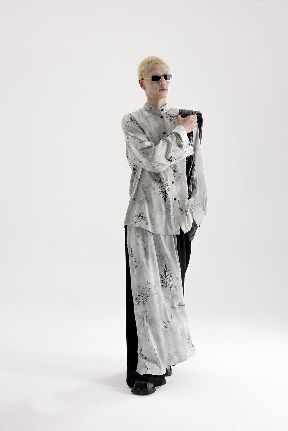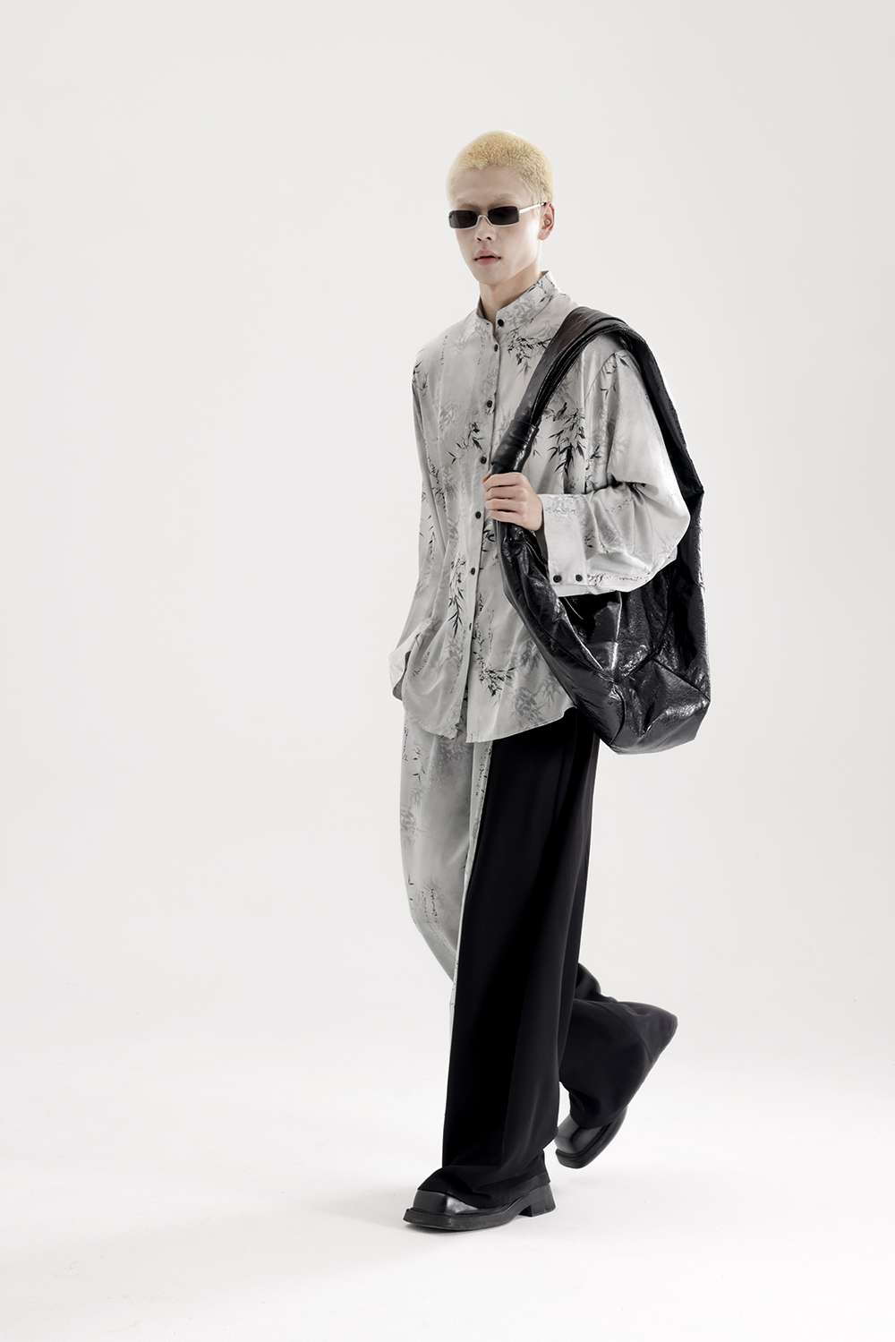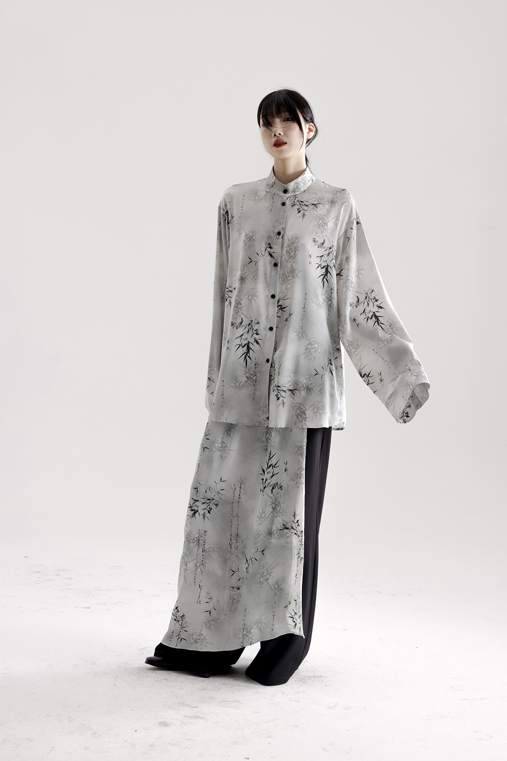 ASAYA3400 APOZi collection Simulated Time series New Chinese style ink painting straight loose wide-leg pants for women