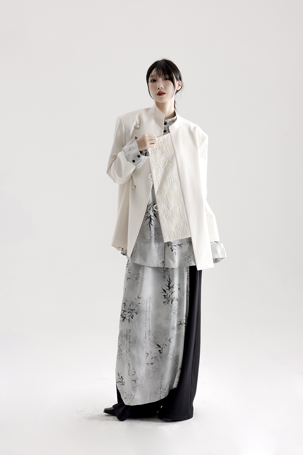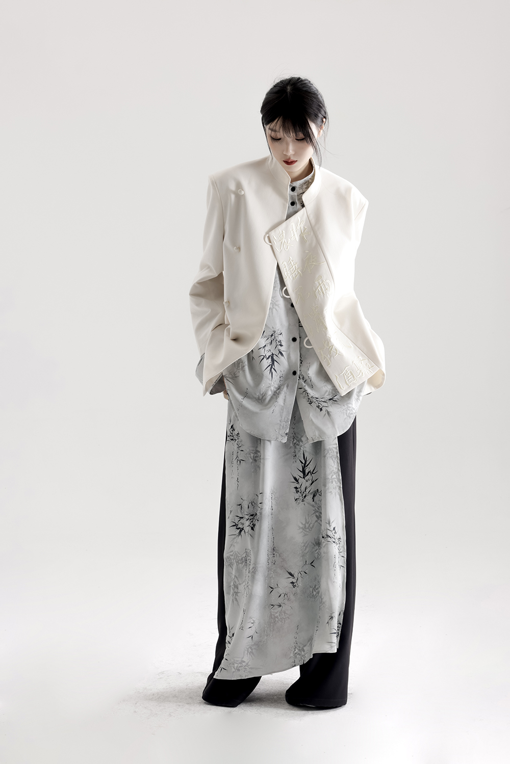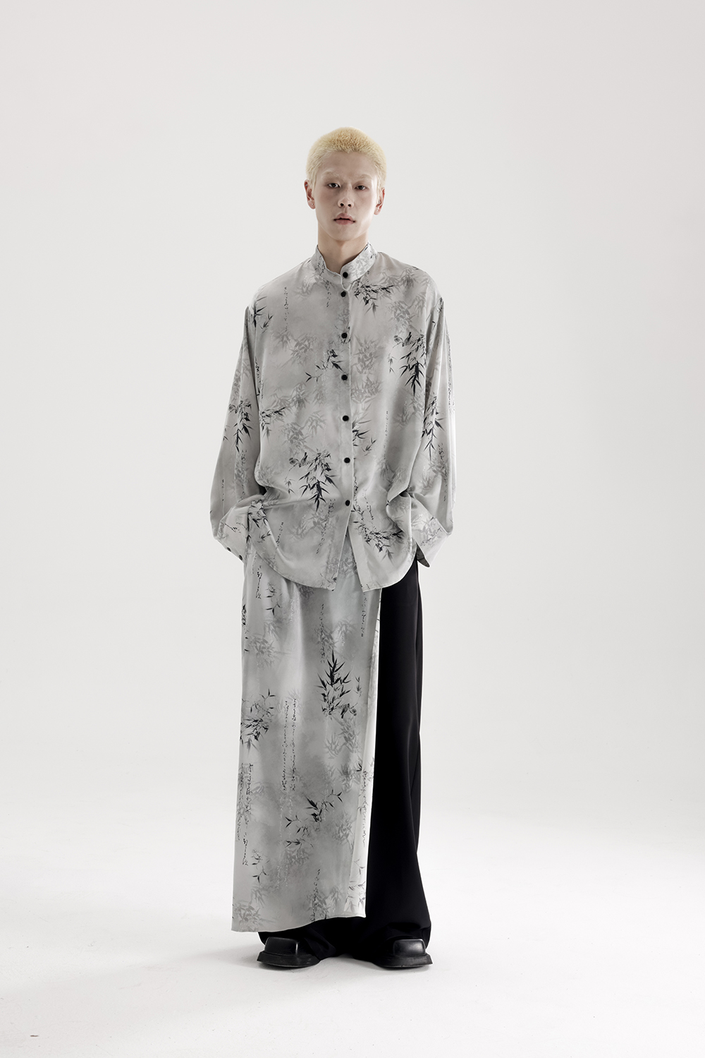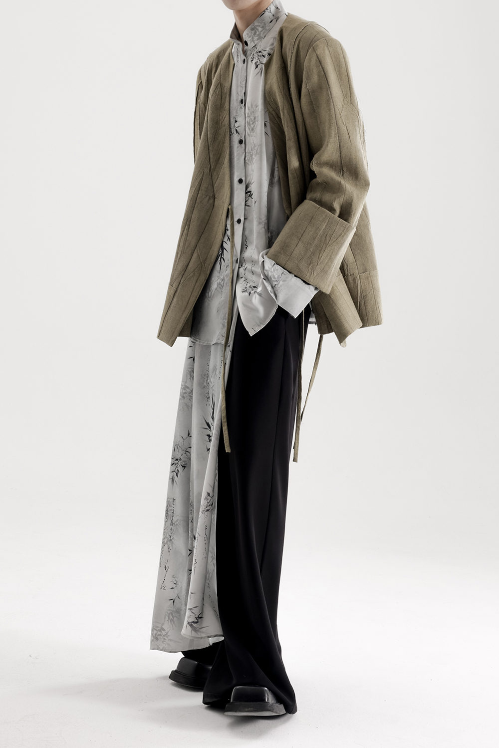 ASAYA3400 APOZi collection Simulated Time series New Chinese style ink painting straight loose wide-leg pants for women