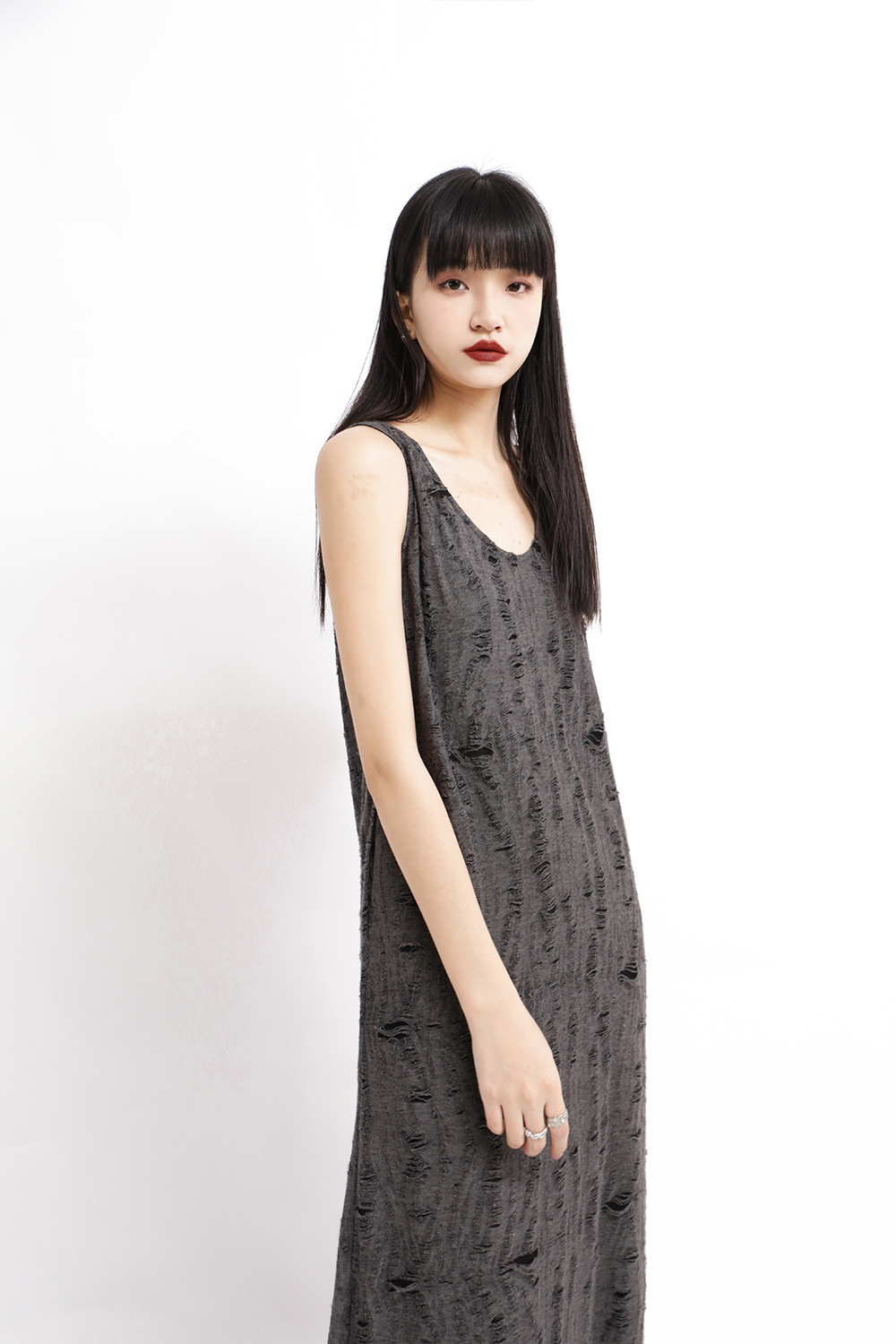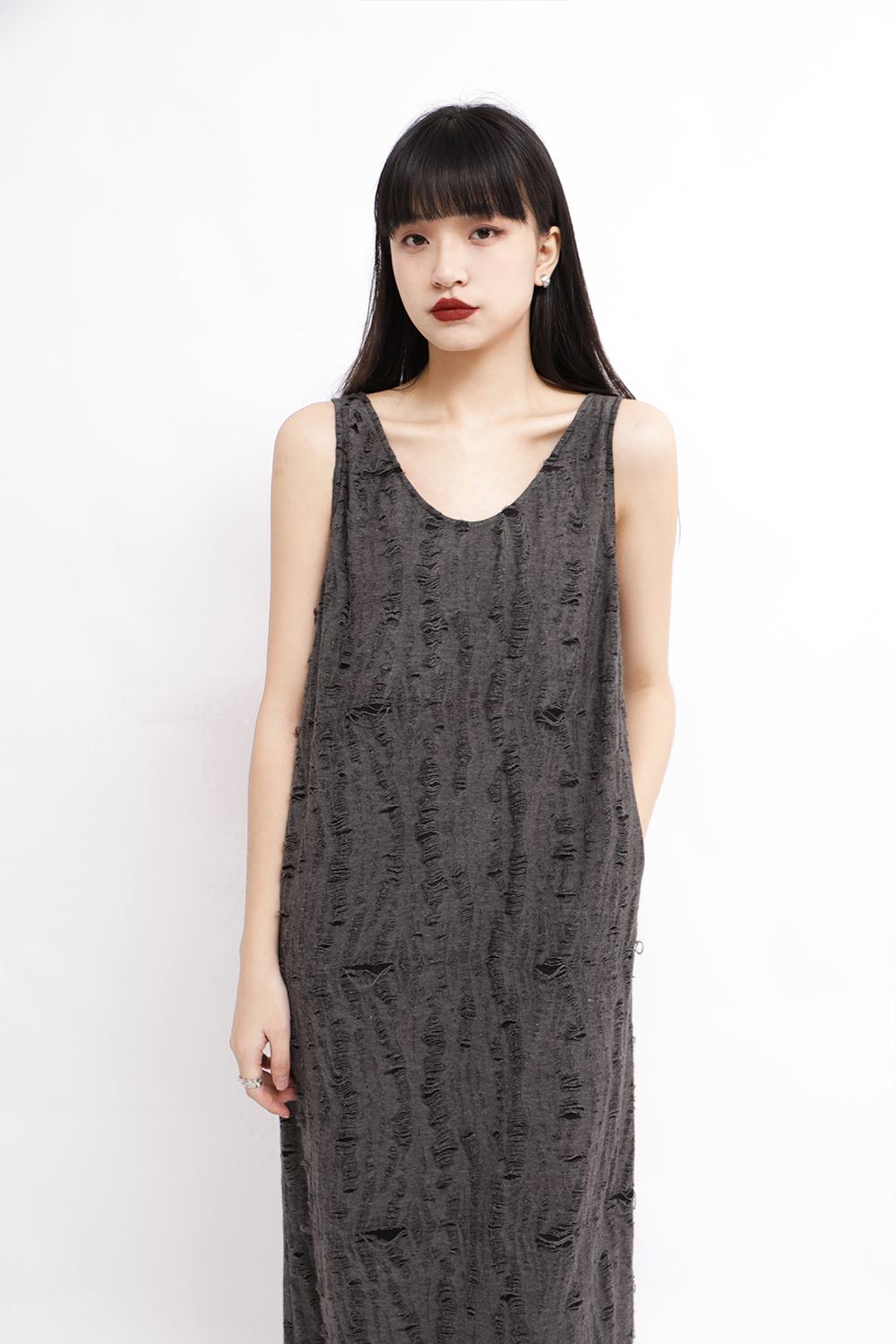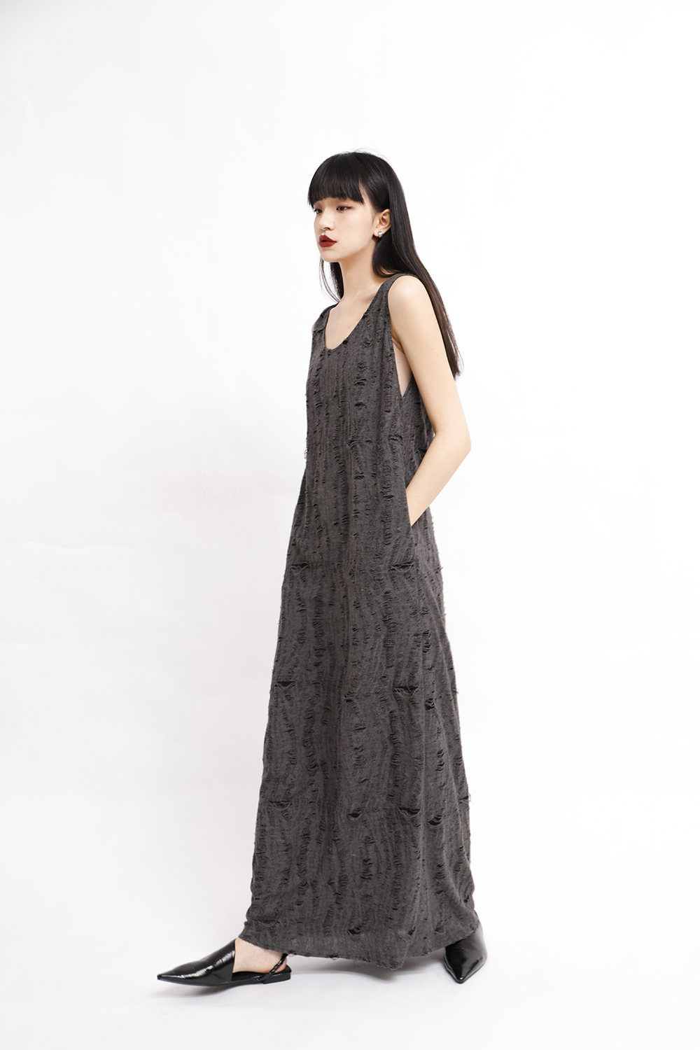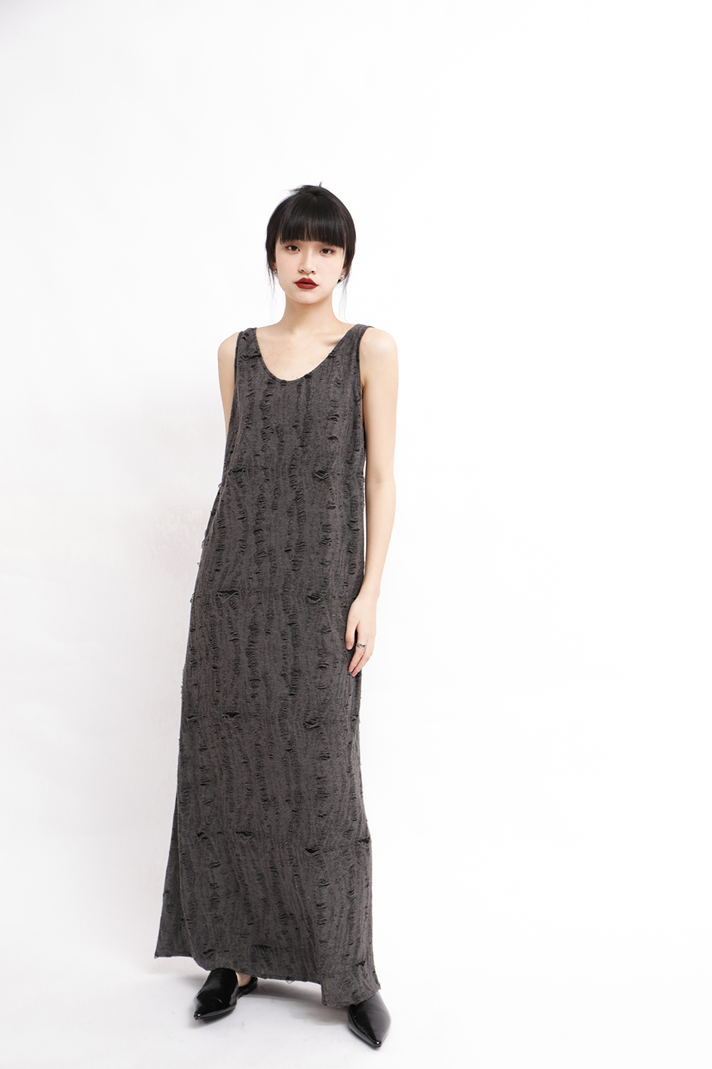 Asaya739 - APOZi Landscape Series Grey Hole Loose Strap Dress for Women Tall and Elegant Long Skirt Zixia New Style