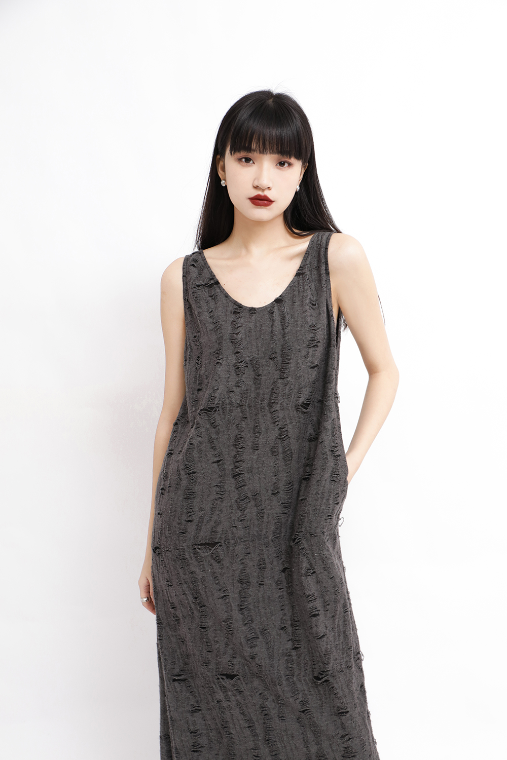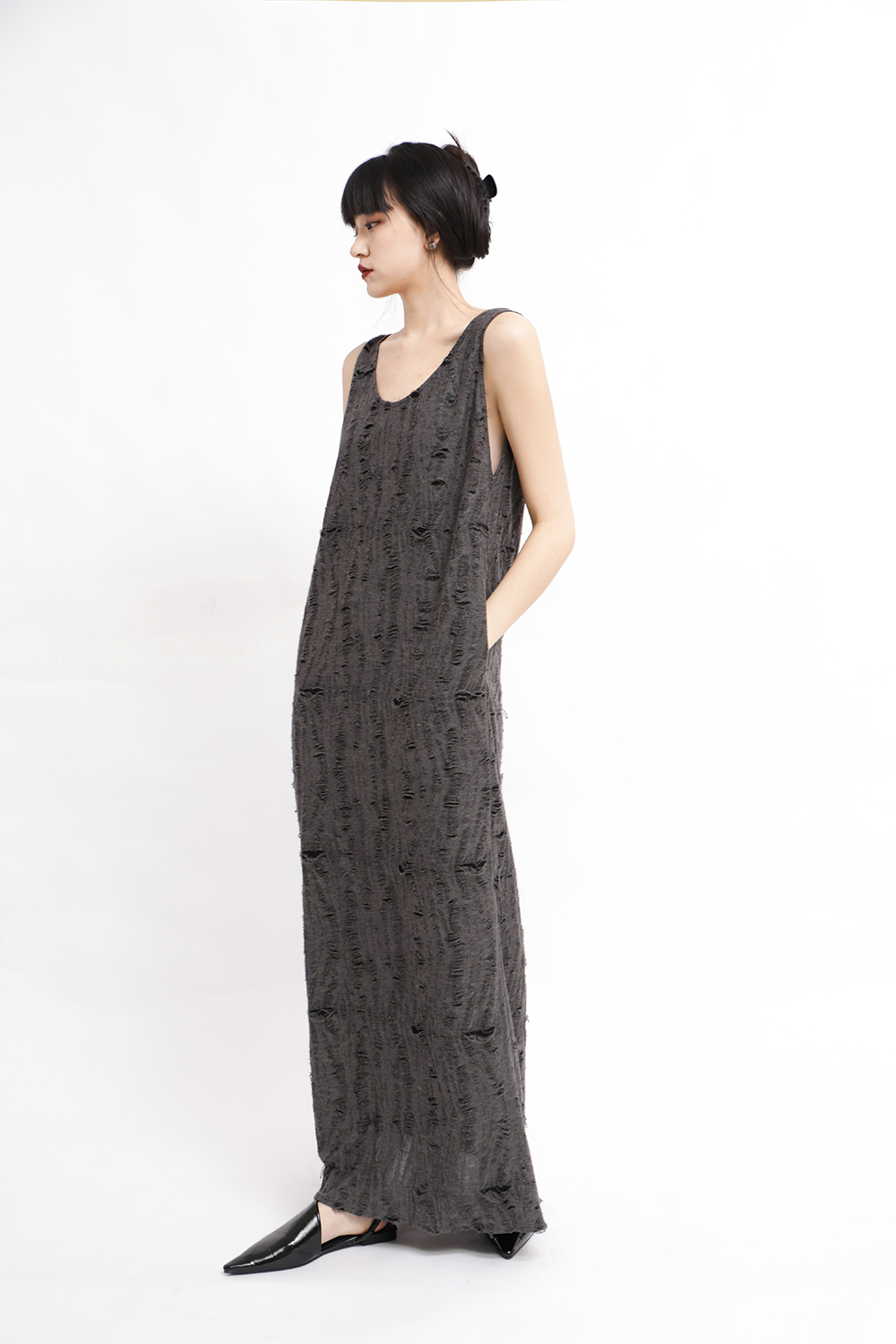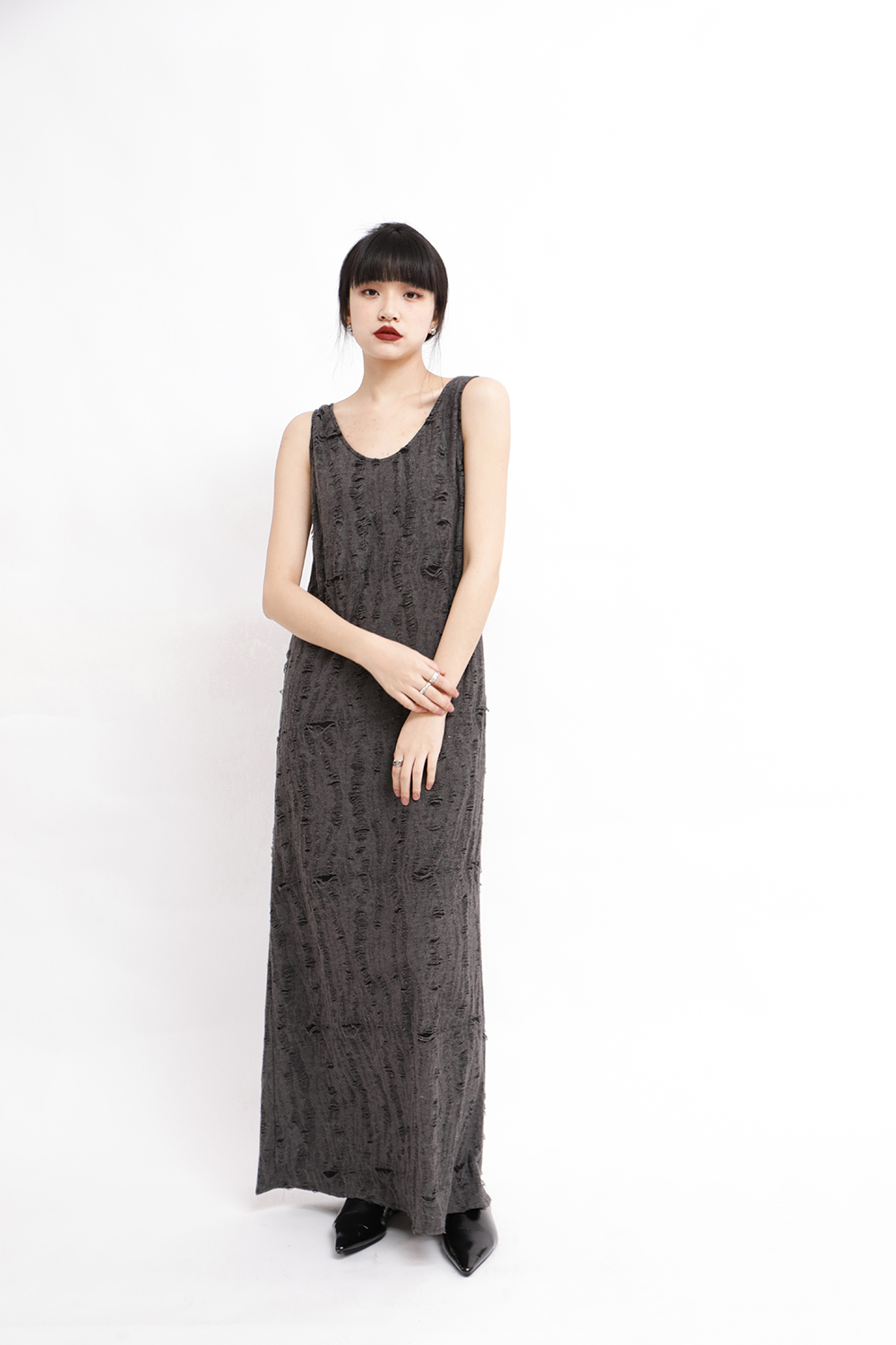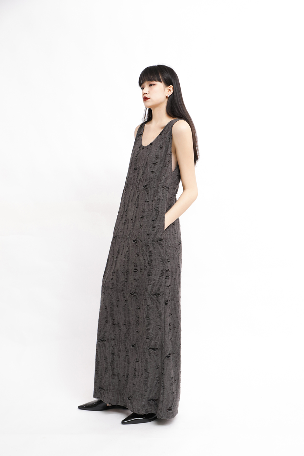 Asaya739 - APOZi Landscape Series Grey Hole Loose Strap Dress for Women Tall and Elegant Long Skirt Zixia New Style