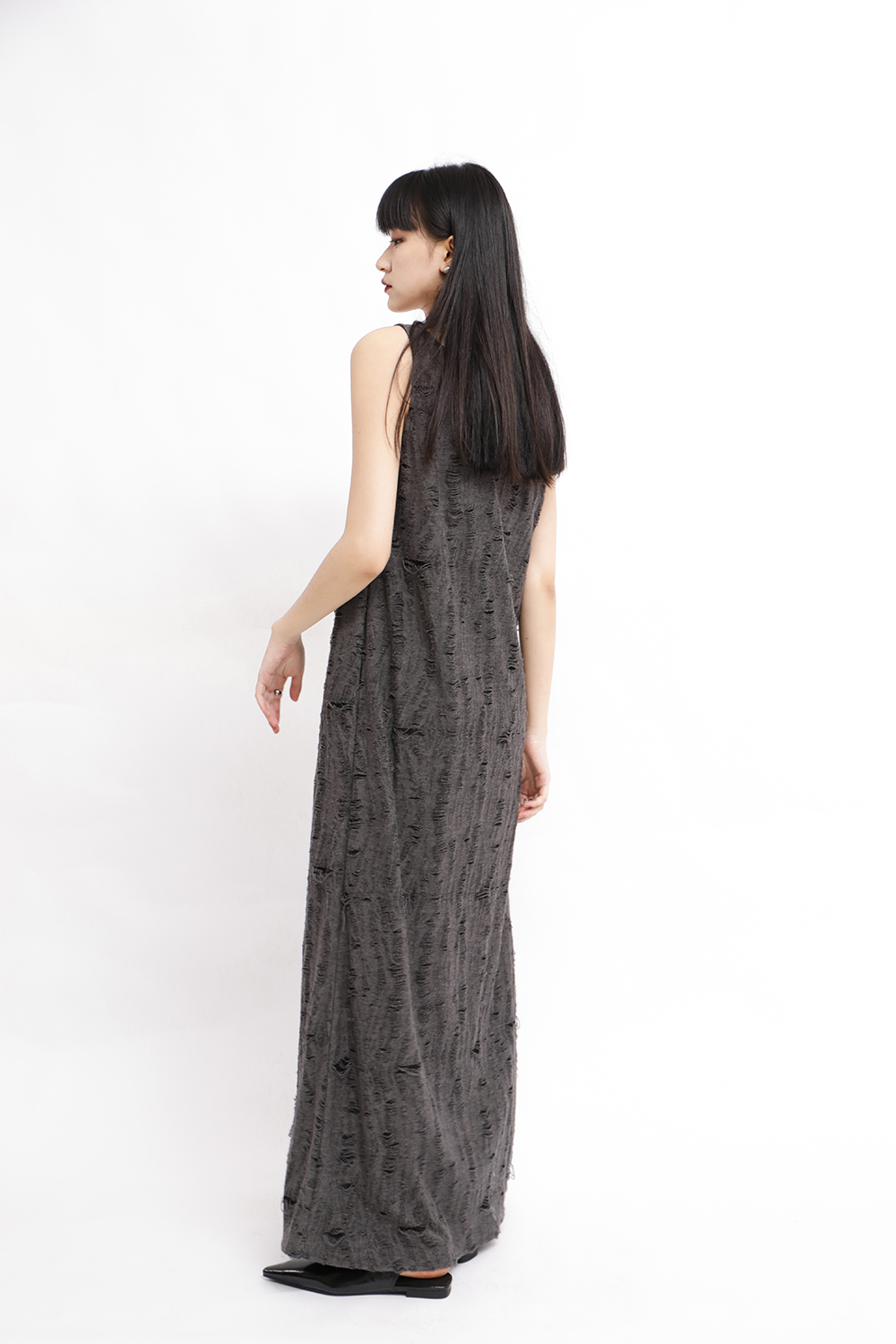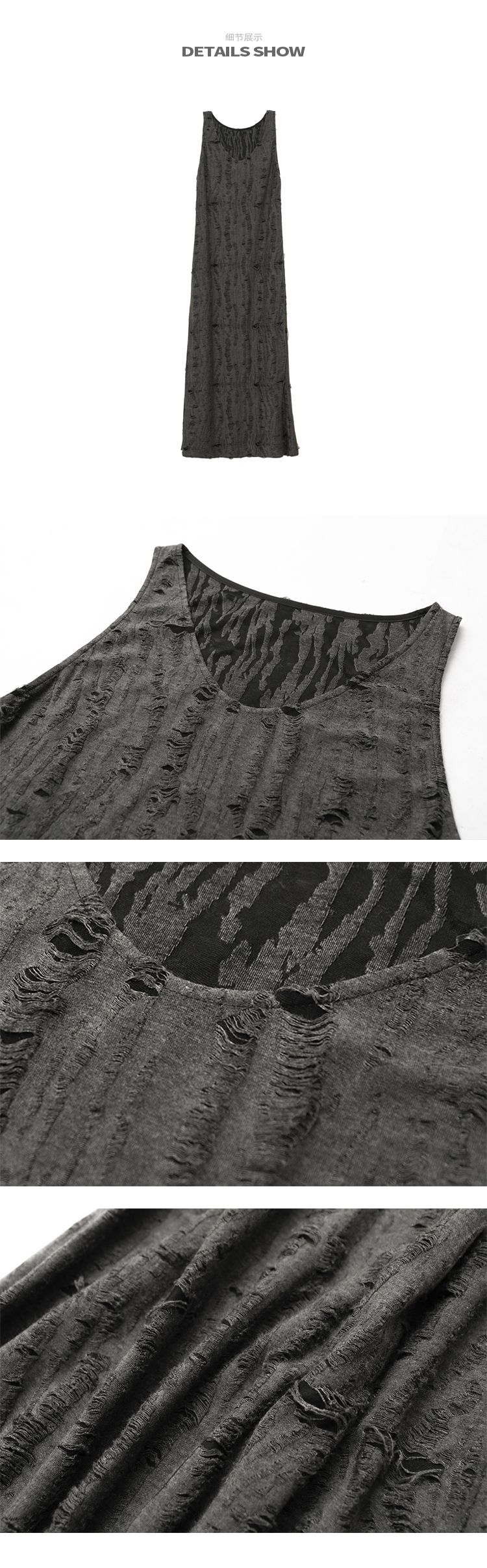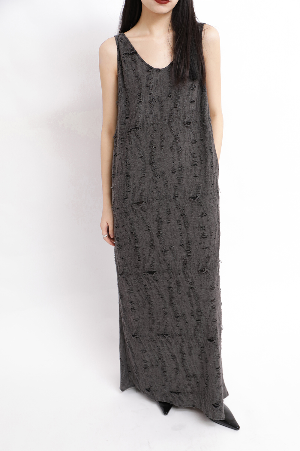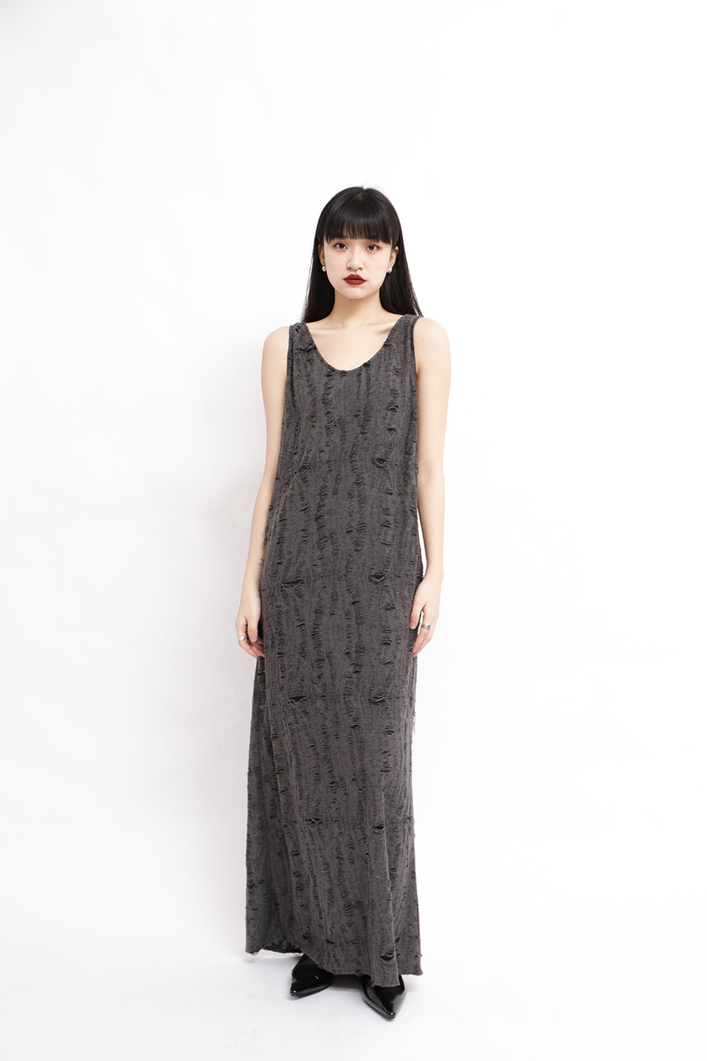 Asaya739 - APOZi Landscape Series Grey Hole Loose Strap Dress for Women Tall and Elegant Long Skirt Zixia New Style