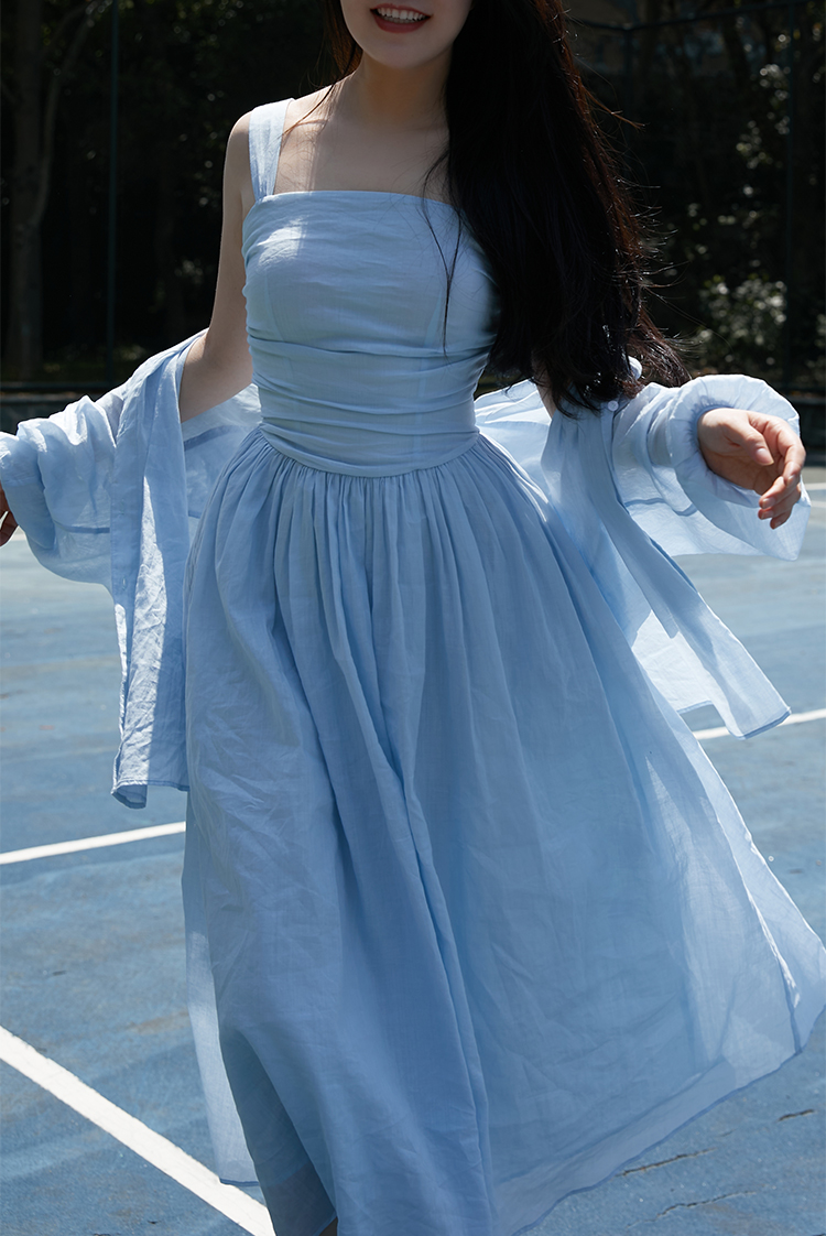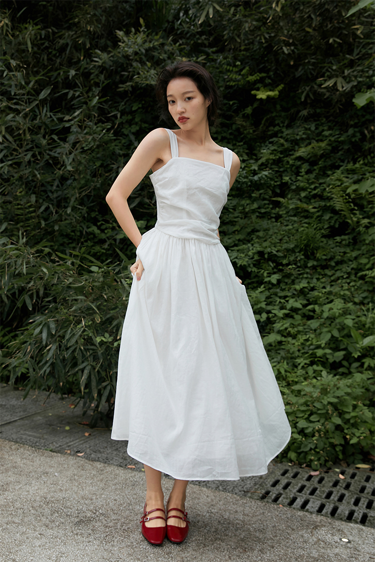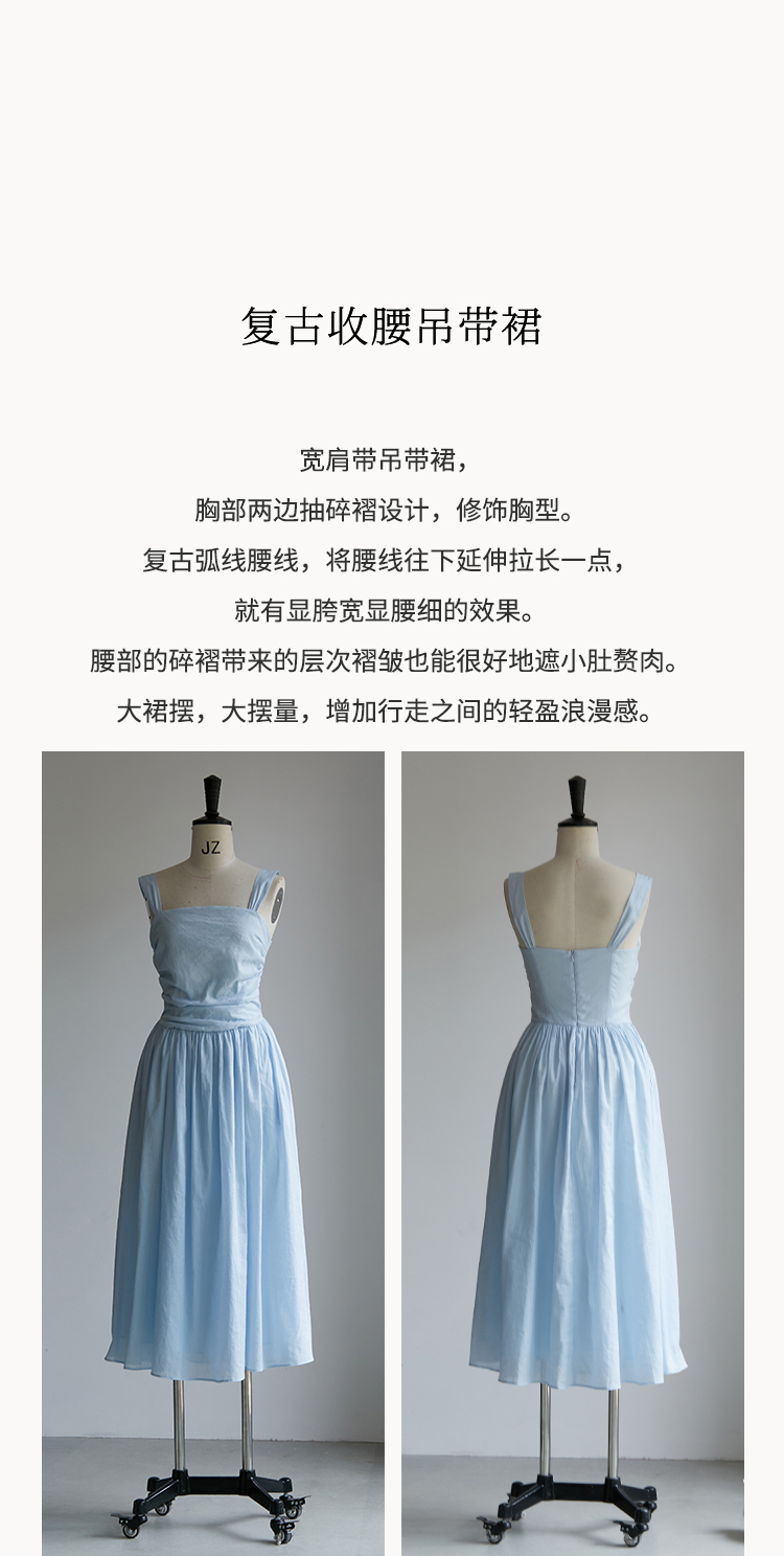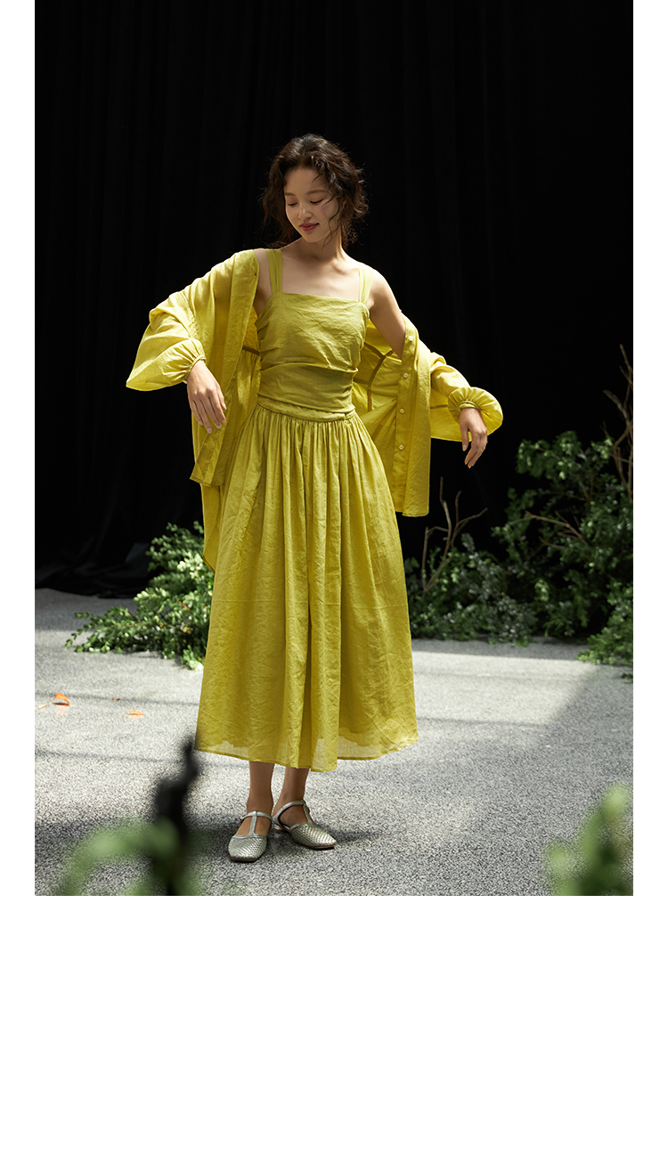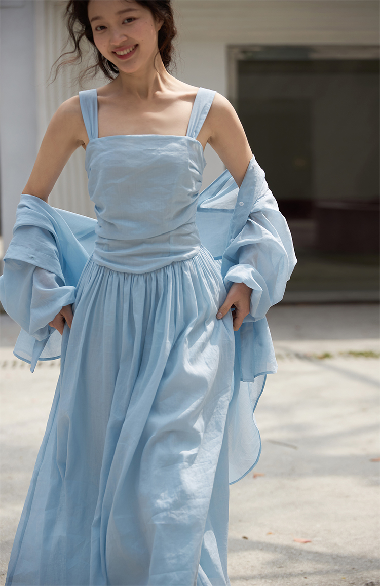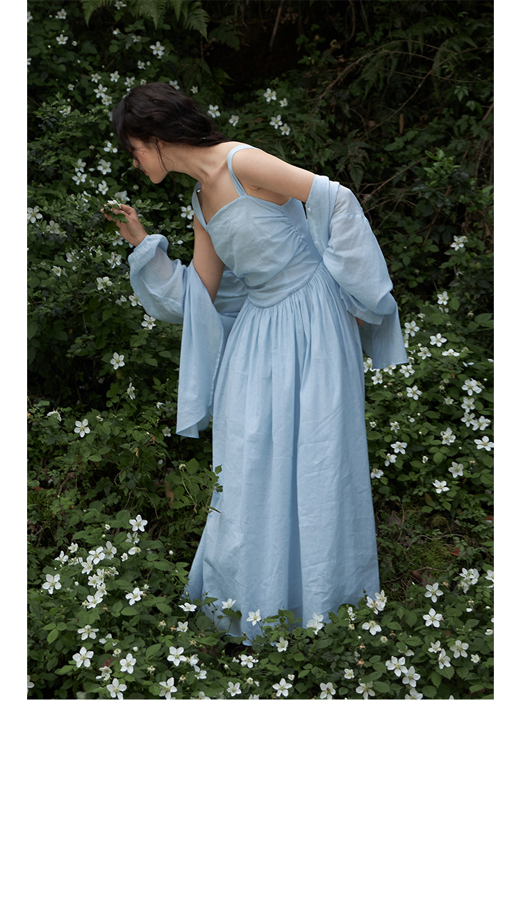 Asaya2154 : April in the world shows white ramie cotton suit retro arc waist line suspender skirt / small lantern sleeve shirt female