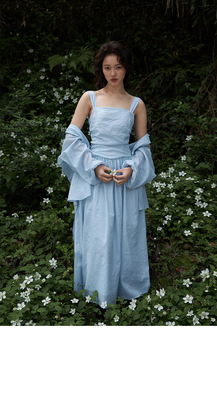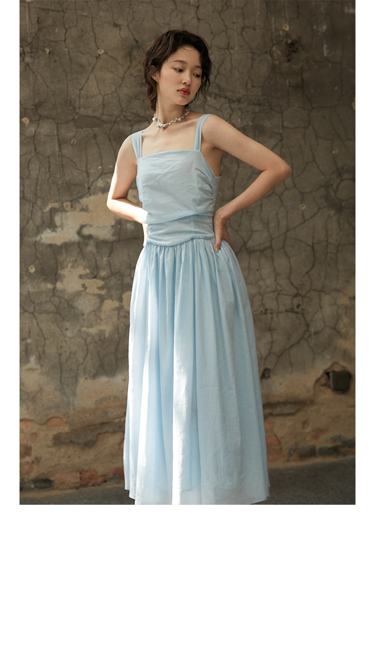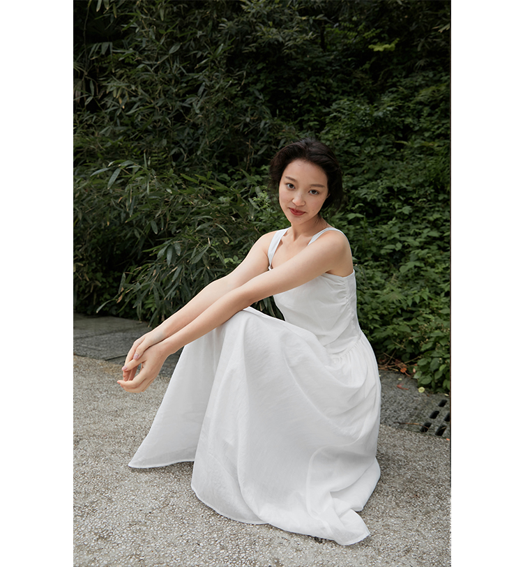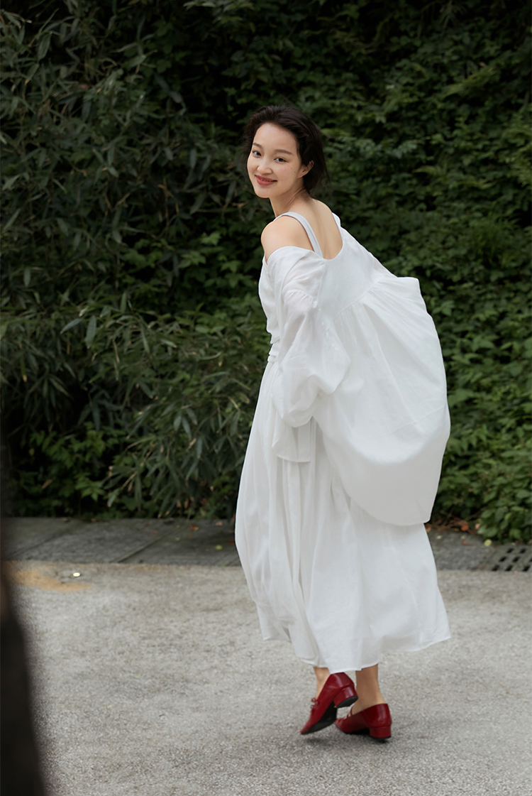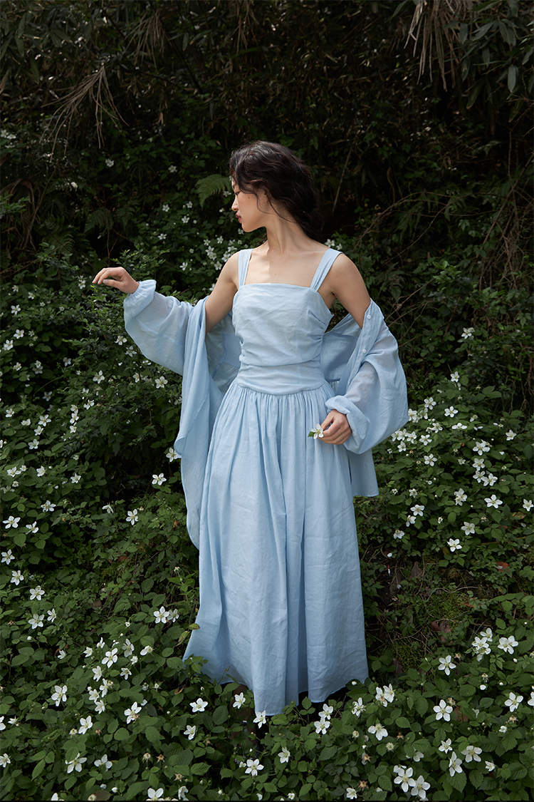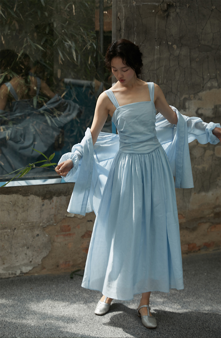 Asaya2154 : April in the world shows white ramie cotton suit retro arc waist line suspender skirt / small lantern sleeve shirt female