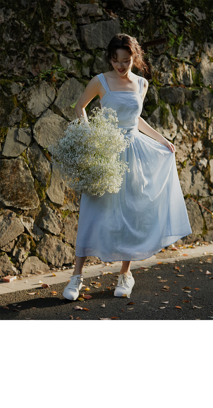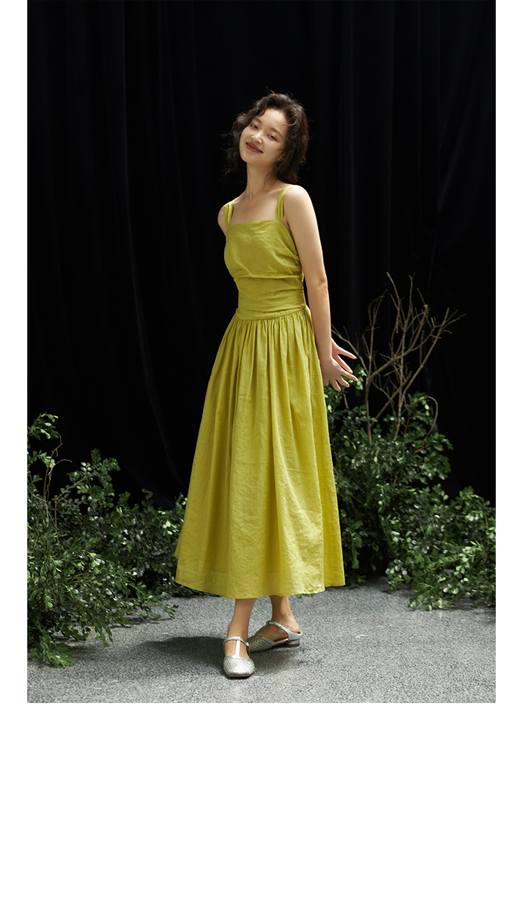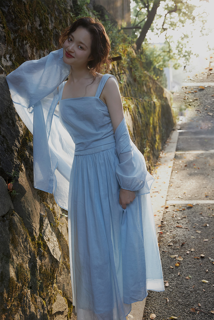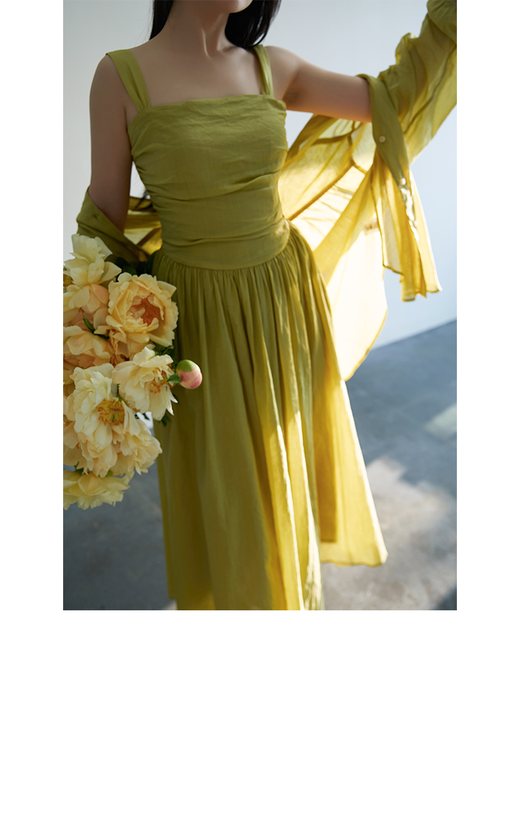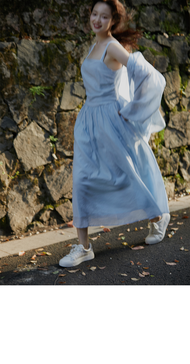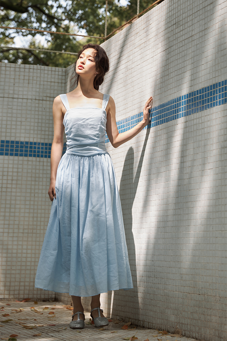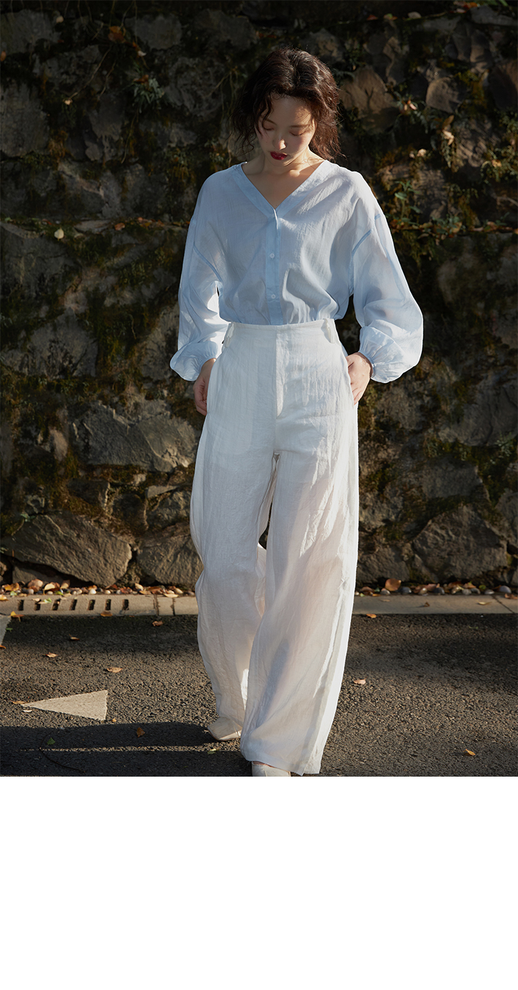 Asaya2154 : April in the world shows white ramie cotton suit retro arc waist line suspender skirt / small lantern sleeve shirt female