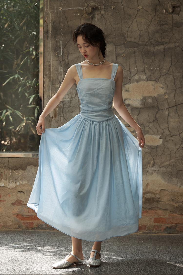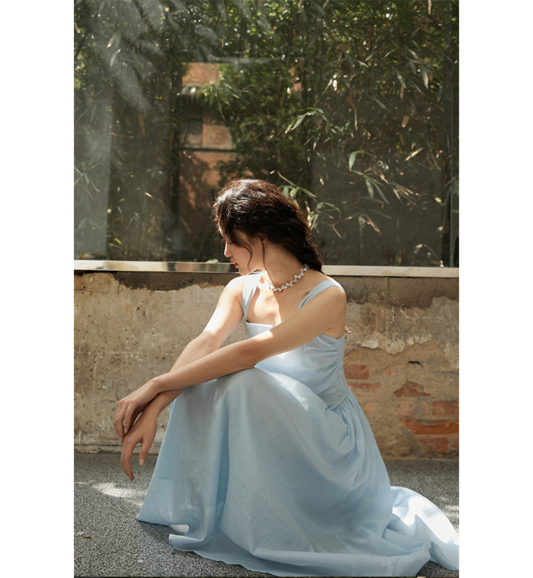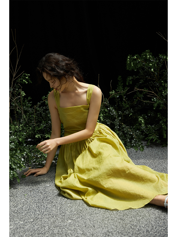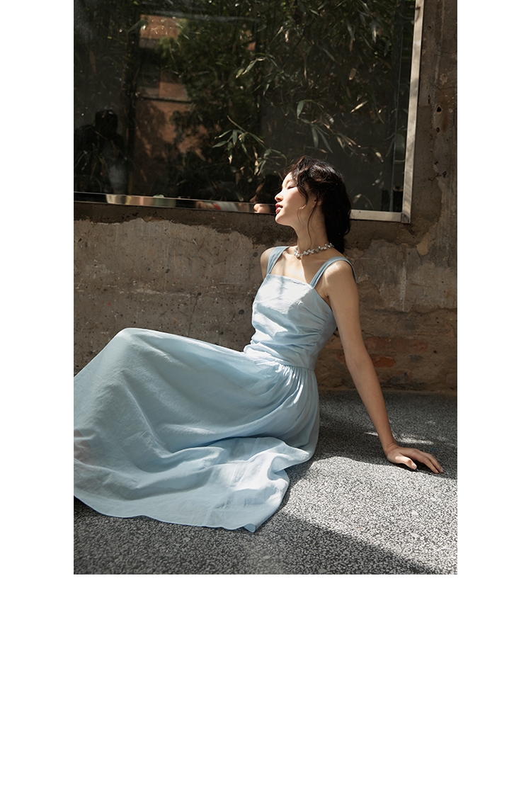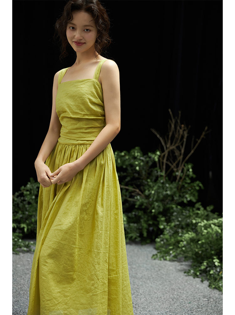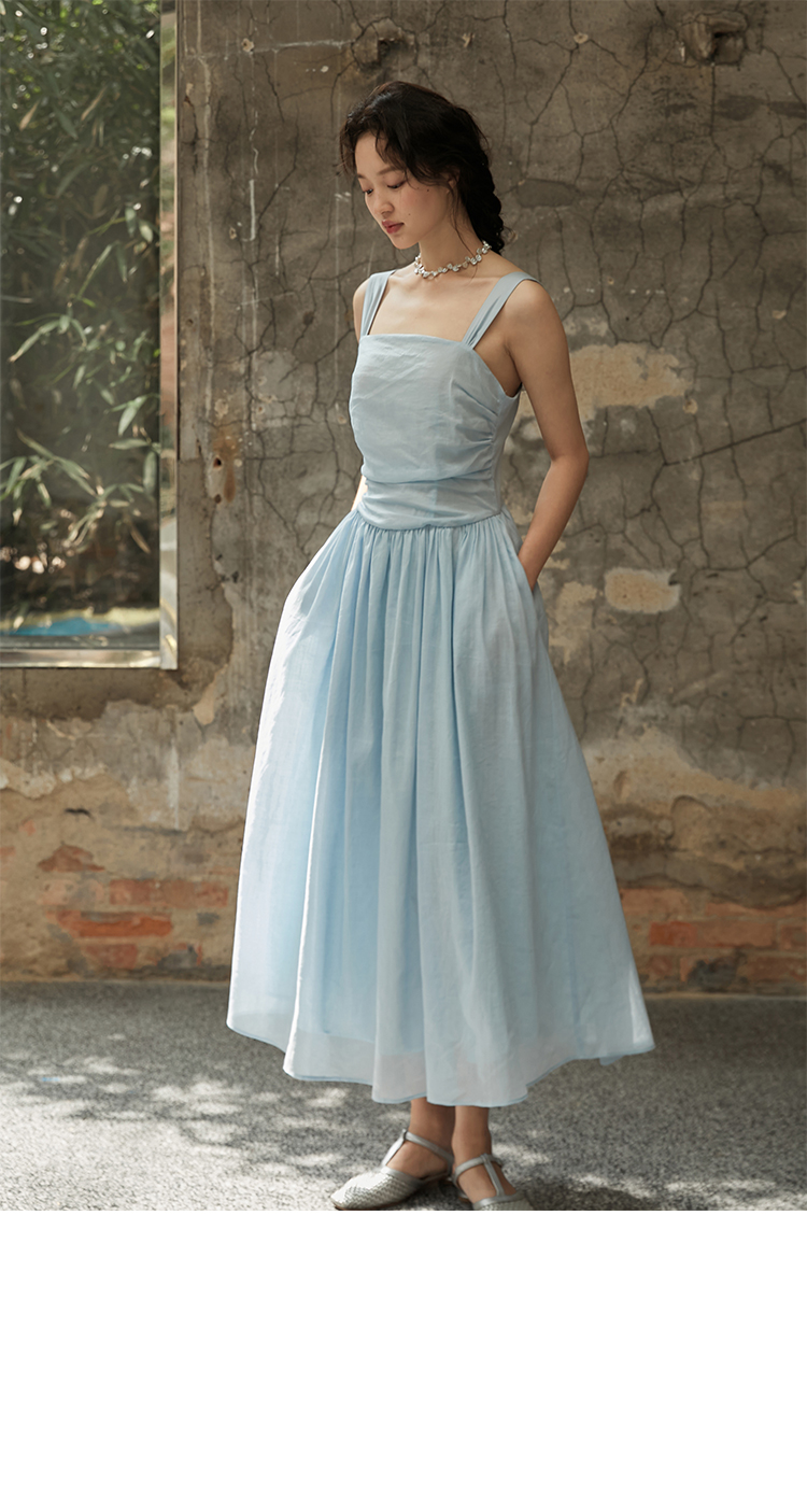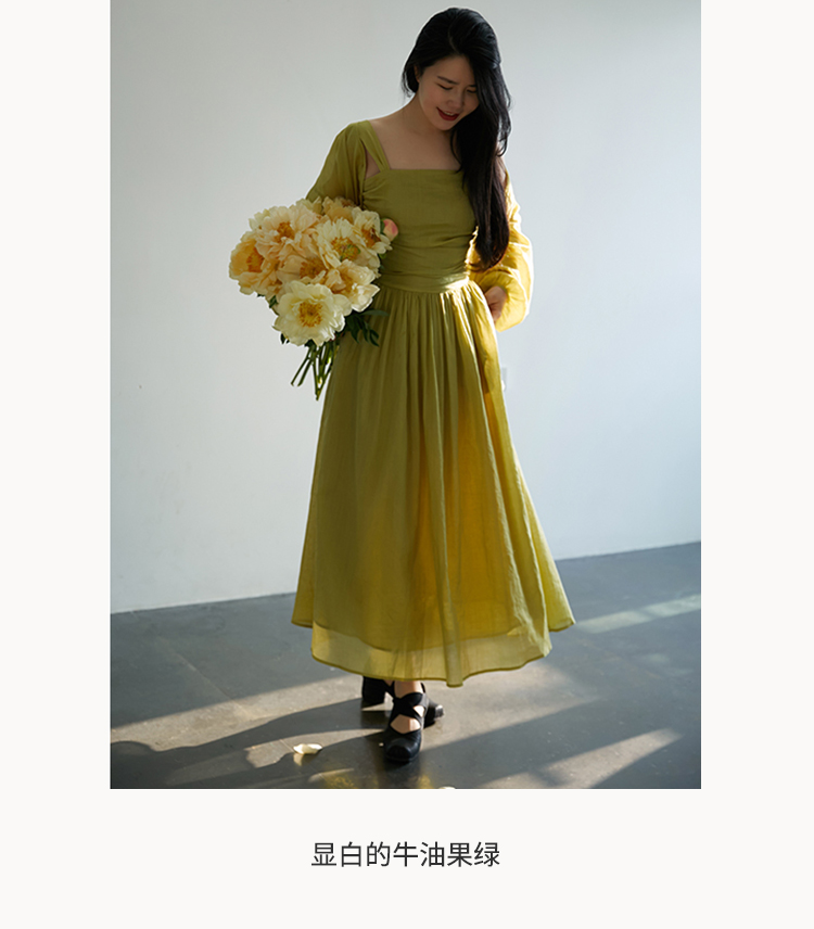 Asaya2154 : April in the world shows white ramie cotton suit retro arc waist line suspender skirt / small lantern sleeve shirt female