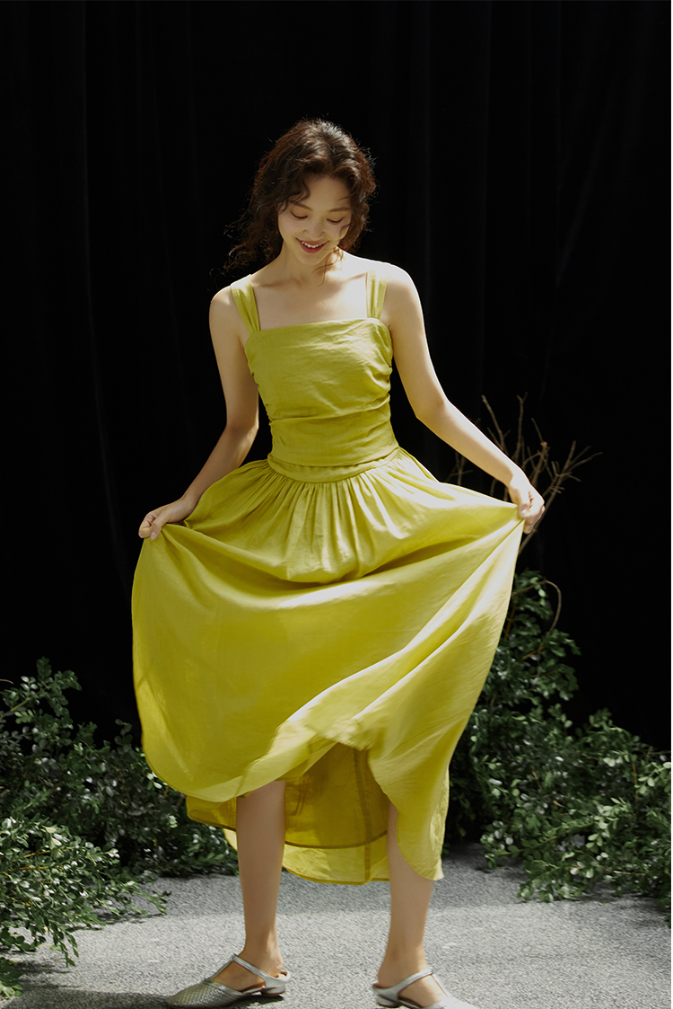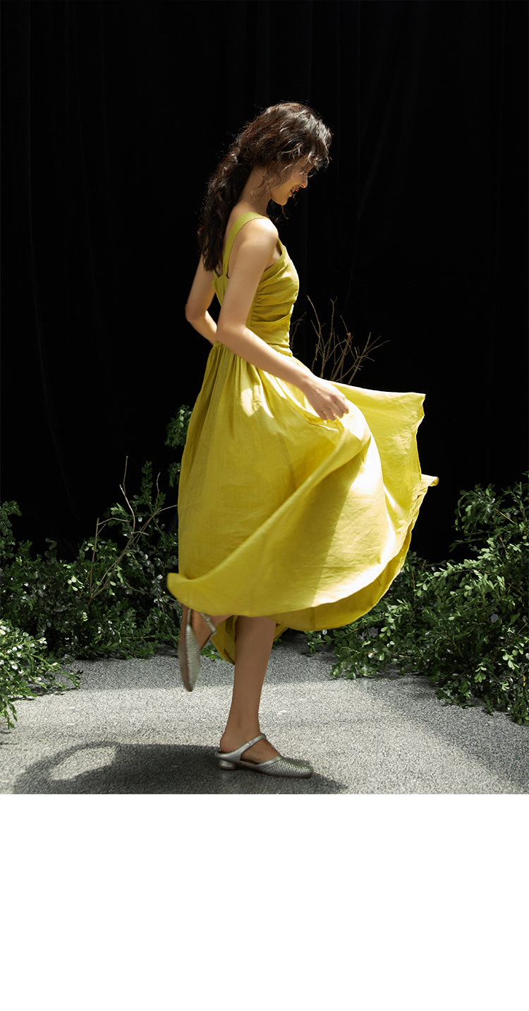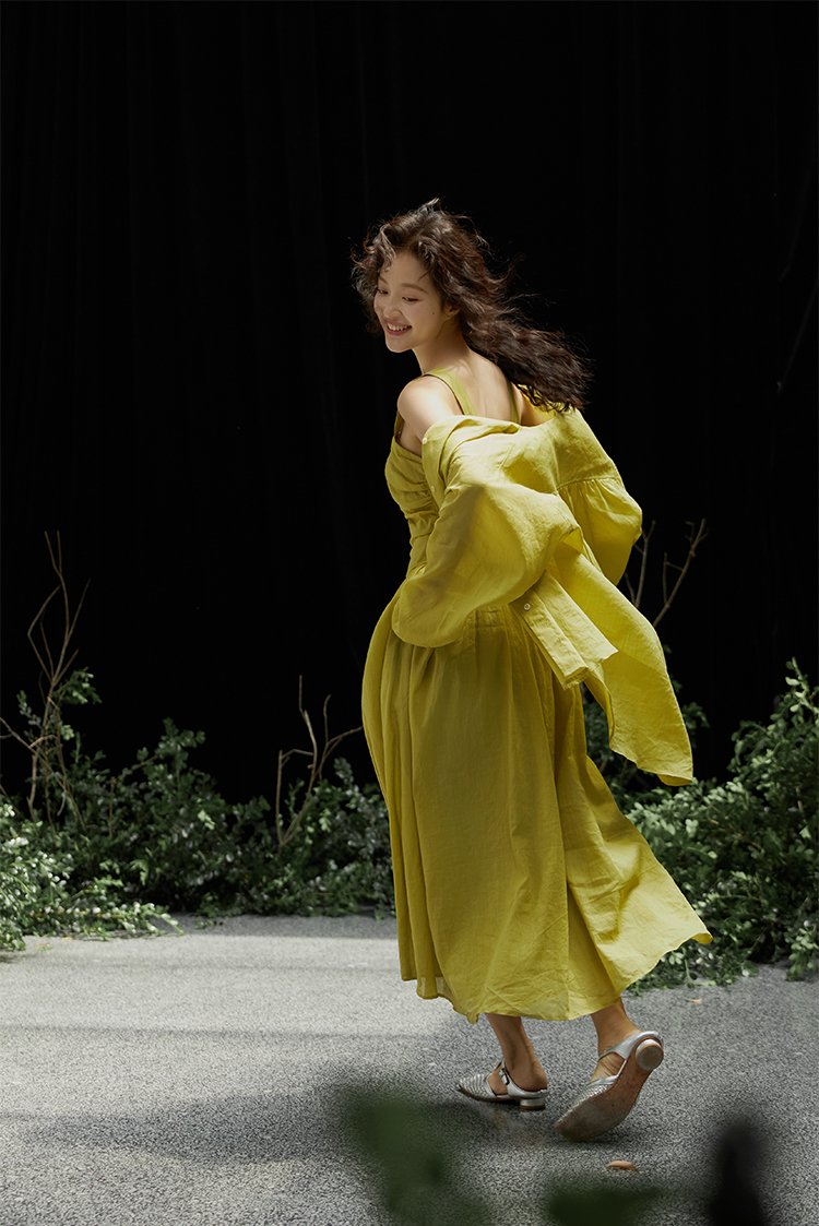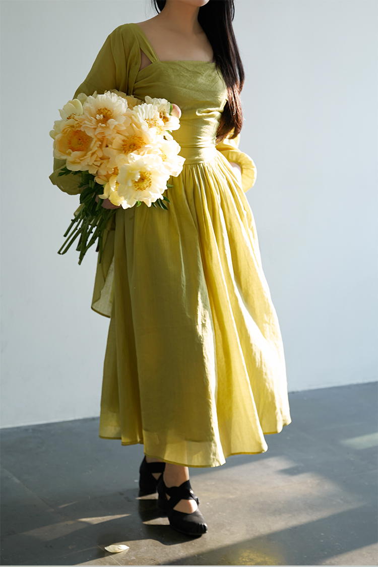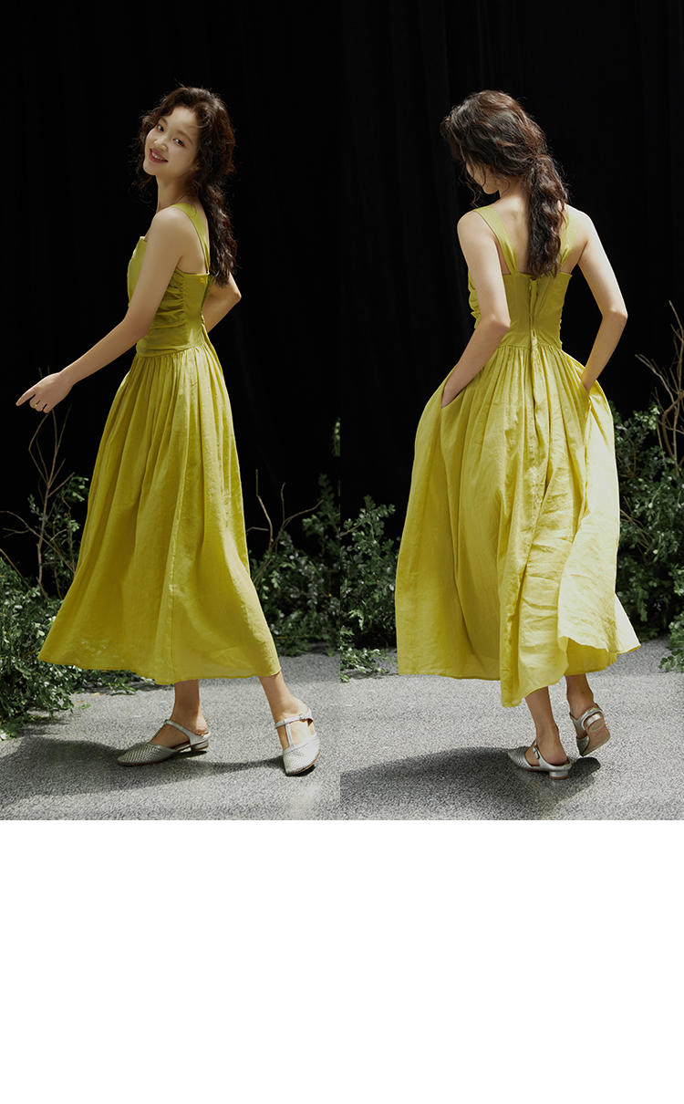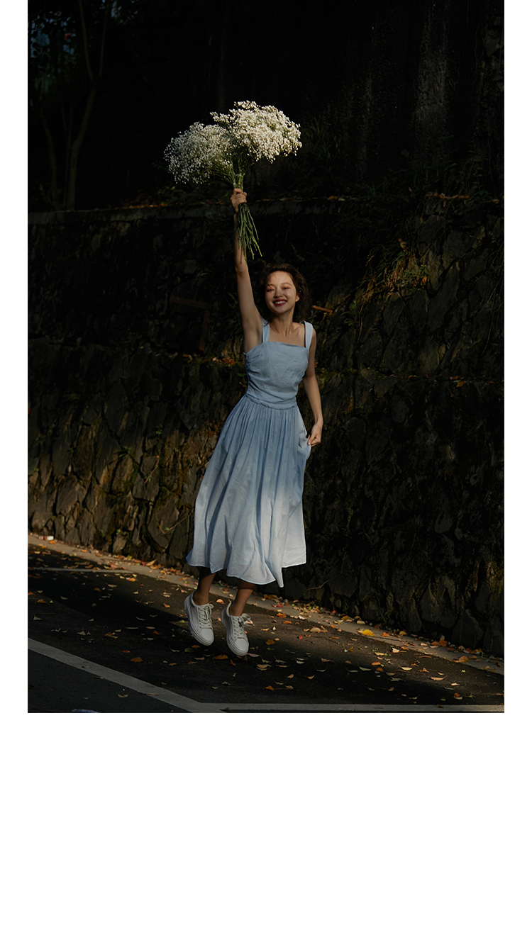 Asaya2154 : April in the world shows white ramie cotton suit retro arc waist line suspender skirt / small lantern sleeve shirt female