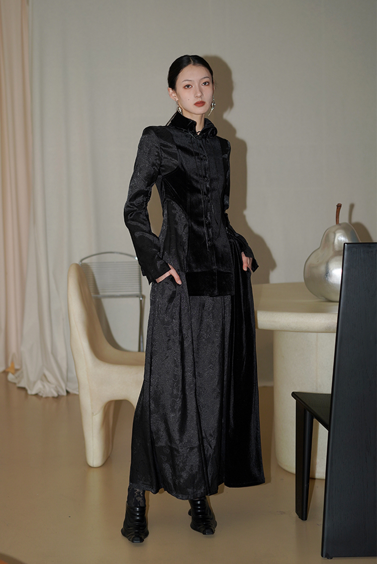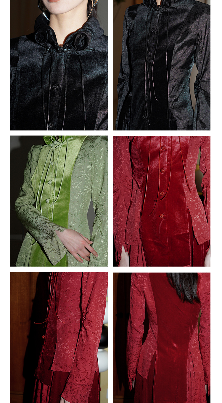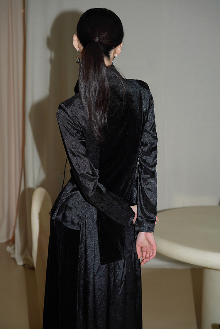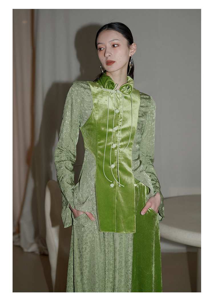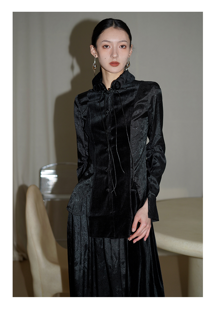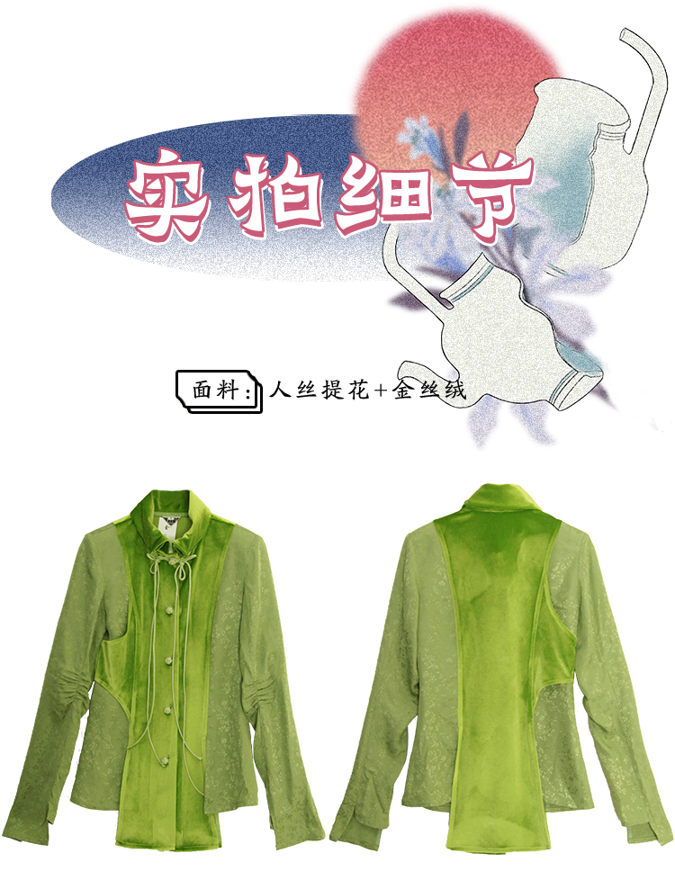 ASAYA1616 Bad taste Western New Chinese style design handmade buckle splicing slim fit shirt top