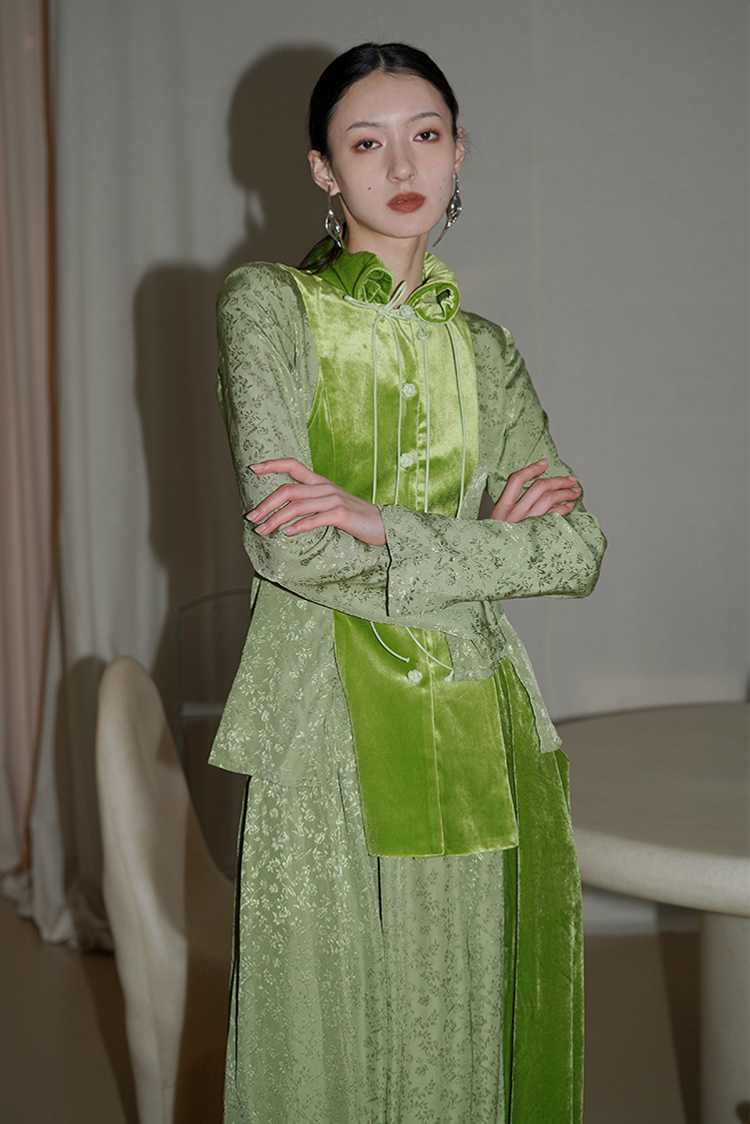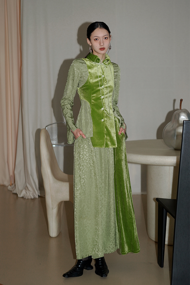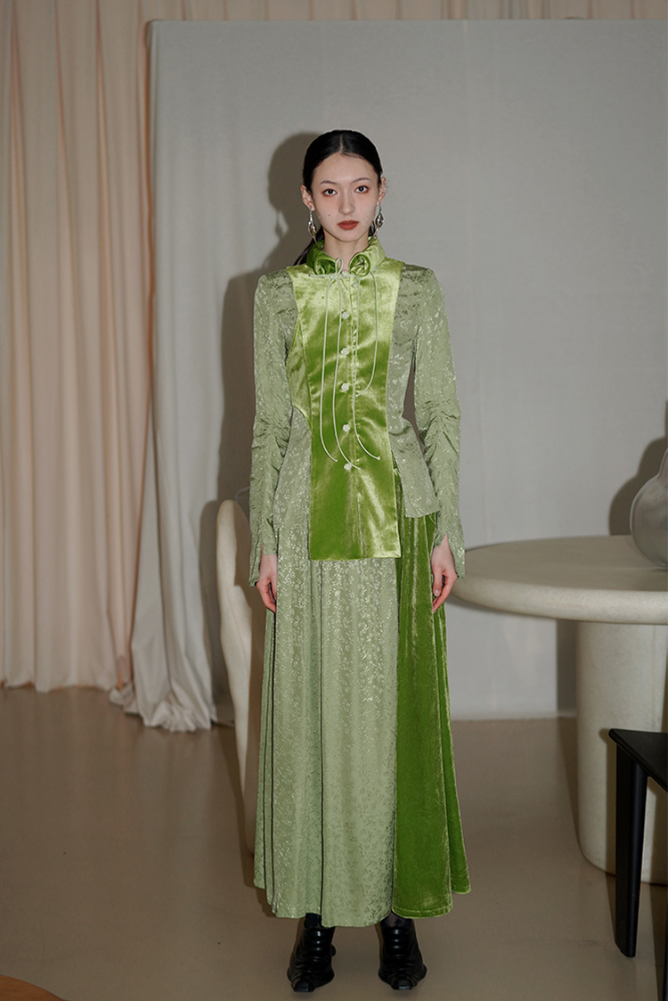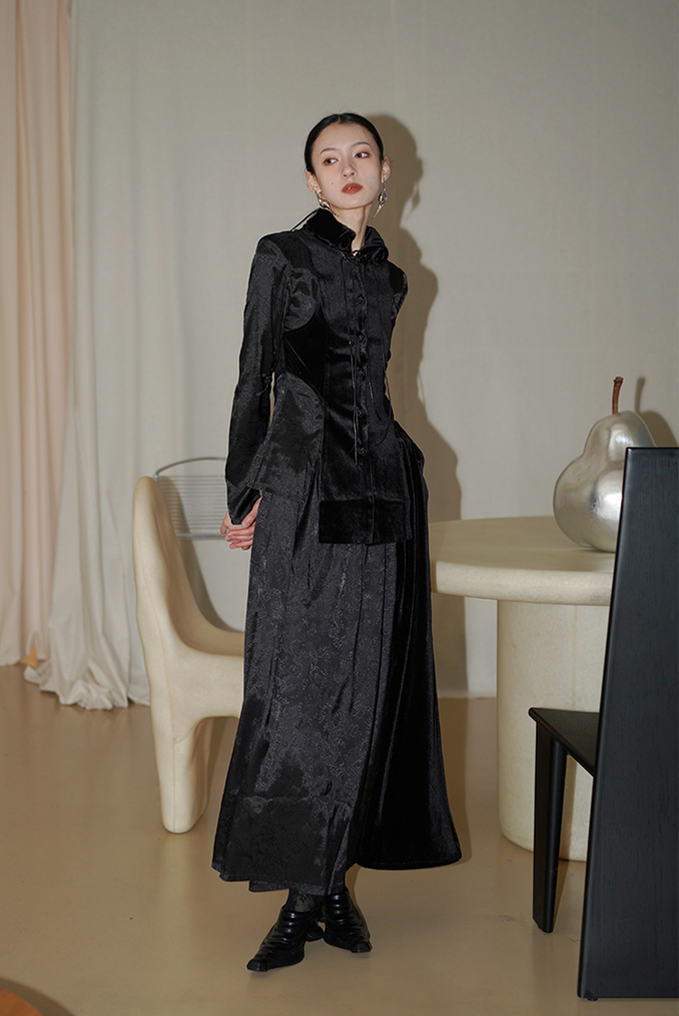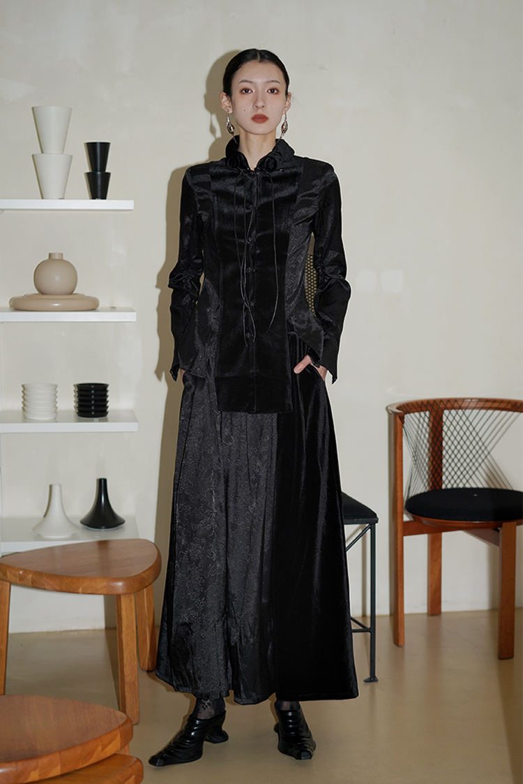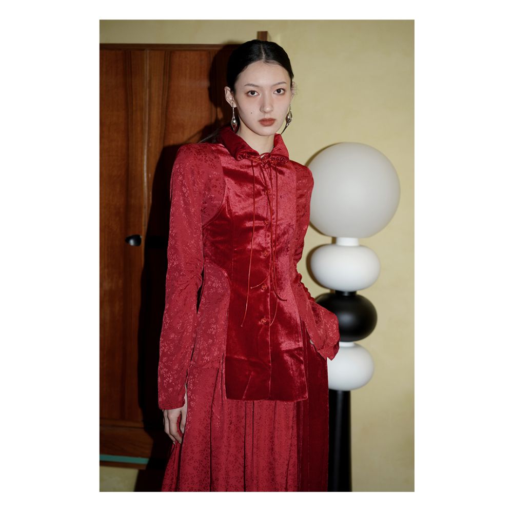 ASAYA1616 Bad taste Western New Chinese style design handmade buckle splicing slim fit shirt top