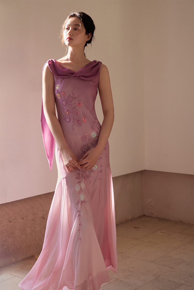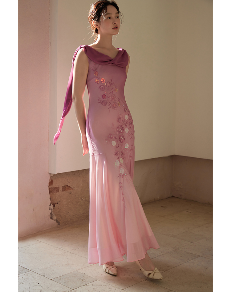 ASAYA4219 ✨ | Sequin Embroidery Gradient Gown 🌸💫