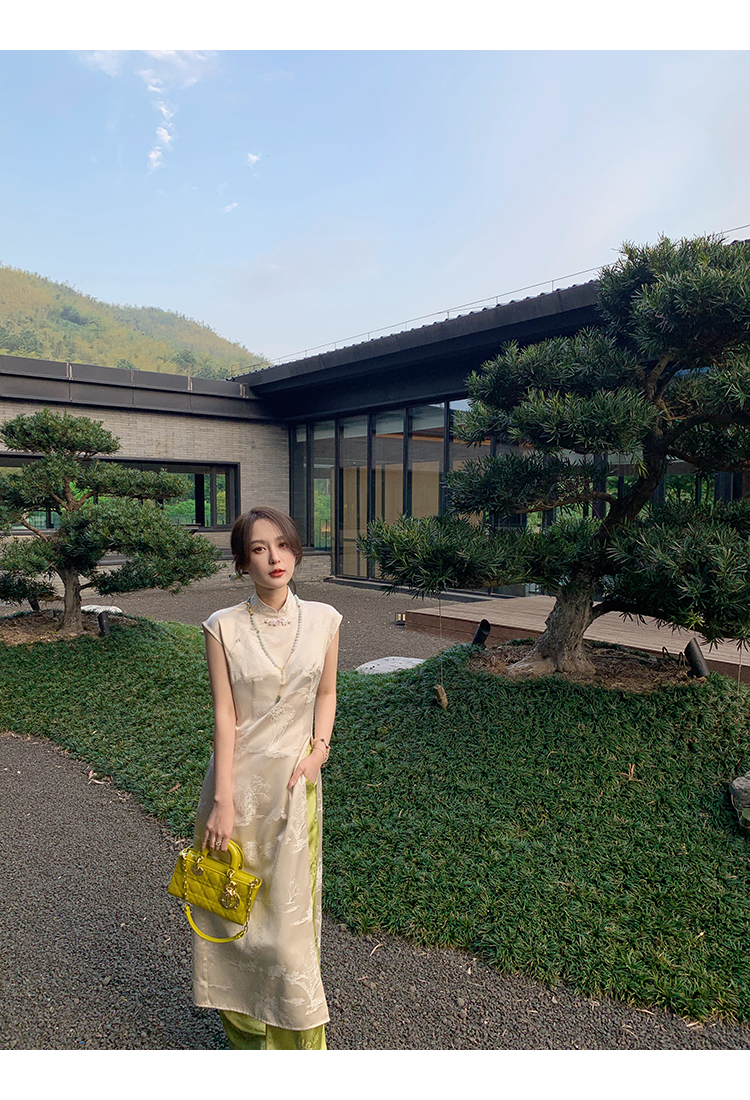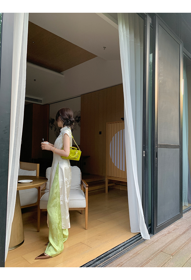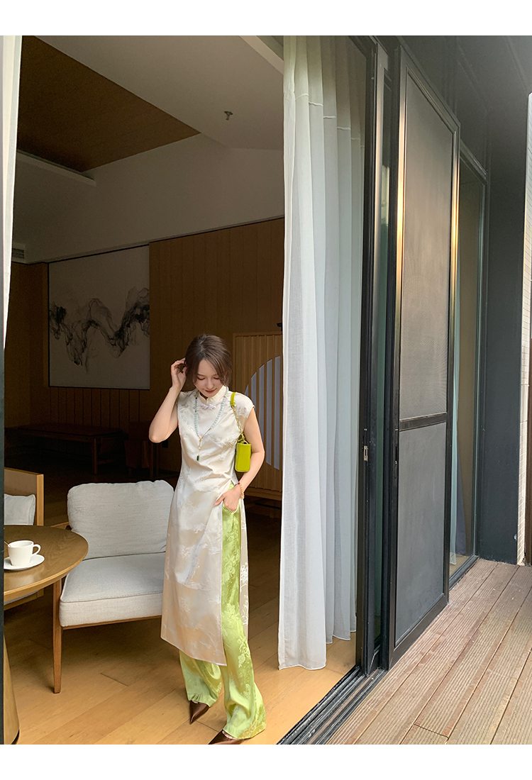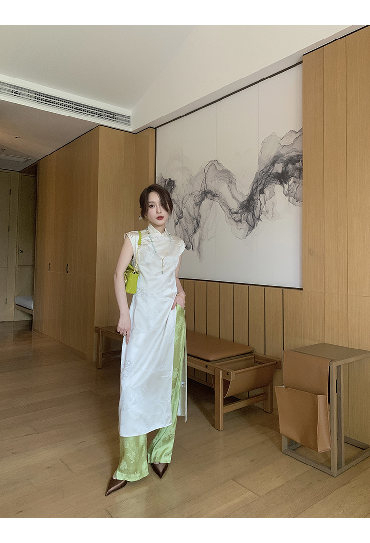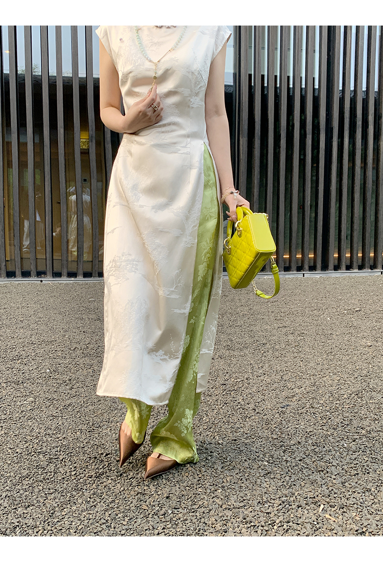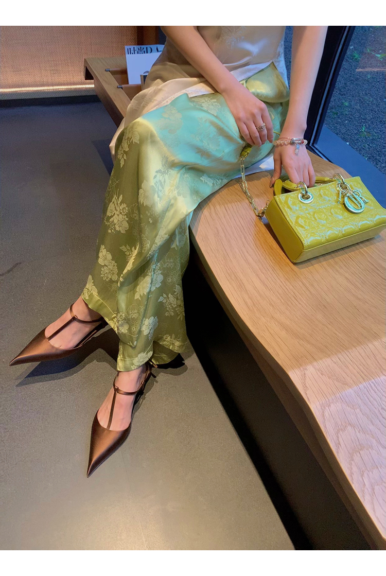 color classification | Temperament Apricot Dress Jade Green Jacquard Pants |
