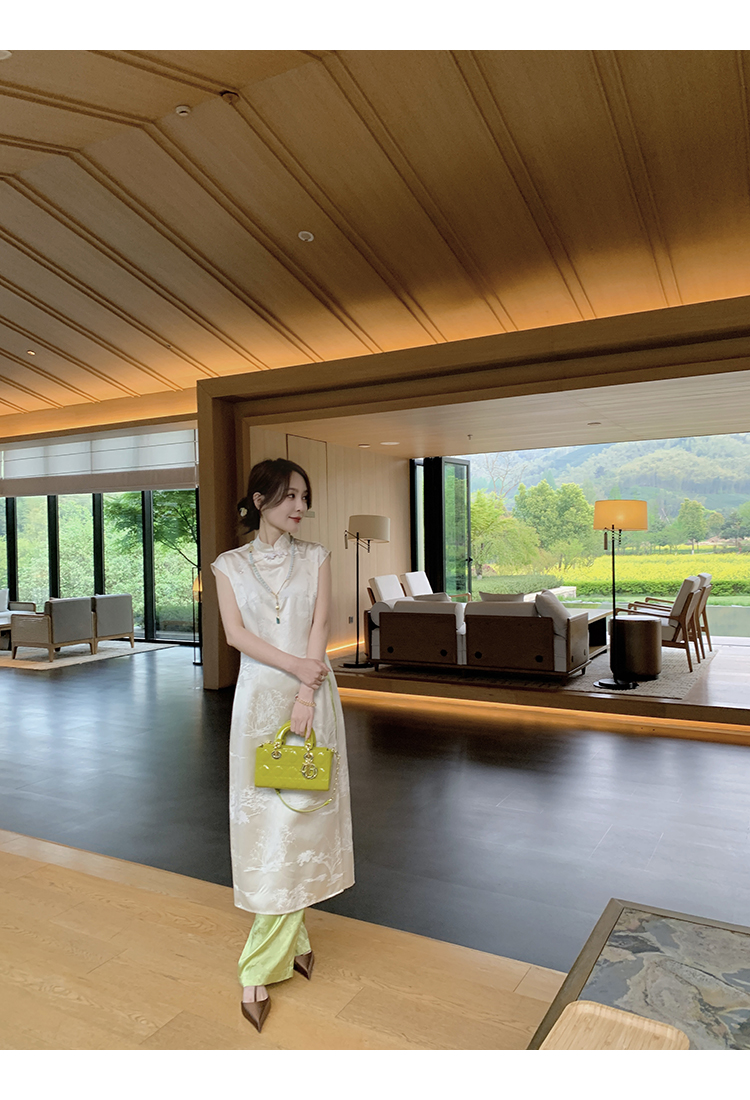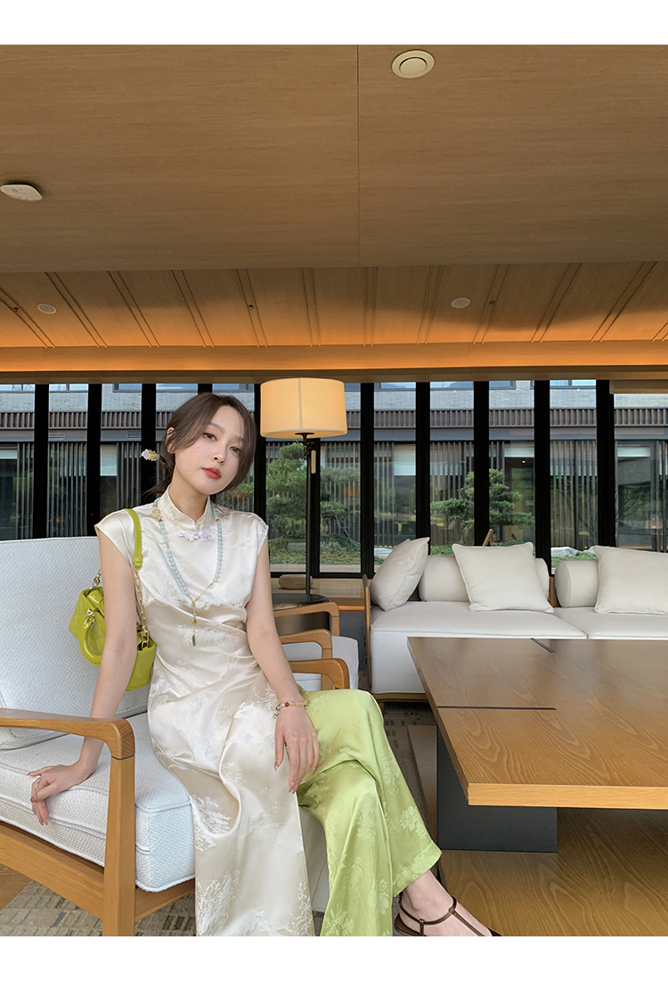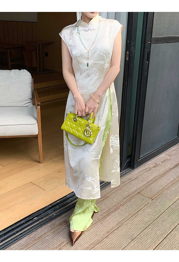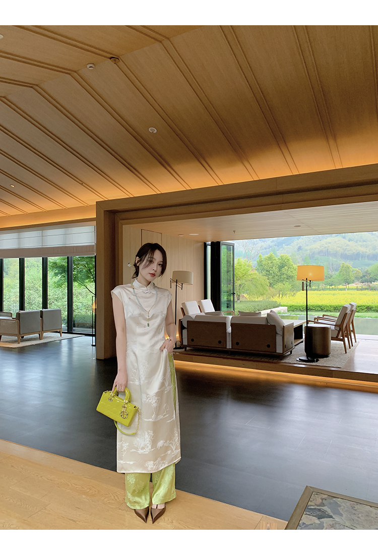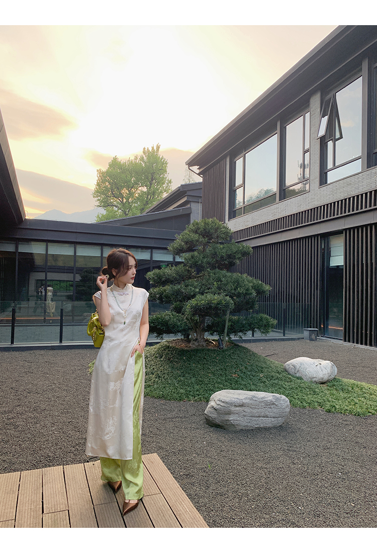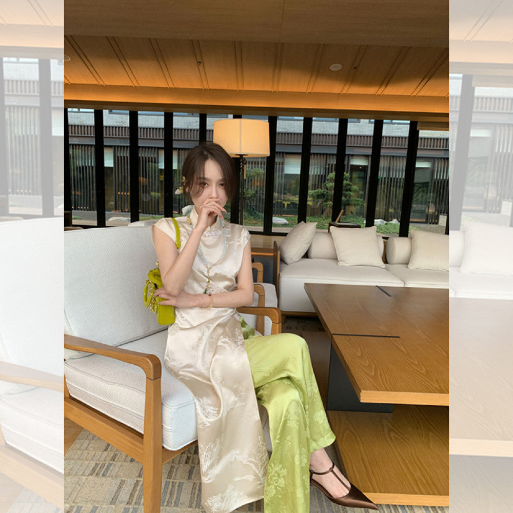color classification | Temperament Apricot Dress Jade Green Jacquard Pants |