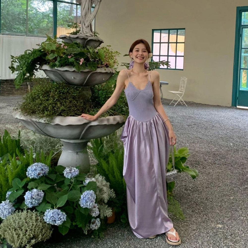 ASAYA2776 High-end light luxury niche party adult ceremony purple knitted splicing suspender dress