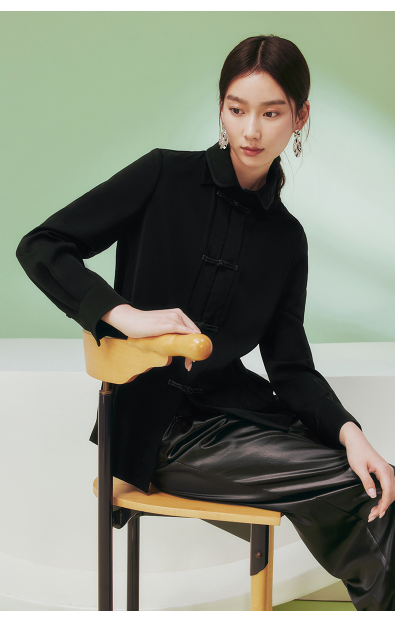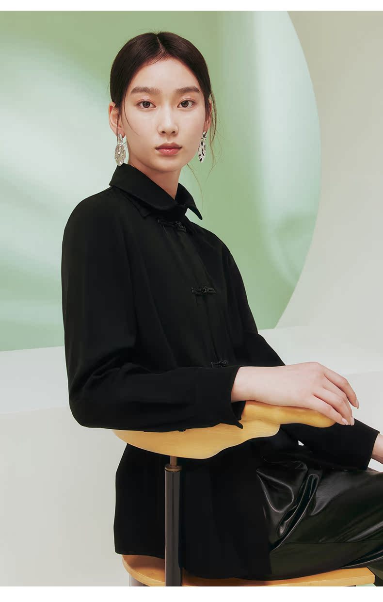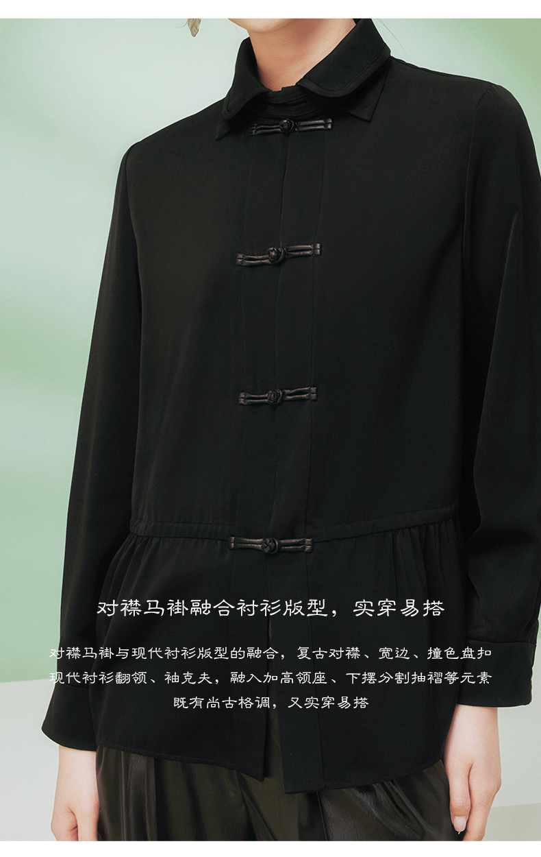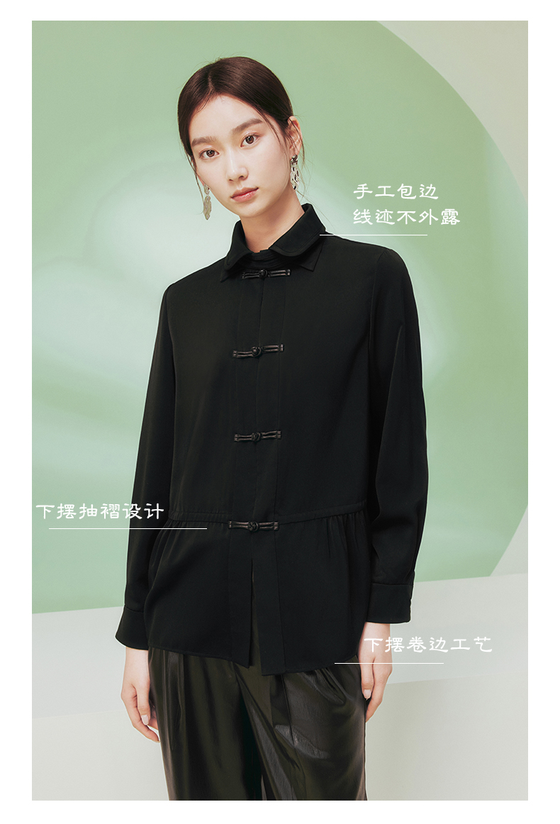 ASAYA1681 Blogger s same flower and tree deep buttoned shirt women s long sleeved new Chinese style improved Tang style top women s black shirt