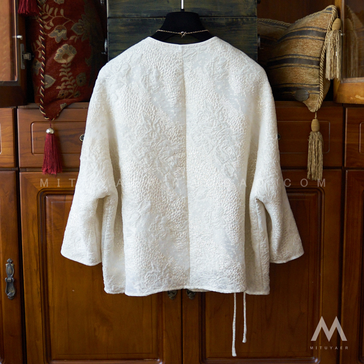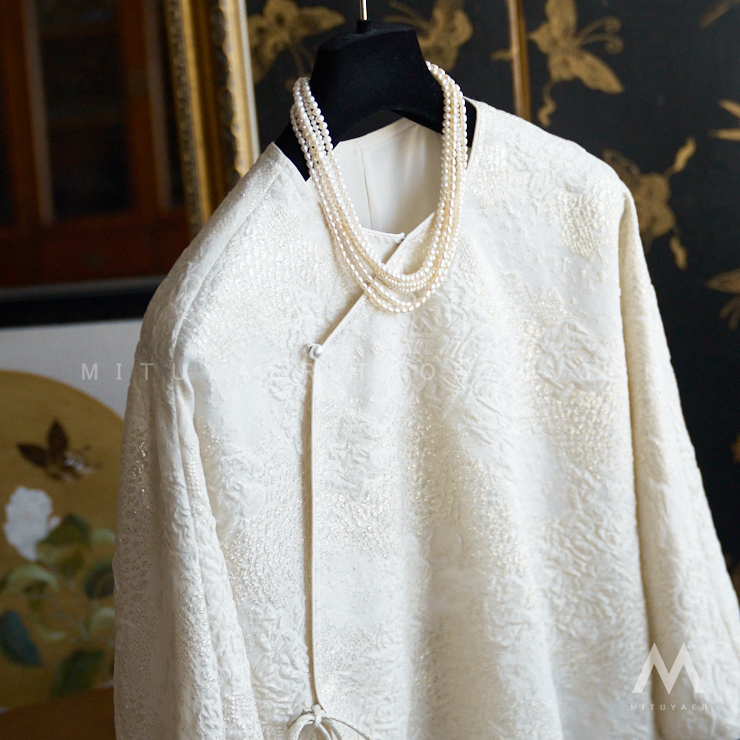 Asaya1356 - Blooming flowers falling shadows luxurious beauty noble atmosphere heavy industry gold wire relief 3D three dimensional jacquard mulberry silk top jacket U0203