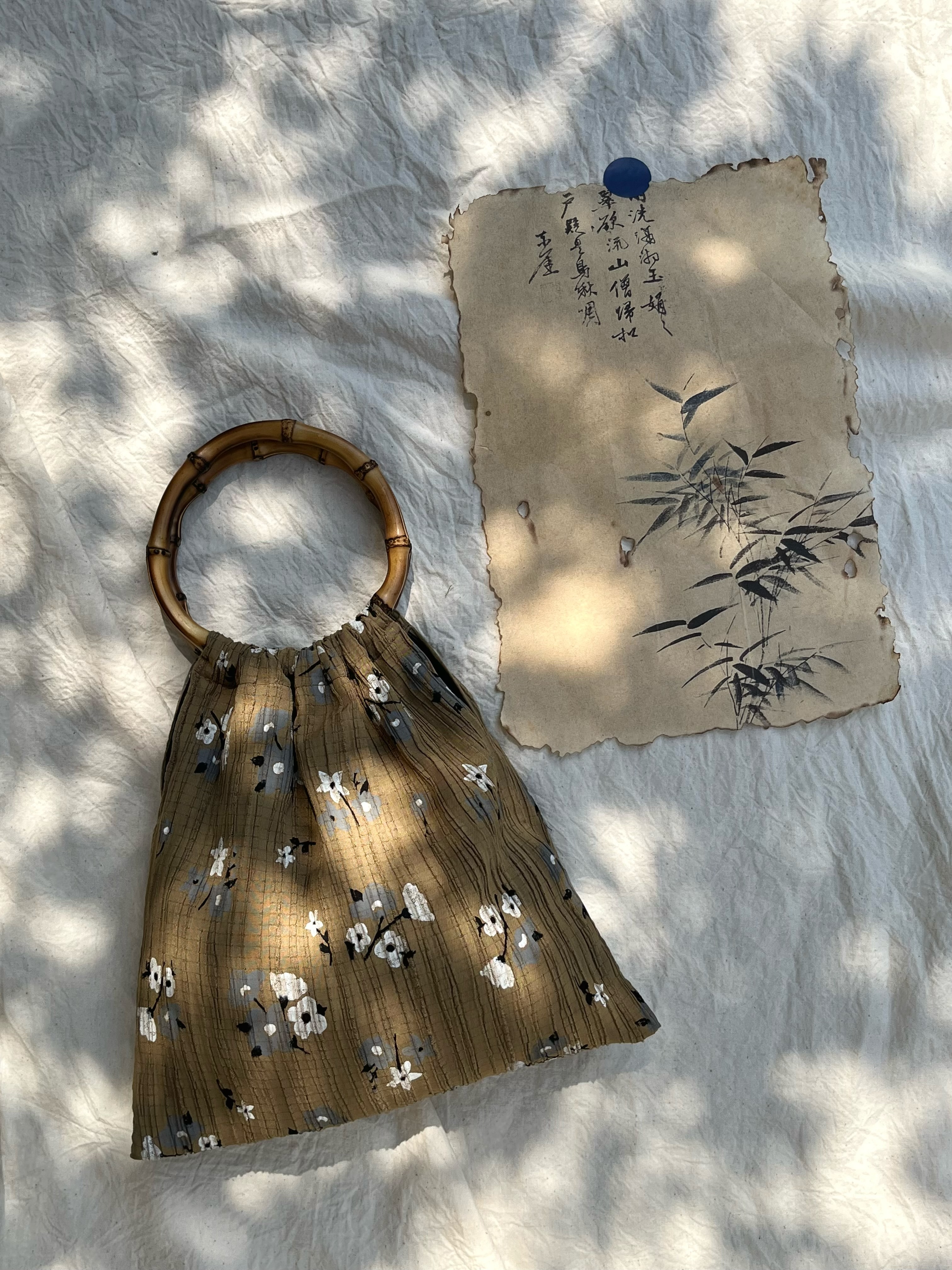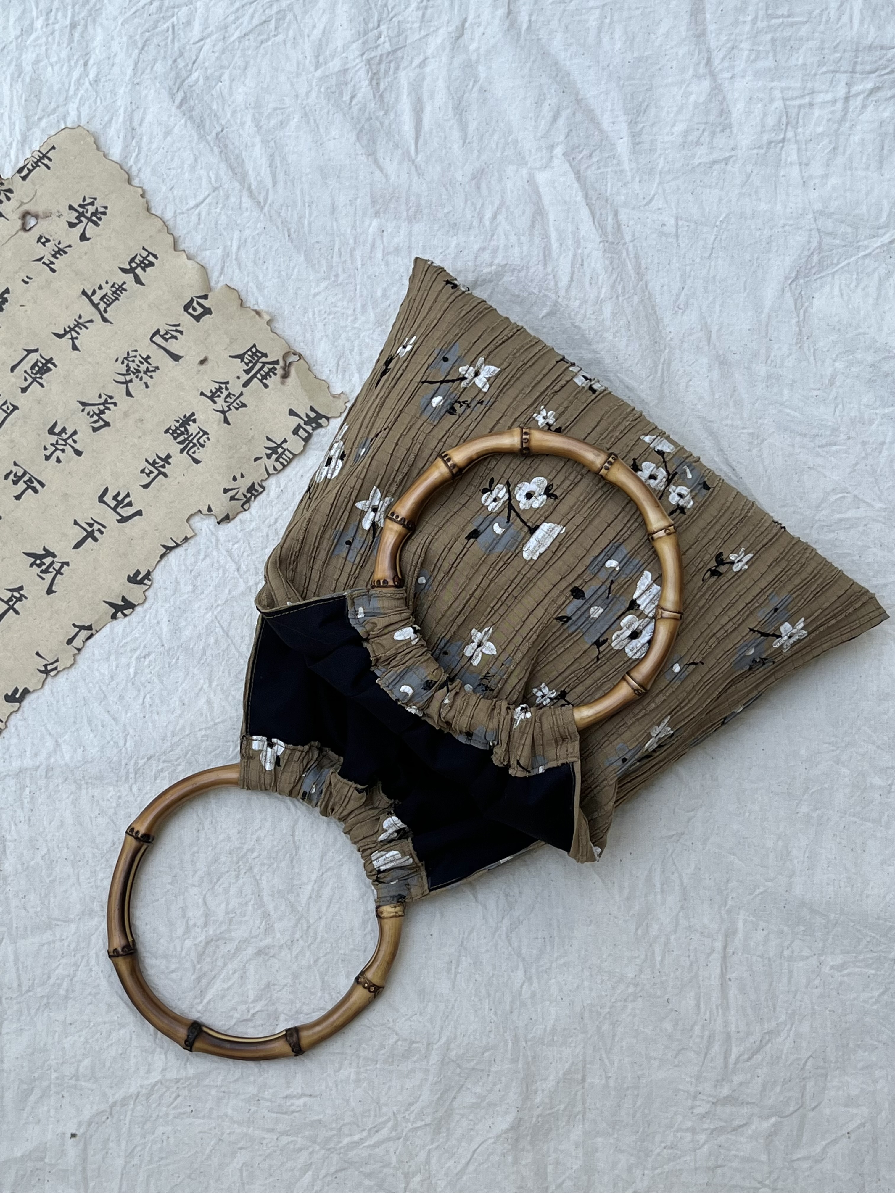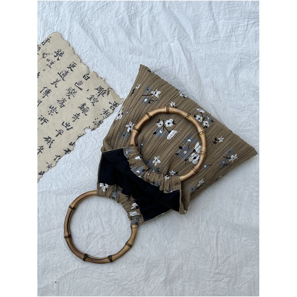 Asaya869 - Blue Cottage Peach Latte Chinese Fold Texture Retro Style Natural Bamboo Knot Tote Bag