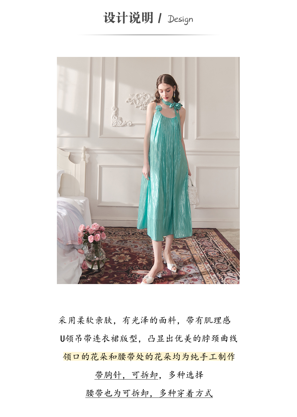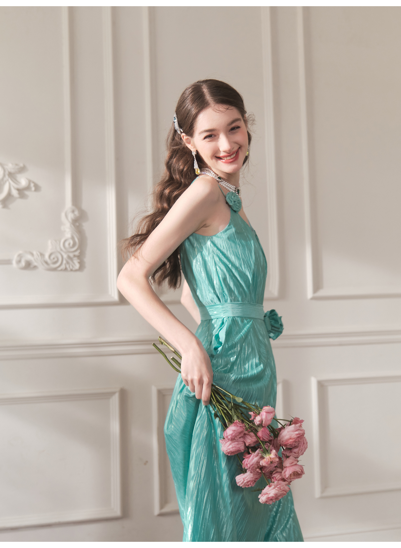 ASAYA2332 Blue Mermaid Romantic and luxurious U-neck suspender dress