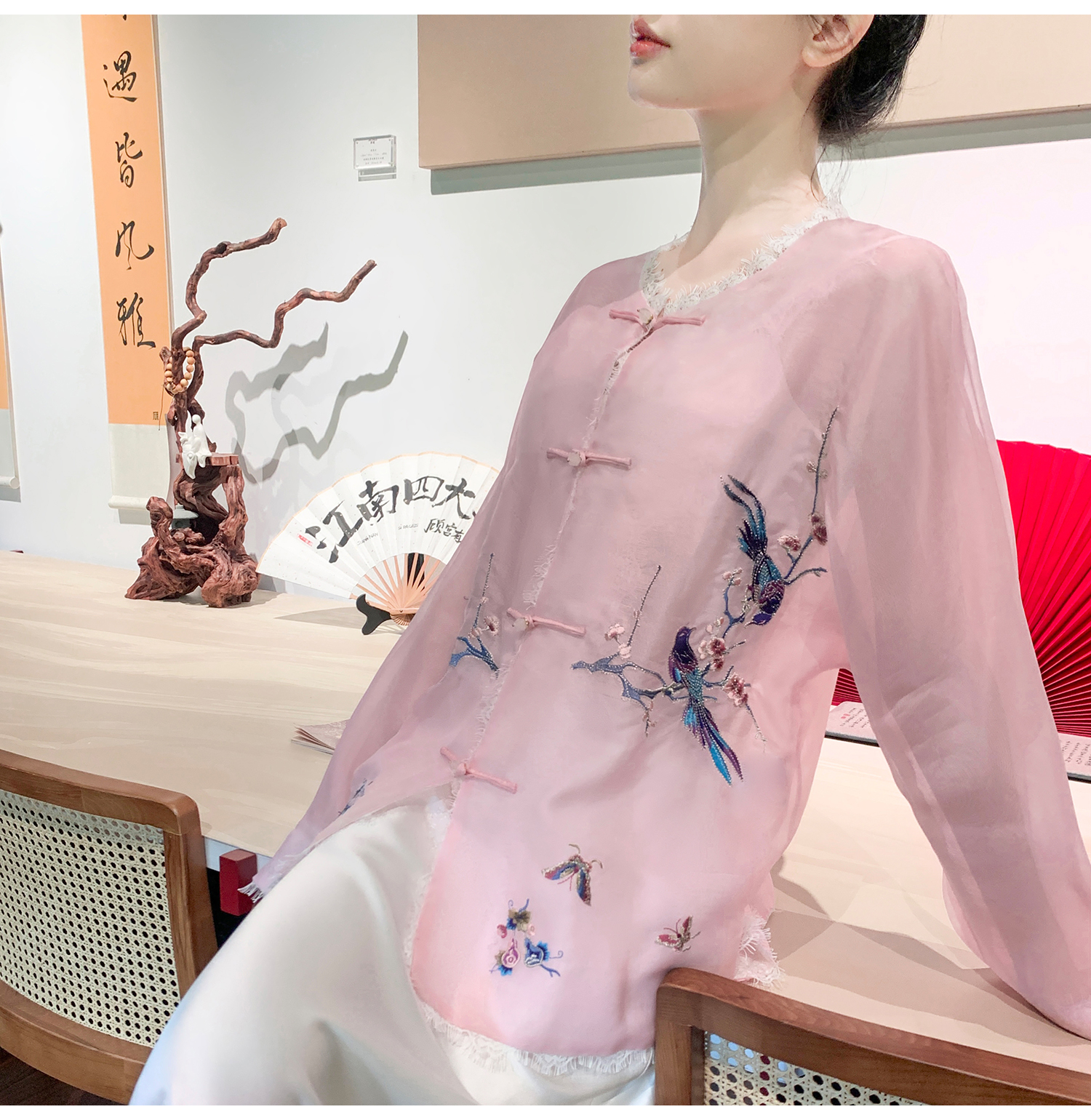 ASAYA2340 Happiness on the Branch Heavy New Chinese Style National Style Mulberry Silk Jacket Long sleeve