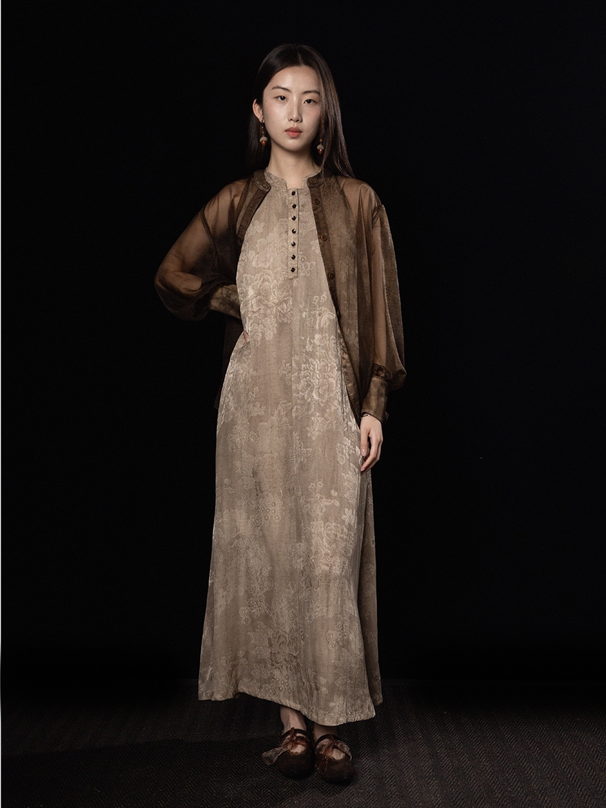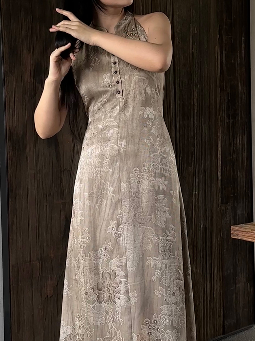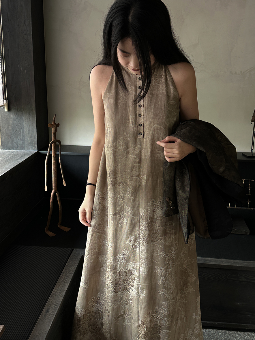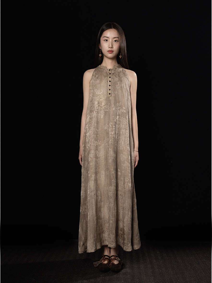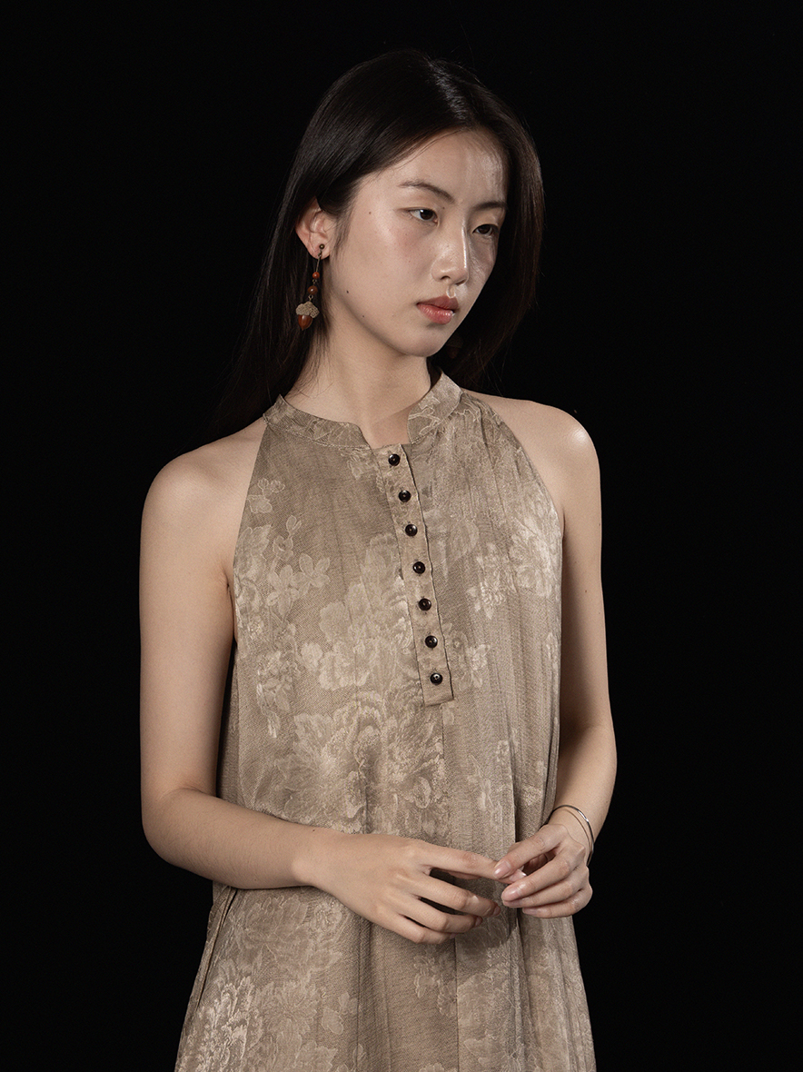 ASAYA3343 Wabi-sabi style new Chinese style stand-up collar jacquard linen off-shoulder dress
