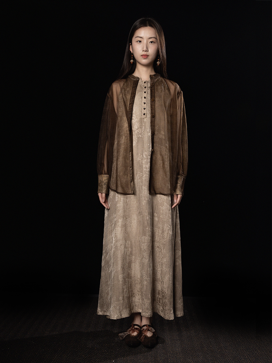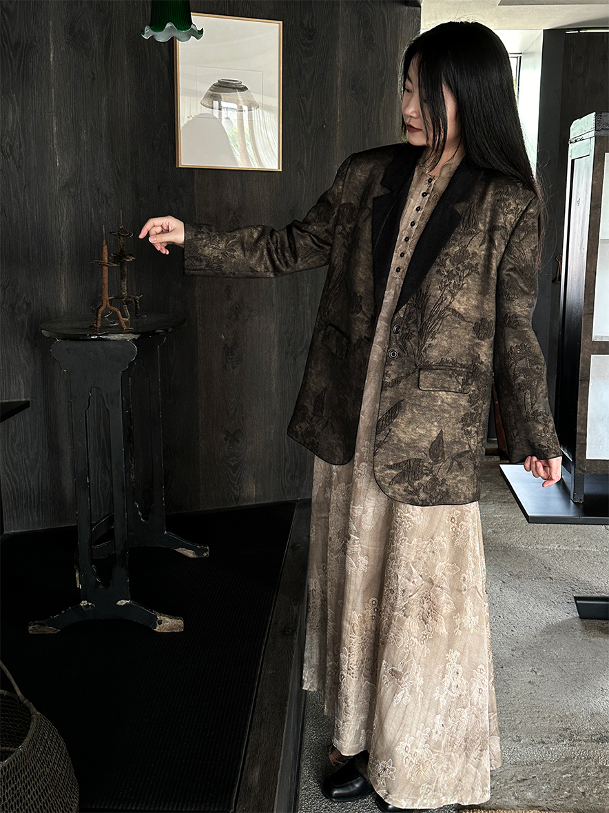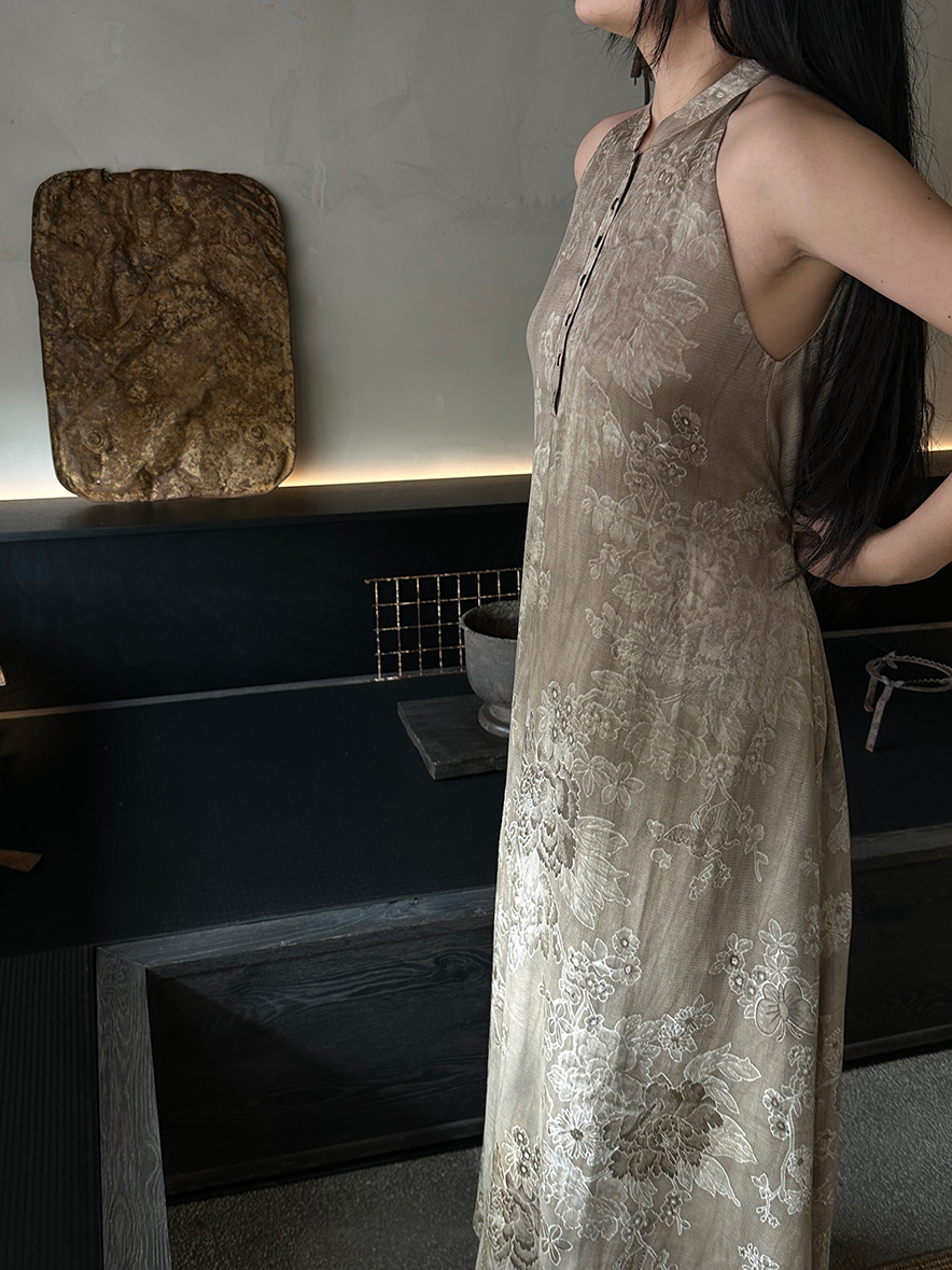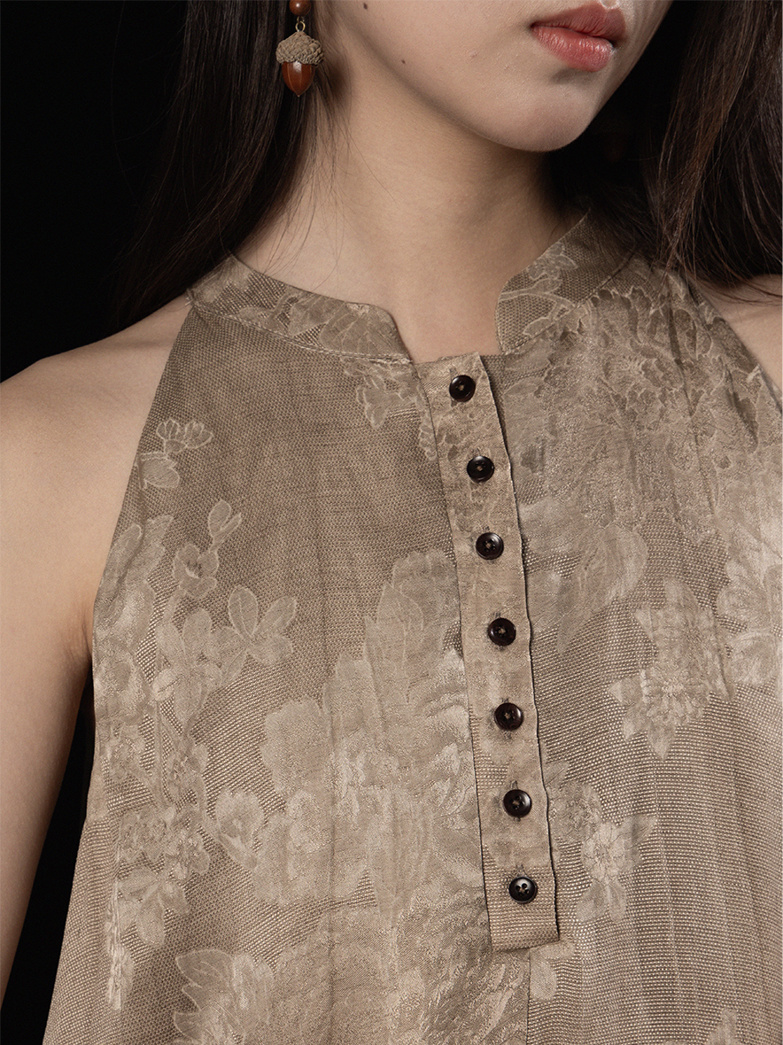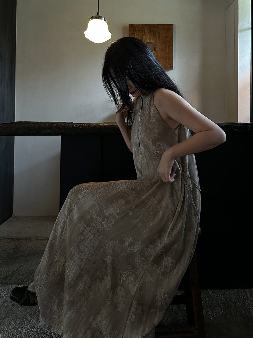 ASAYA3343 Wabi-sabi style new Chinese style stand-up collar jacquard linen off-shoulder dress