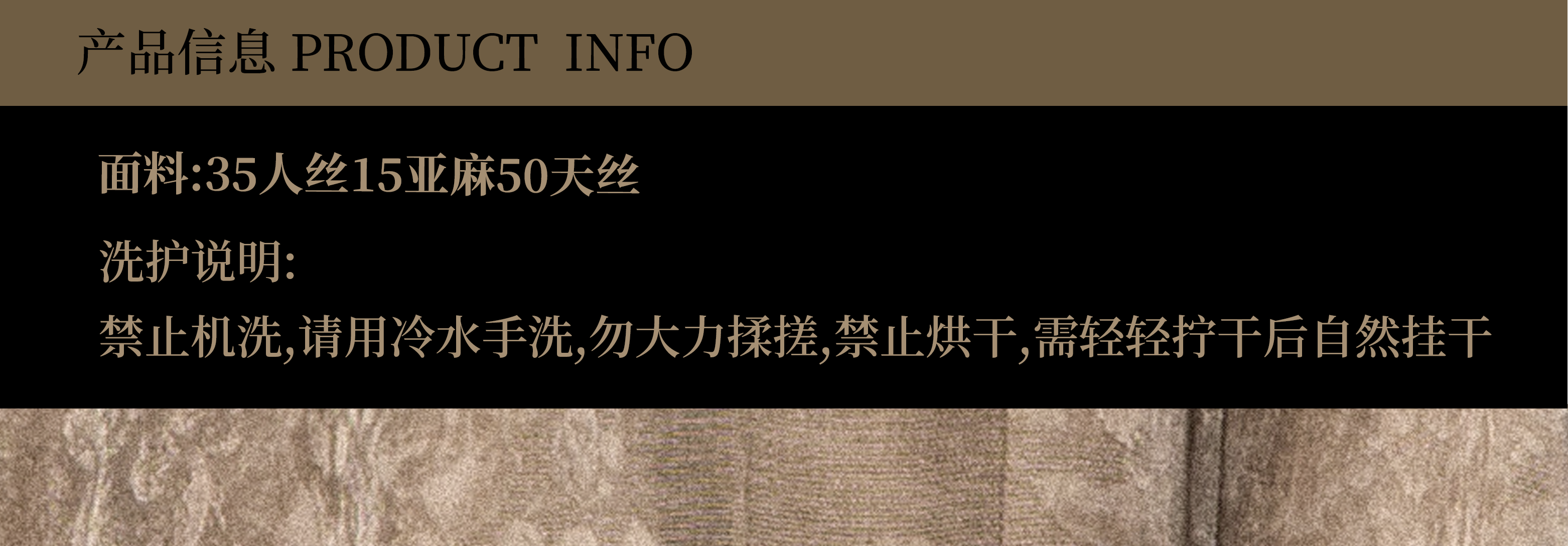 Material composition | Regenerated cellulose fiber 50% viscose fiber (viscose fiber) 35% linen 15% |