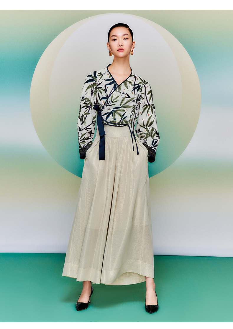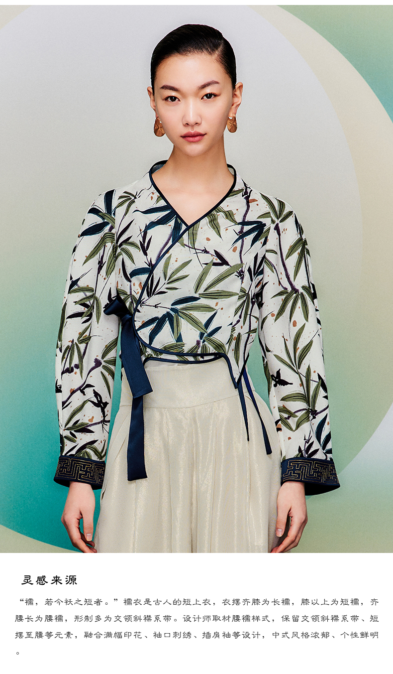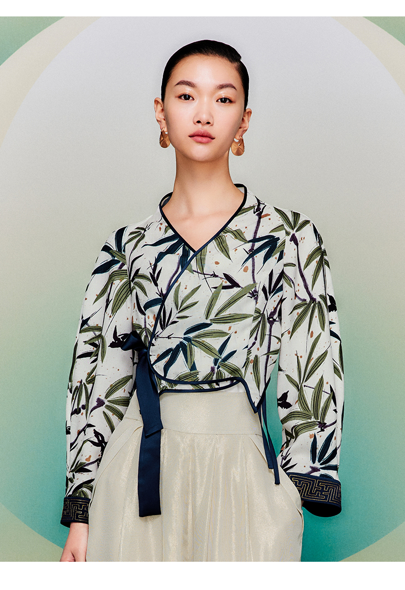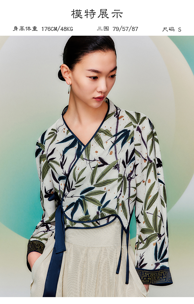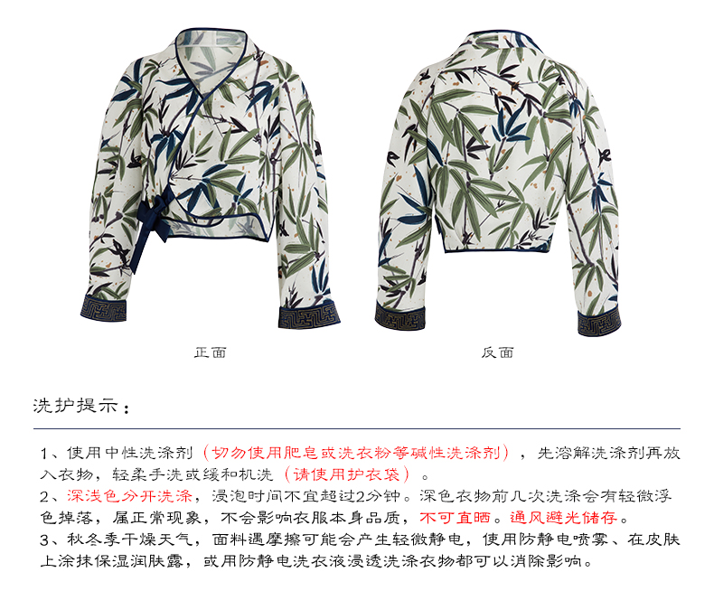 Asaya1317 - Celebrity style flower and tree deep vinegar Chinese style bamboo leaf top Chinese style improved Hanfu diagonal collar women s coat