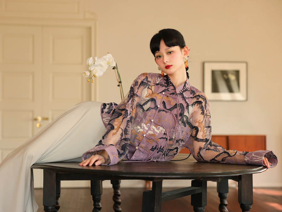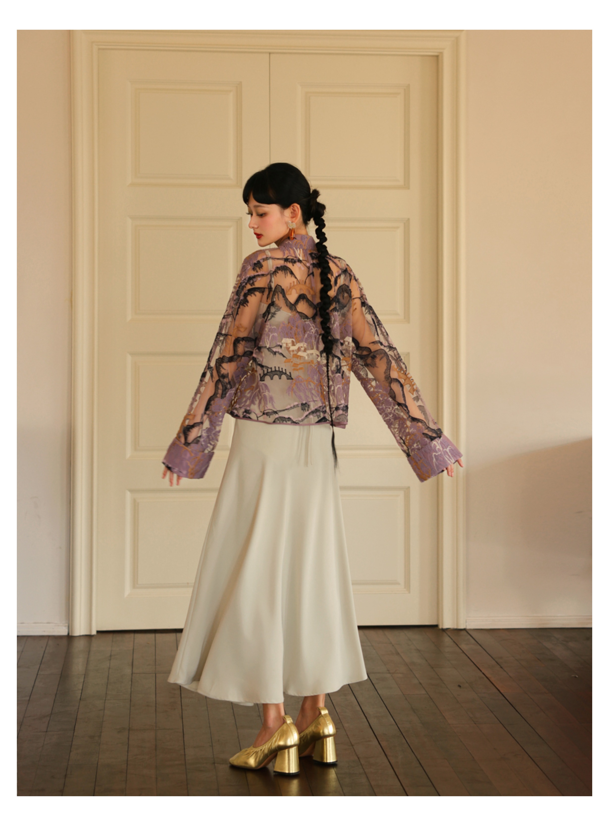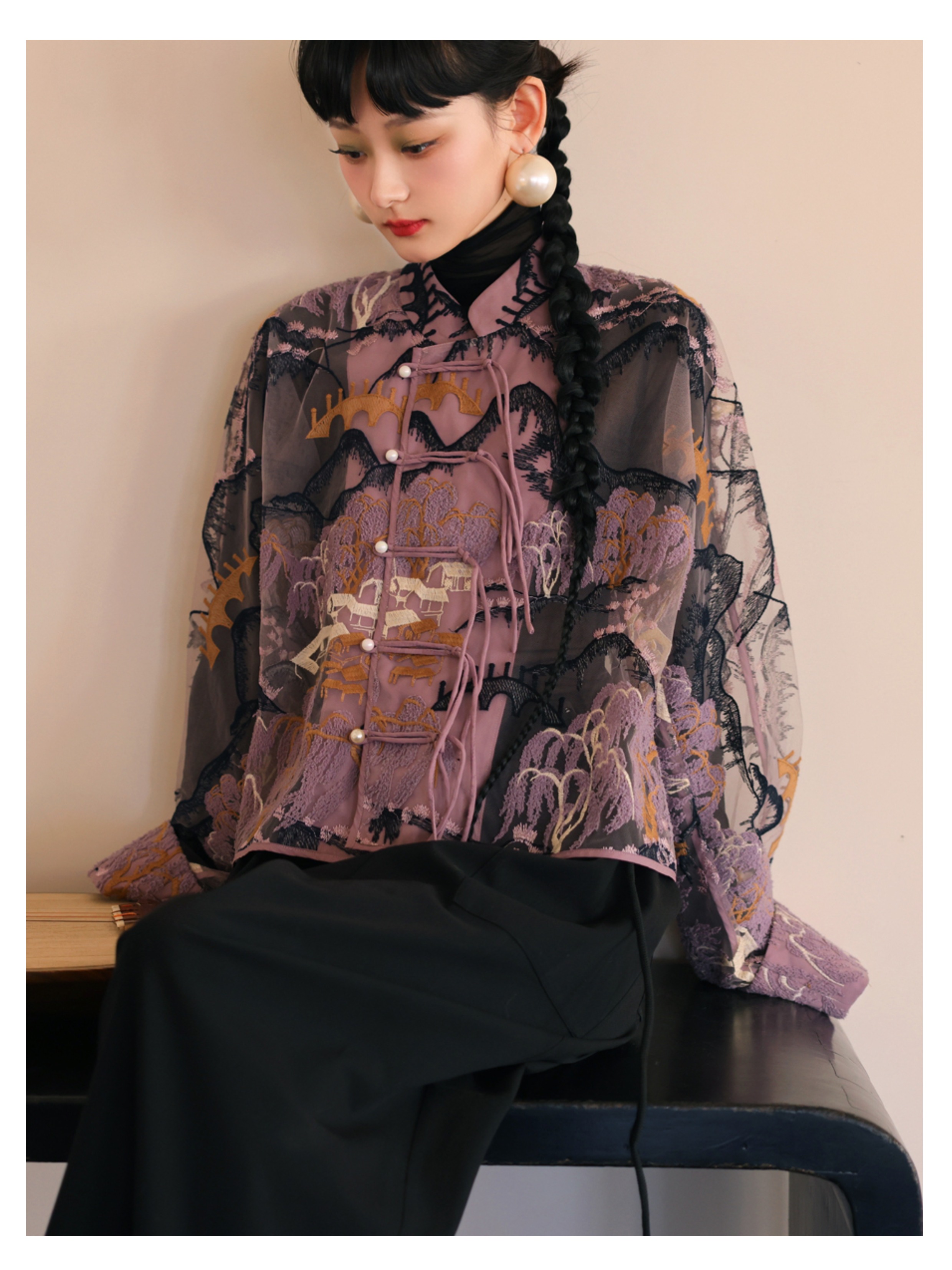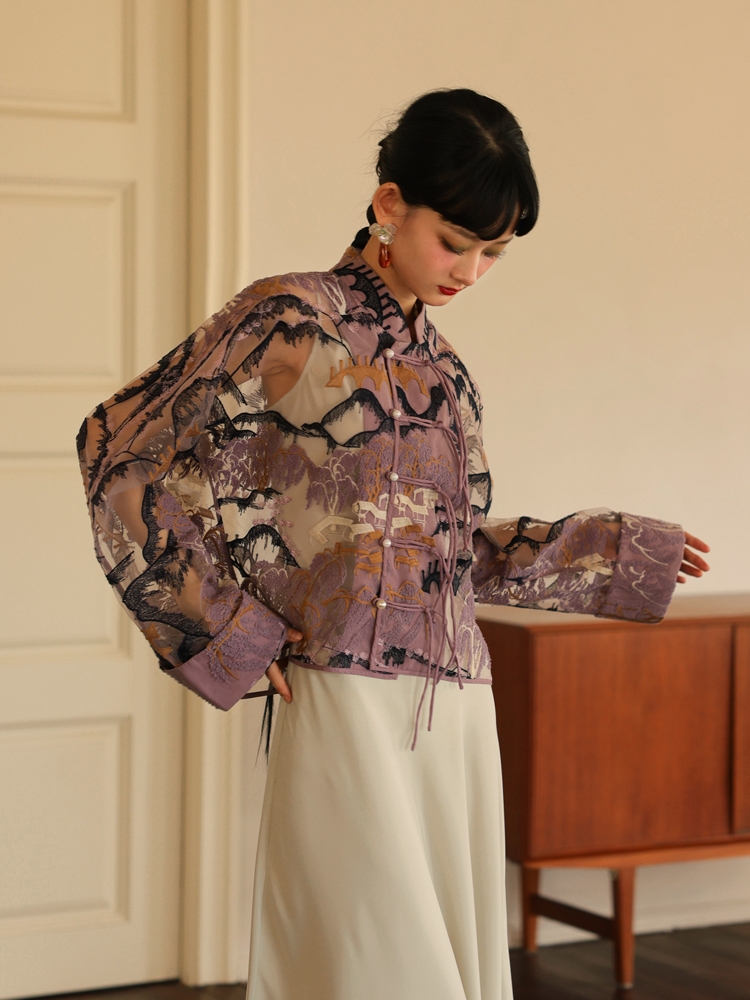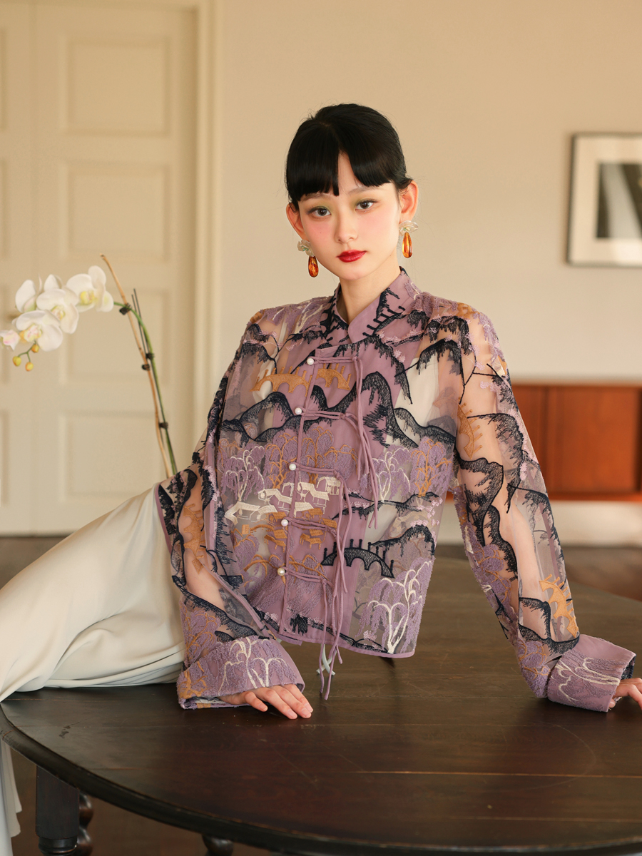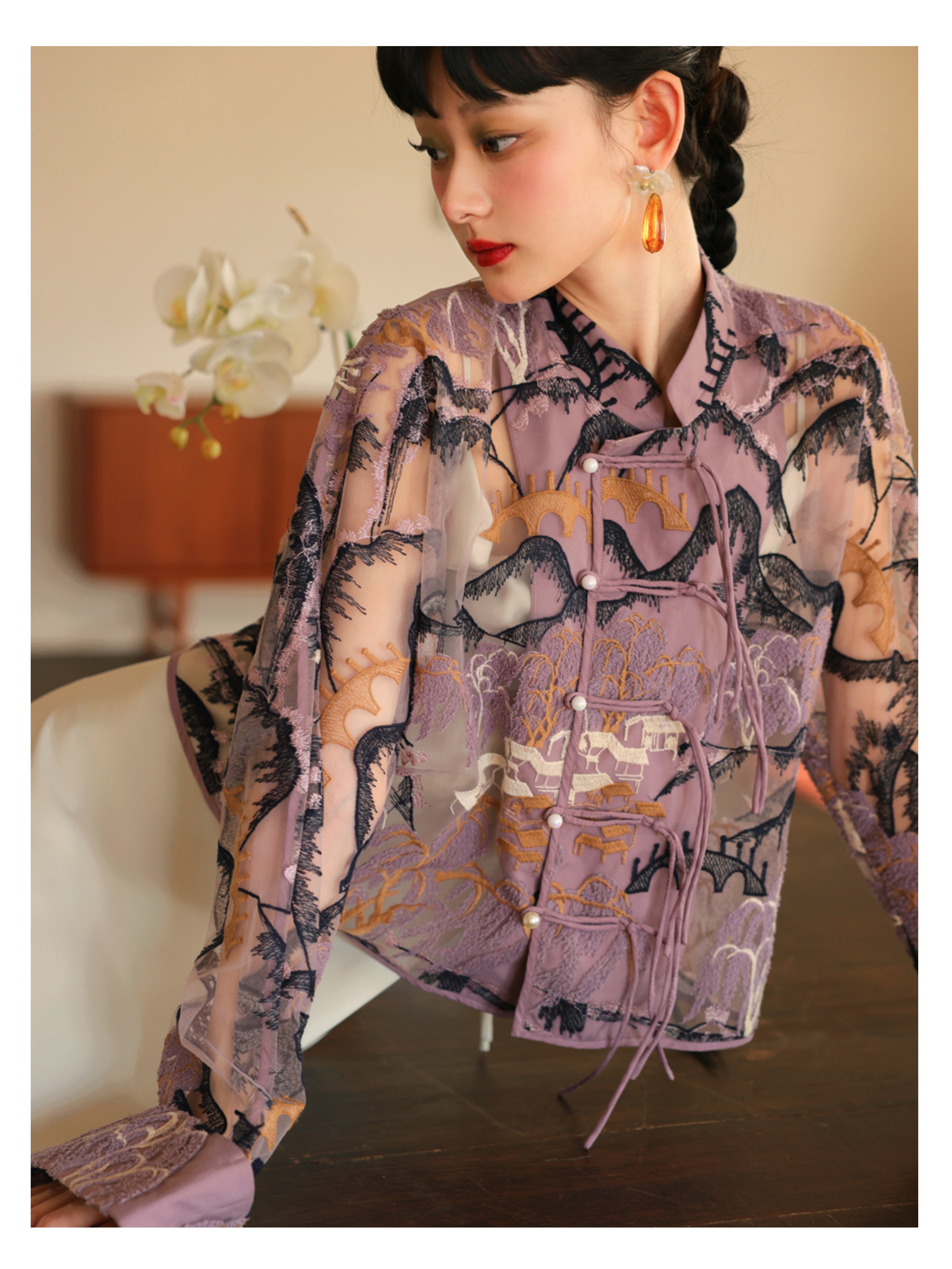 ASAYA2900 Playful design original landscape embroidery purple loose short Tang suit new Chinese style long-sleeved cardigan