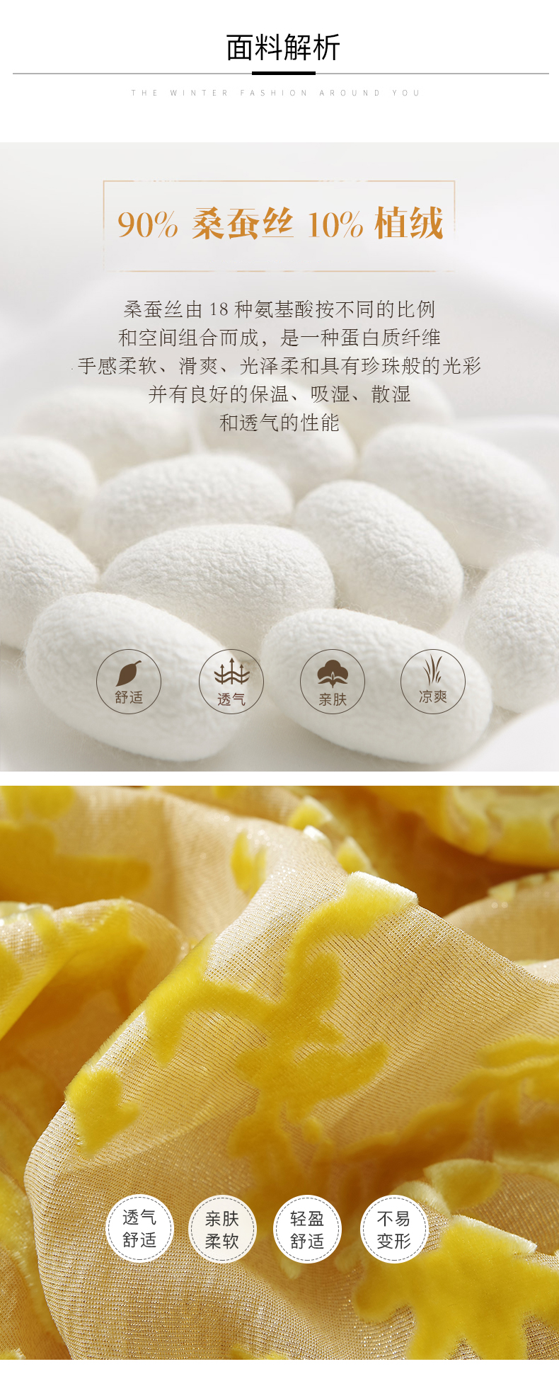 Material composition | Mulberry silk 90%, other 10% |