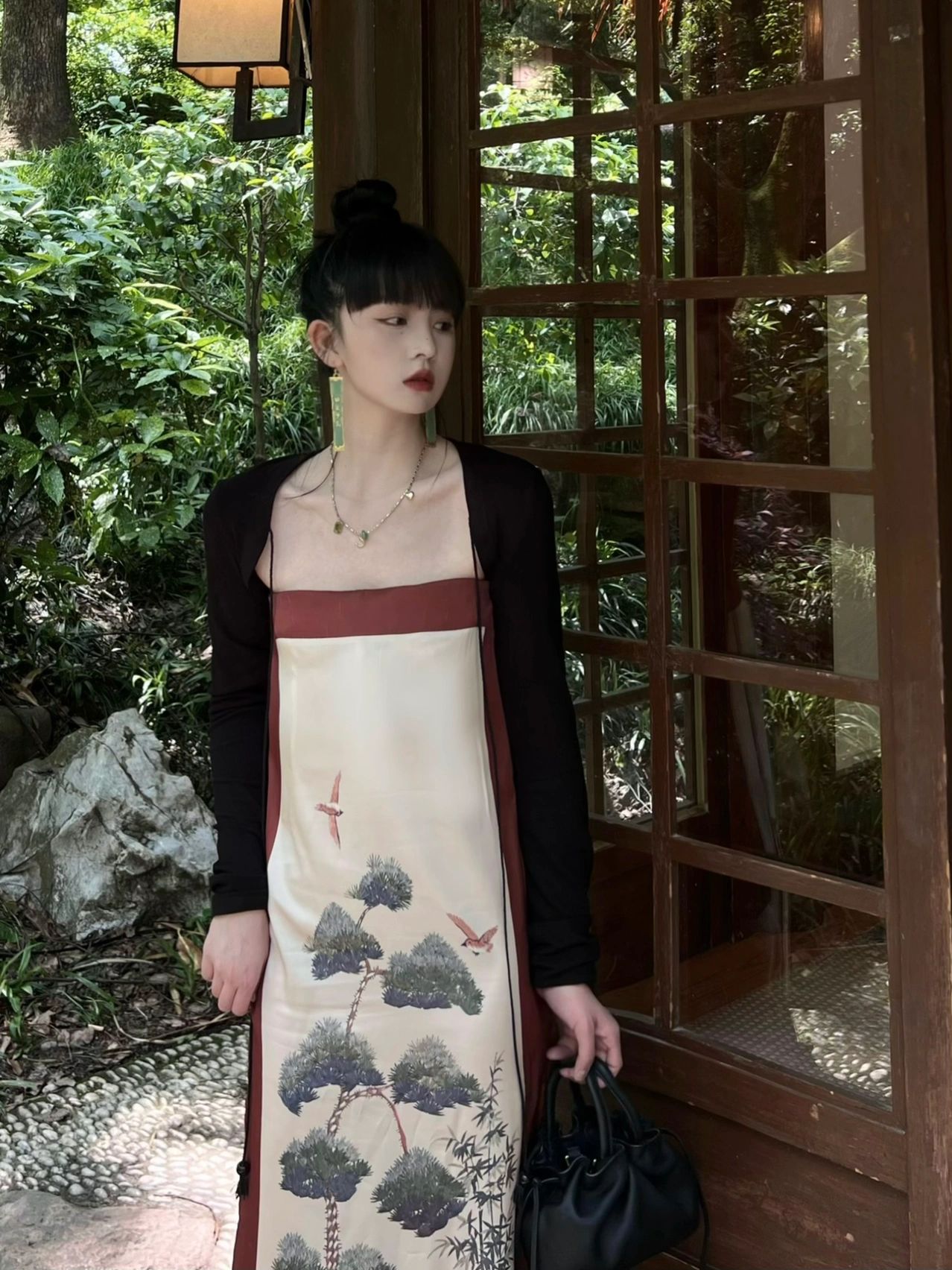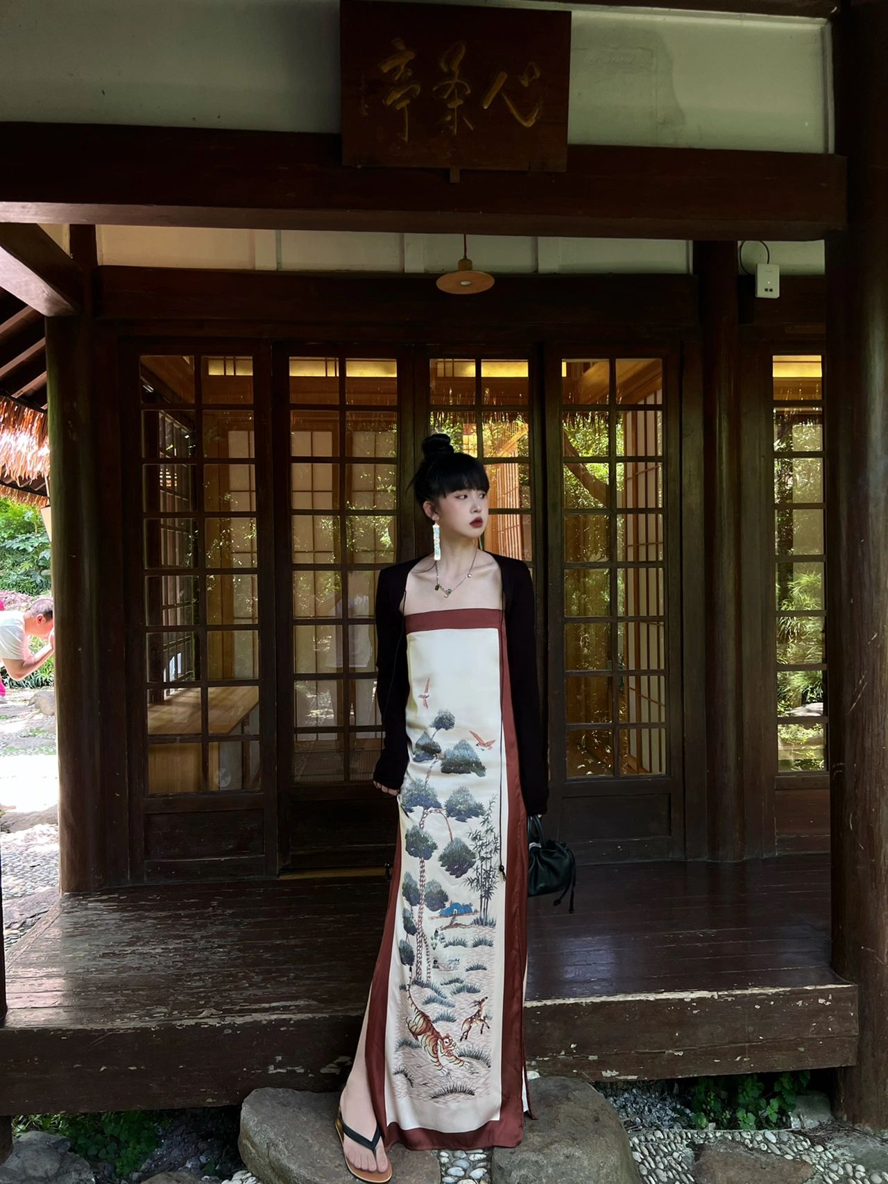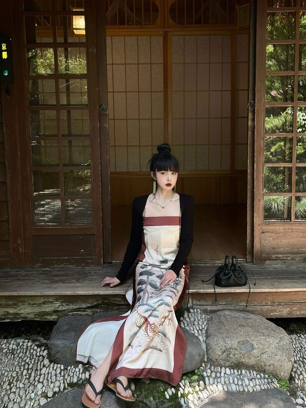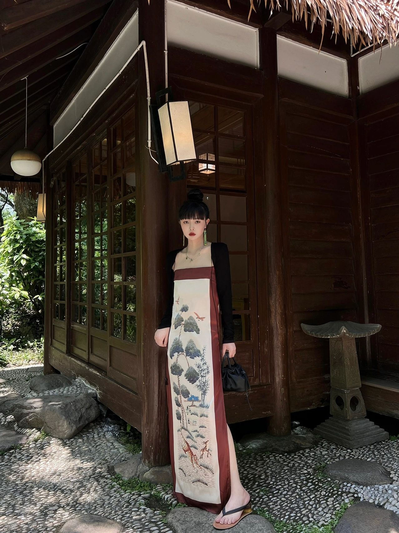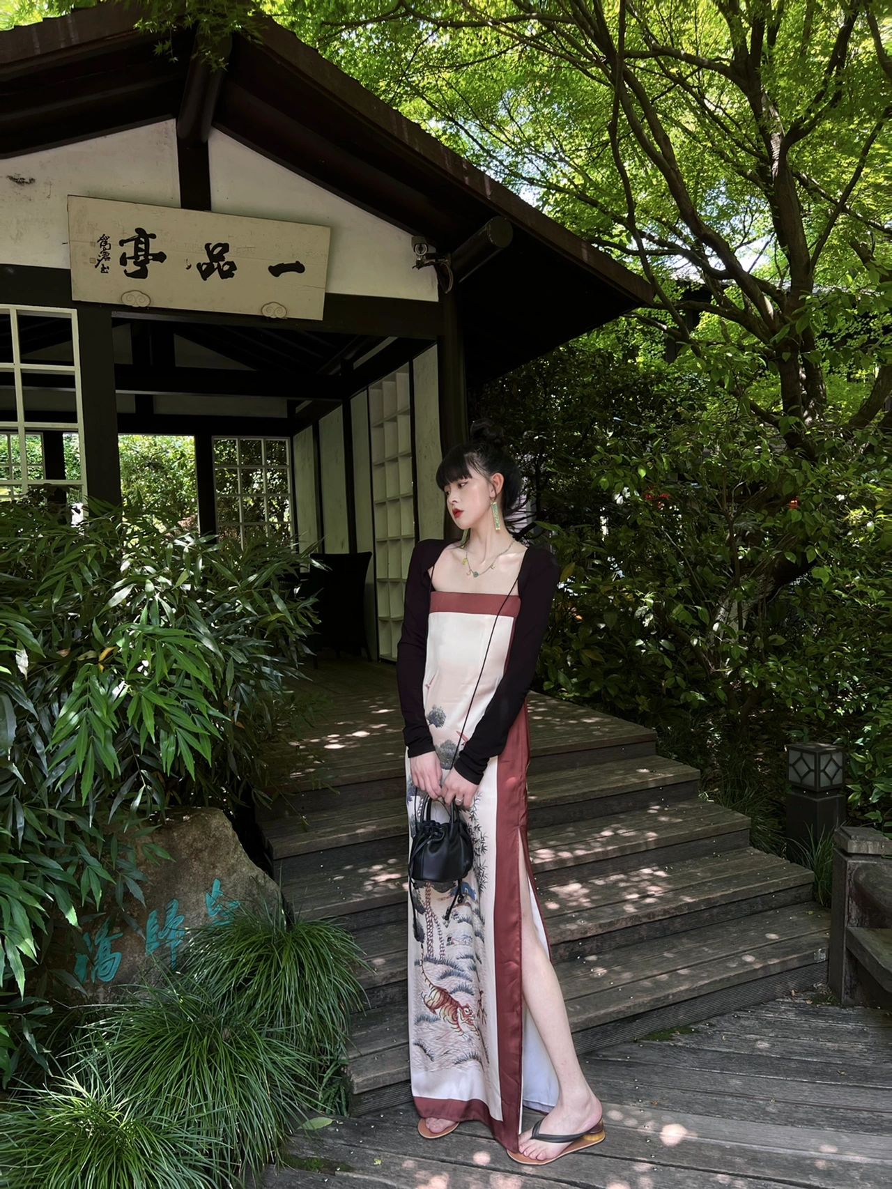 Asaya1045 - China Chic retro dress with straight neck in summer 2022 New slim slim high waist slit dress for women